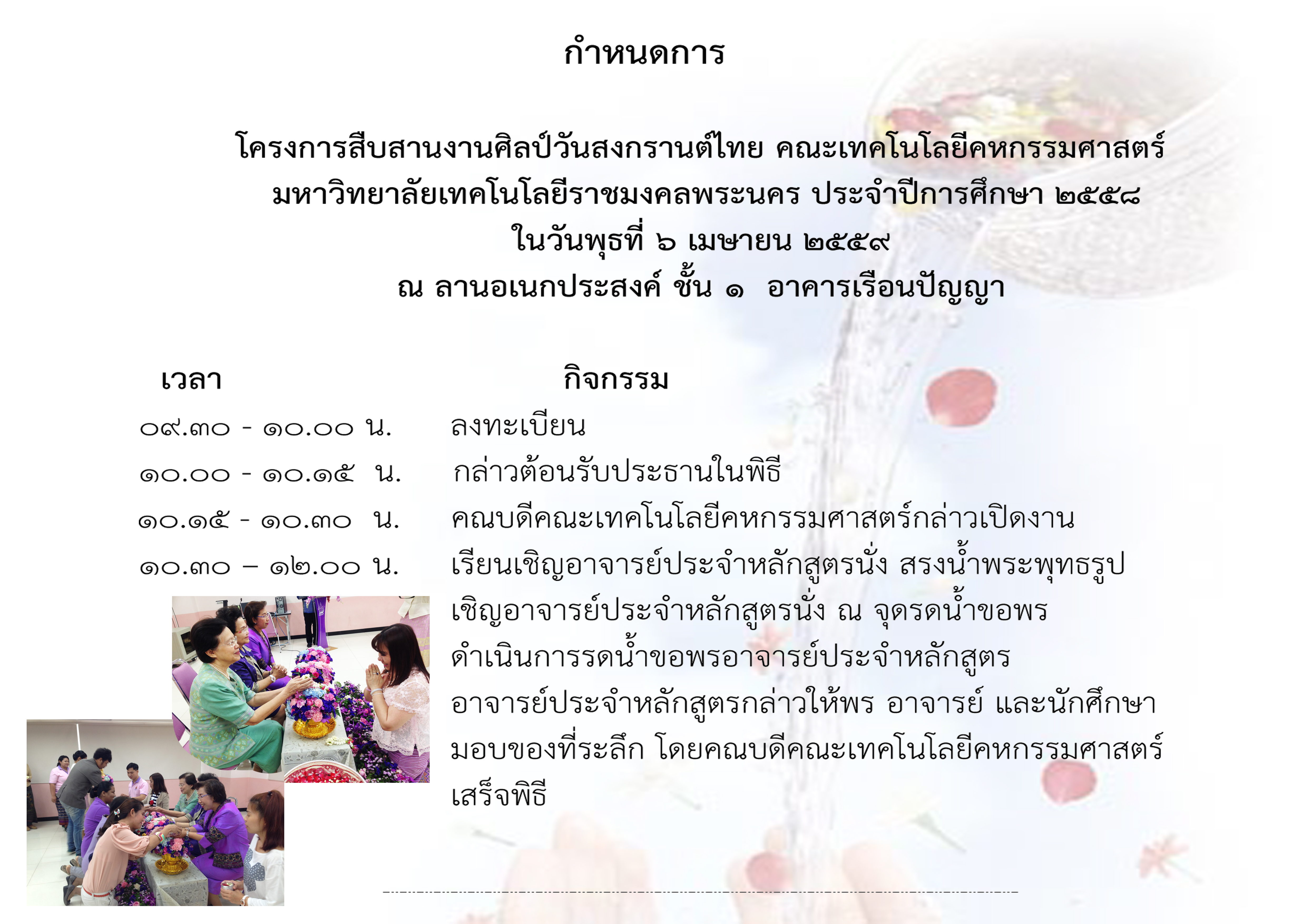 โครงการสืบสานงานศิลป์วันสงกรานต์ไทย คณะเทคโนโลยีคหกรรมศาสตร์