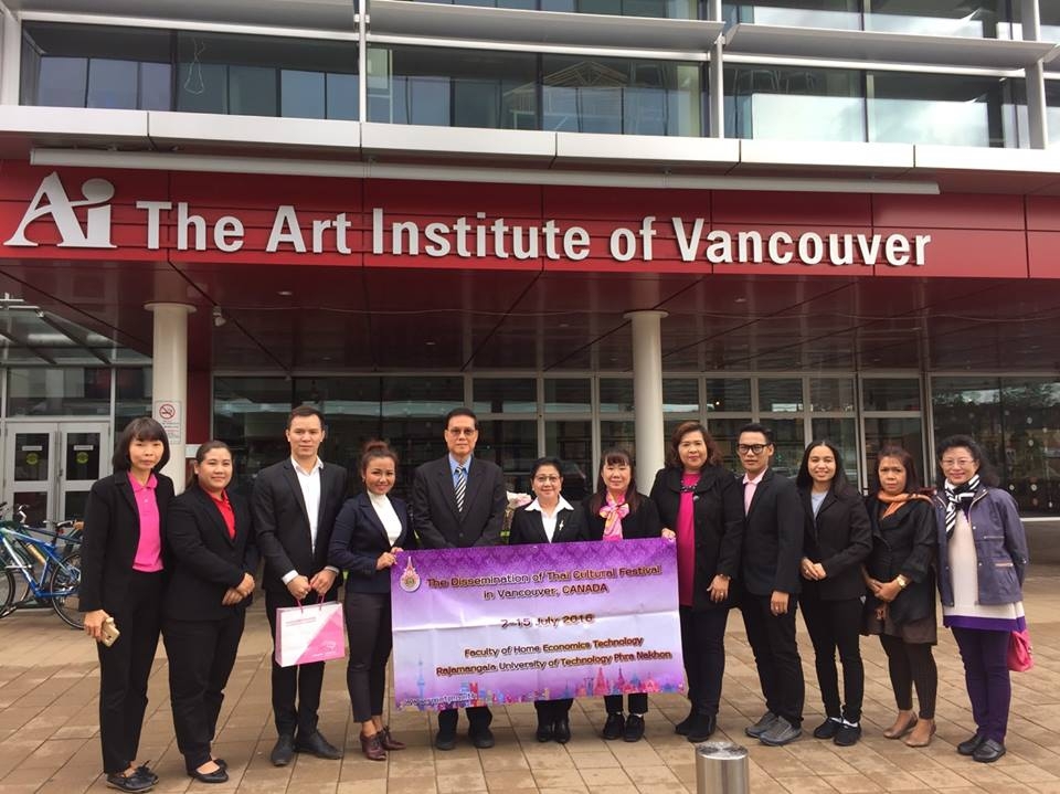 นายกสภามหาวิทยาลัย ศ.ไชยยศ เหมะรัชตะ อธิการบดี รศ.สุภัทรา โกไศยกานนท์ พร้อมผู้บริหารคณาจารย์คณะเทคโนโลยีคหกรรมศาสตร์ มหาวิทยาลัยเทคโนโลยีราชมงคลพระนคร เข้าศึกษาเกี่ยวกับ 1.การออกแบบ 2.สื่อศิลปะ 3.ศิลปะแฟชั่น 4.การทำอาหาร ซึ่งเป็นสถาบันที่มีชื่อเสียงทางด้านศิลปะทั้ง 4 ด้าน เมื่อ 12 กรกฎาคม 2559 ณ The Art Institute of Vancouver ทั้งนี้ขอบคุณกงสุลใหญ่ ท่านสุทธิลักษณ์ สง่ามั่งคั่ง ณ นครแวนคูเวอร์ ที่ได้ช่วยเหลือในการติดต่อให้ คณะเทคโนโลยีคหกรรมศาสตร์ ม.ราชมงคลพระนคร ในการศึกษาดูงานในครั้งนี้