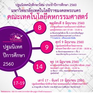 กำหนดการปฐมนิเทศนักศึกษาใหม่ประจำปีการศึกษา 2560