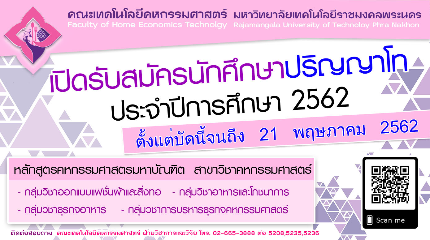 คณะเทคโนโลยีคหกรรมศาสตร์ เปิดรับสมัครนักศึกษาระดับปริญญาโท ประจำปีการศึกษา 2562 รอบ 2