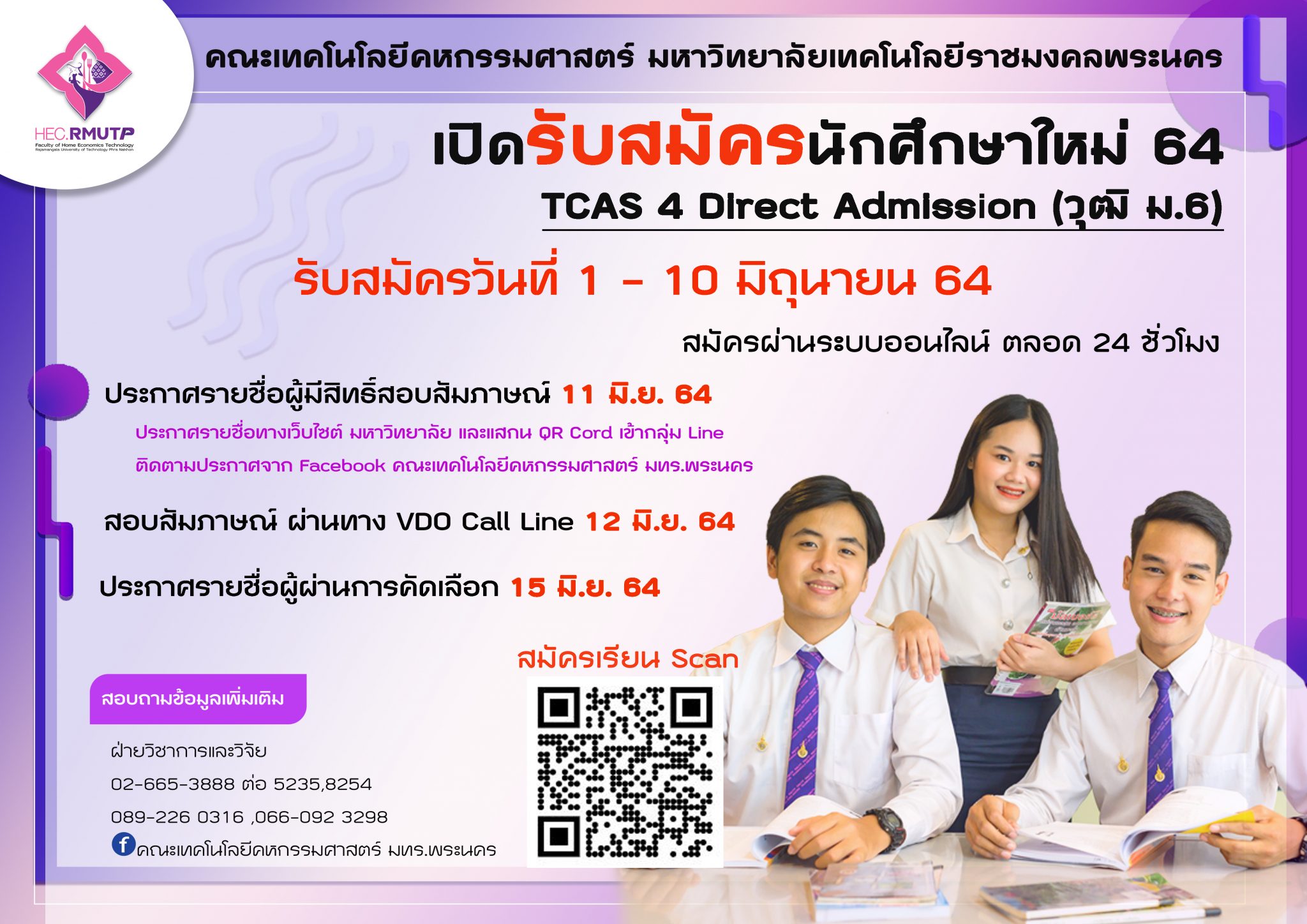 รายละเอียดและกำหนดการรับสมัครนักศึกษา TCAS 4 Direct Admission