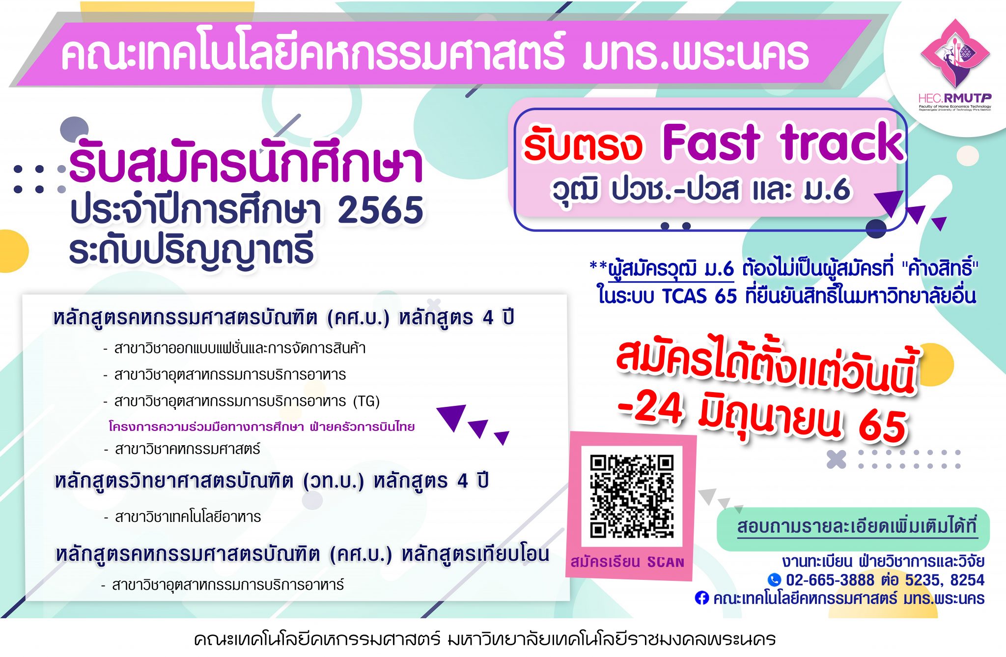 รับสมัครนักศึกษาระดับปริญญาตรี ประจำปีการศึกษา 2565 รอบ FAST TRACK วุฒิ ปวช. ปวส. และ ม.6