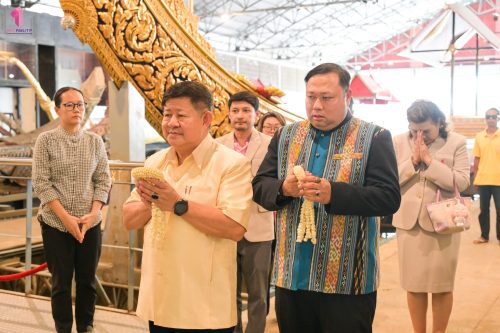 พลโท ชัยณรงค์ กิจรุ่งโรจน์เจริญ อุปนายกสภามหาวิทยาลัย ดร.ณัฐวรพล รัชสิริวัชรบุล อธิการบดีมหาวิทยาลัยเทคโนโลยีราชมงคลพระนคร และ ผศ.ดร.ธนภพ โสตรโยม คณบดีคณะเทคโนโลยีคหกรรมศาสตร์ พร้อมด้วย อ.ปิยะธิดา สีหะวัฒนกุล ที่ปรึกษาคณบดี และผู้บริหาร คณะเทคโนโลยีคหกรรมศาสตร์ มทร.พระนคร ได้รับมอบผ้าลายทองแผ่ลวดหลังคาเรือพระราชพิธีผืนเก่า เพื่อเป็นที่ระลึก จำนวน 3 เรือ ได้แก่ ผ้าหลังคาเรือแตงโม ผ้าหลังคาเรือทองขวานฟ้า และผ้าหลังคาเรือดั้ง 20 โดยมี นางสาวดวงใจ พิชิตณรงค์ชัย หัวหน้าพิพิธภัณฑสถานแห่งชาติ เรือพระราชพิธี เป็นผู้มอบ เมื่อวันที่ 8 เมษายน 2568