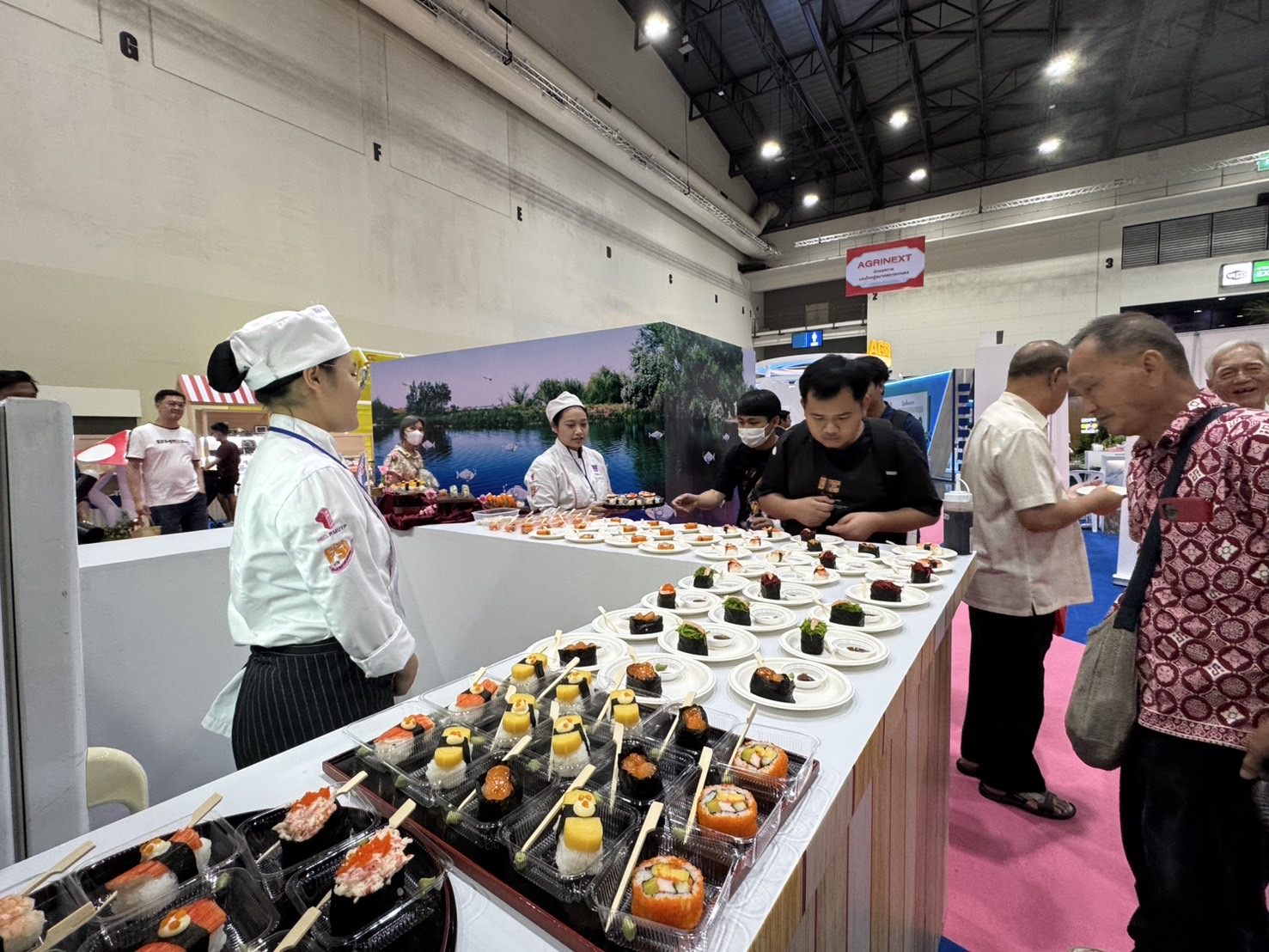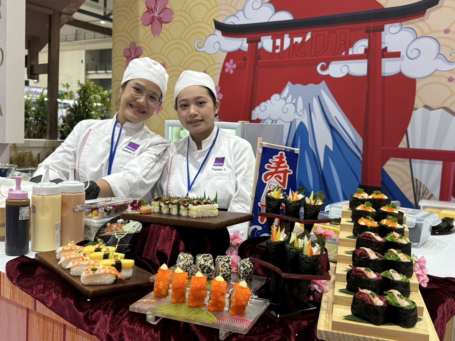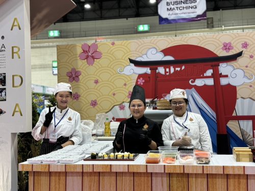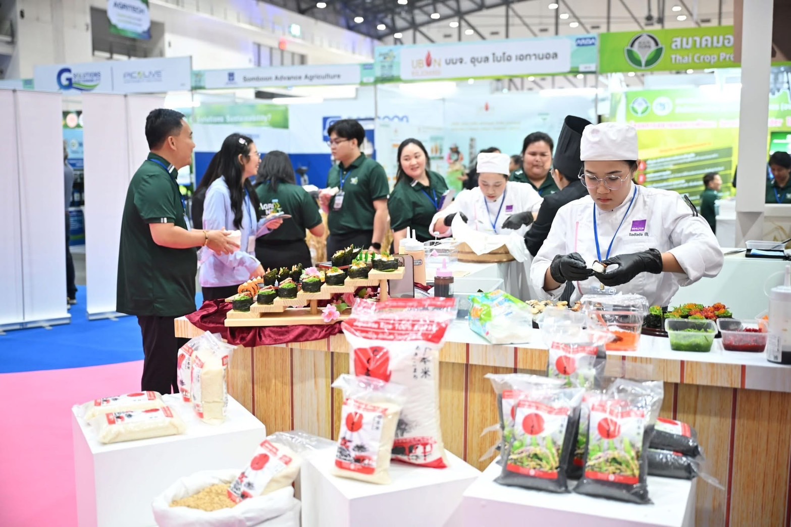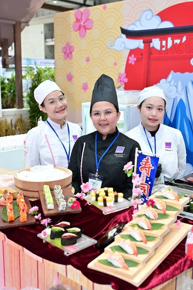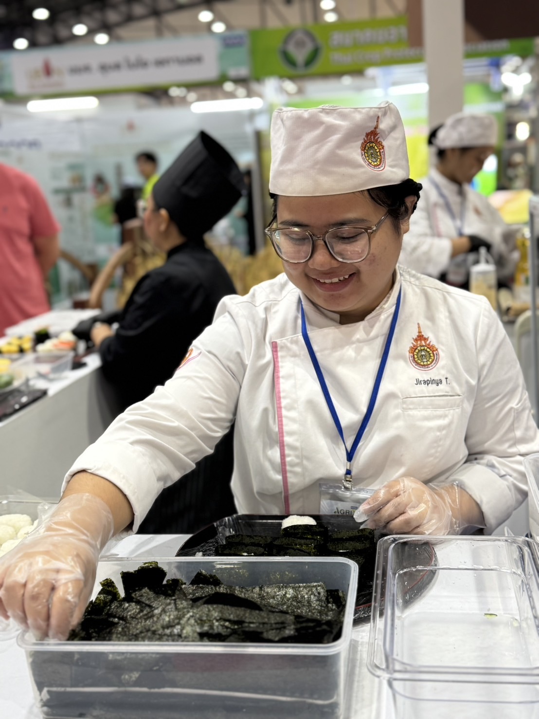 ผศ.ดร.ศันสนีย์ ทิมทอง พร้อมด้วยนักศึกษาสาขาวิชาอุตสาหกรรมการบริการอาหาร คณะเทคโนโลยีคหกรรมศาสตร์ มหาวิทยาลัยเทคโนโลยีราชมงคลพระนคร ได้รับเชิญร่วมสาธิตและจัดชิมเมนู ซูชิ ในงาน ARDA AGRINEXT THAILAND 2025 ระหว่างวันที่ 25 – 28 กันยายน 2568 ณ อิมแพ็ค เอ็กซิบิชั่น ฮอลล์ 5 เมืองทองธานี การสาธิตครั้งนี้มีความพิเศษ โดยใช้ ข้าวจาปอนิกา ซึ่งเป็นข้าวญี่ปุ่นที่นักวิจัยไทยประสบความสำเร็จในการพัฒนาปลูกในจังหวัดเชียงราย มีคุณภาพเทียบเท่าข้าวญี่ปุ่น นับเป็นการช่วยยกระดับมูลค่า เพิ่มโอกาสทางการตลาด และส่งเสริมเกษตรกรไทย กิจกรรมดังกล่าวจัดขึ้นในโซน Agri Colorful – สีสันและความหลากหลายของสินค้าเกษตรไทย สู่การเพิ่มมูลค่าใหม่ ภายใต้การดำเนินงานของบริษัท มีเดีย พ้อยท์ กรุ๊ป จำกัด ซึ่งรับผิดชอบการจัดแสดงนิทรรศการผลงานวิจัยและการประชุมวิชาการ โดยมี สำนักงานพัฒนาการวิจัยการเกษตร (องค์การมหาชน) – ARDA เป็นผู้จัด