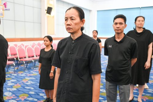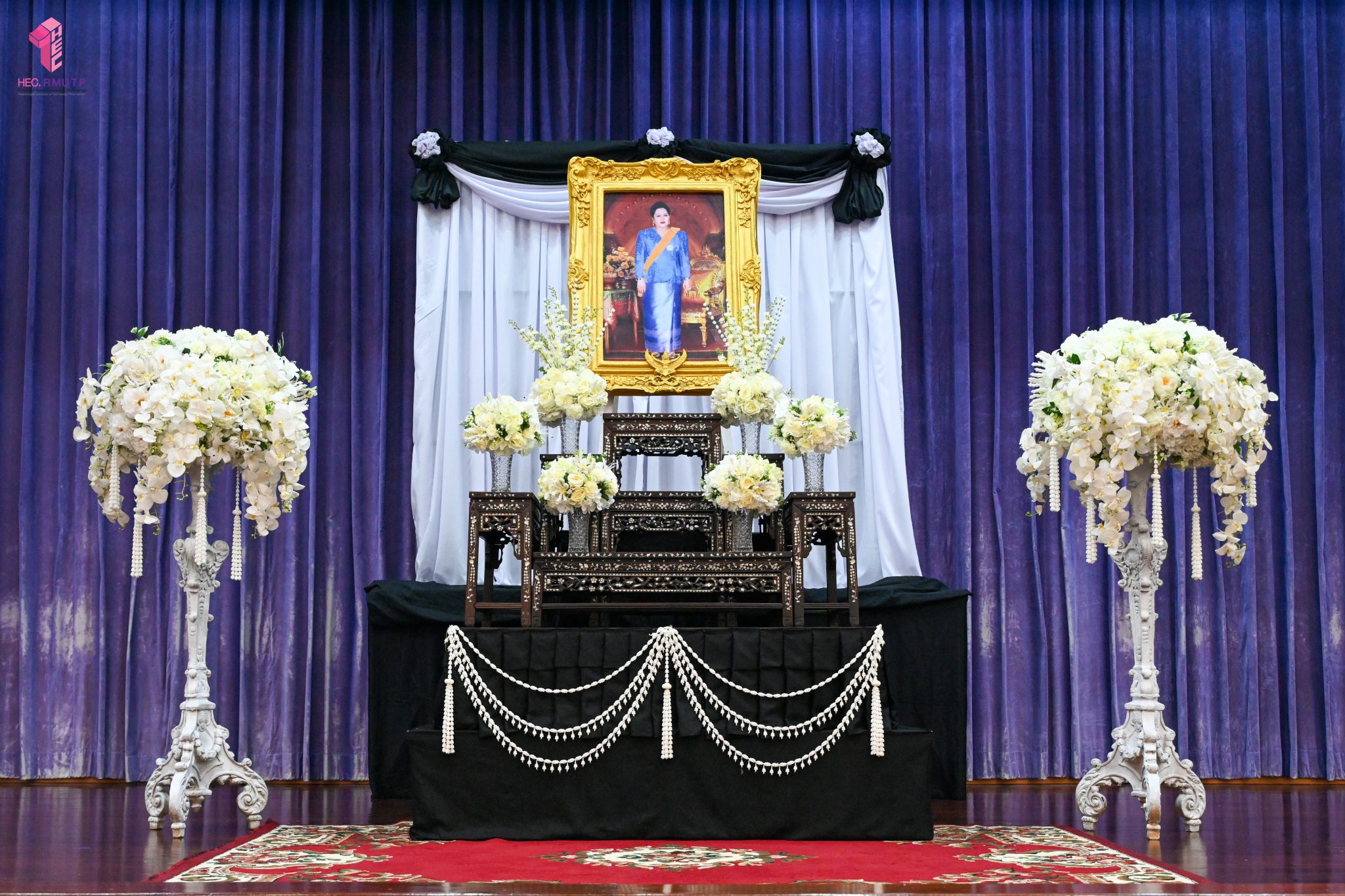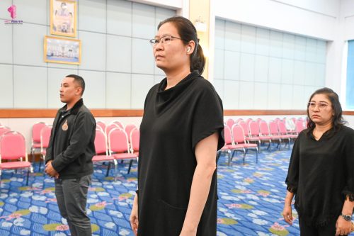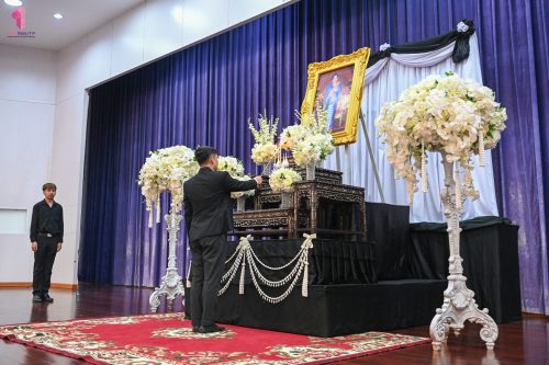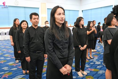 งานศิลปวัฒนธรรม ฝ่ายกิจการนักศึกษา คณะเทคโนโลยีคหกรรมศาสตร์ มหาวิทยาลัยเทคโนโลยีราชมงคลพระนคร จัดพิธีน้อมถวายความอาลัย “พระผู้เสด็จสู่สวรรคาลัย สมเด็จพระนางเจ้าสิริกิติ์ พระบรมราชินีนาถ พระบรมราชชนนีพันปีหลวง” เพื่อแสดงออกถึงความจงรักภักดีและสำนึกในพระมหากรุณาธิคุณอันหาที่สุดมิได้ โดยได้รับเกียรติจาก ผู้ช่วยศาสตราจารย์ ดร.ธนภพ โสตรโยม คณบดีคณะเทคโนโลยีคหกรรมศาสตร์ เป็นประธานในพิธี พร้อมด้วย คุณวรรณา มณีนุตร์ นายกสมาคมศิษย์เก่าโชติเวช คุณกานต์กนิษฐ์ แห้วสันตติ ประธานสภาวัฒนธรรมเขตพระนคร ประธานชุมชนเขตพื้นที่วัดเทวราชกุญชร ผู้บริหาร คณาจารย์ บุคลากร นักศึกษา ผู้แทนบุคลากรจากเรือนจำอำเภอฝาง จังหวัดเชียงราย และประชาชนชุมชนวัดเทวราชกุญชร เข้าร่วมพิธีด้วยความสำนึกในพระมหากรุณาธิคุณอย่างหาที่สุดมิได้ พิธีจัดขึ้นเมื่อวันที่ 28 ตุลาคม 2568 ณ ห้องประชุมโชติเวช ชั้น 4 อาคารเรือนปัญญา คณะเทคโนโลยีคหกรรมศาสตร์