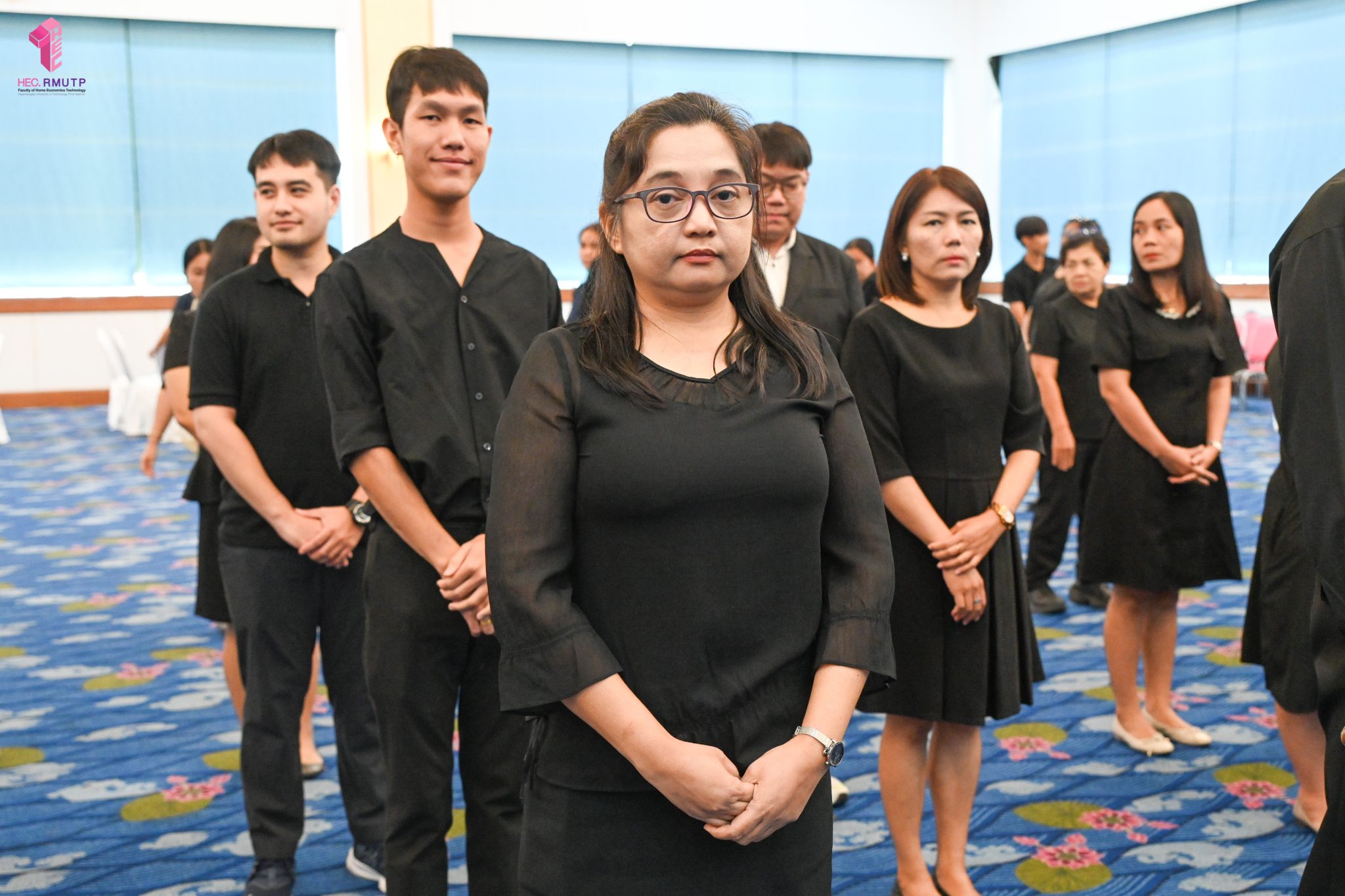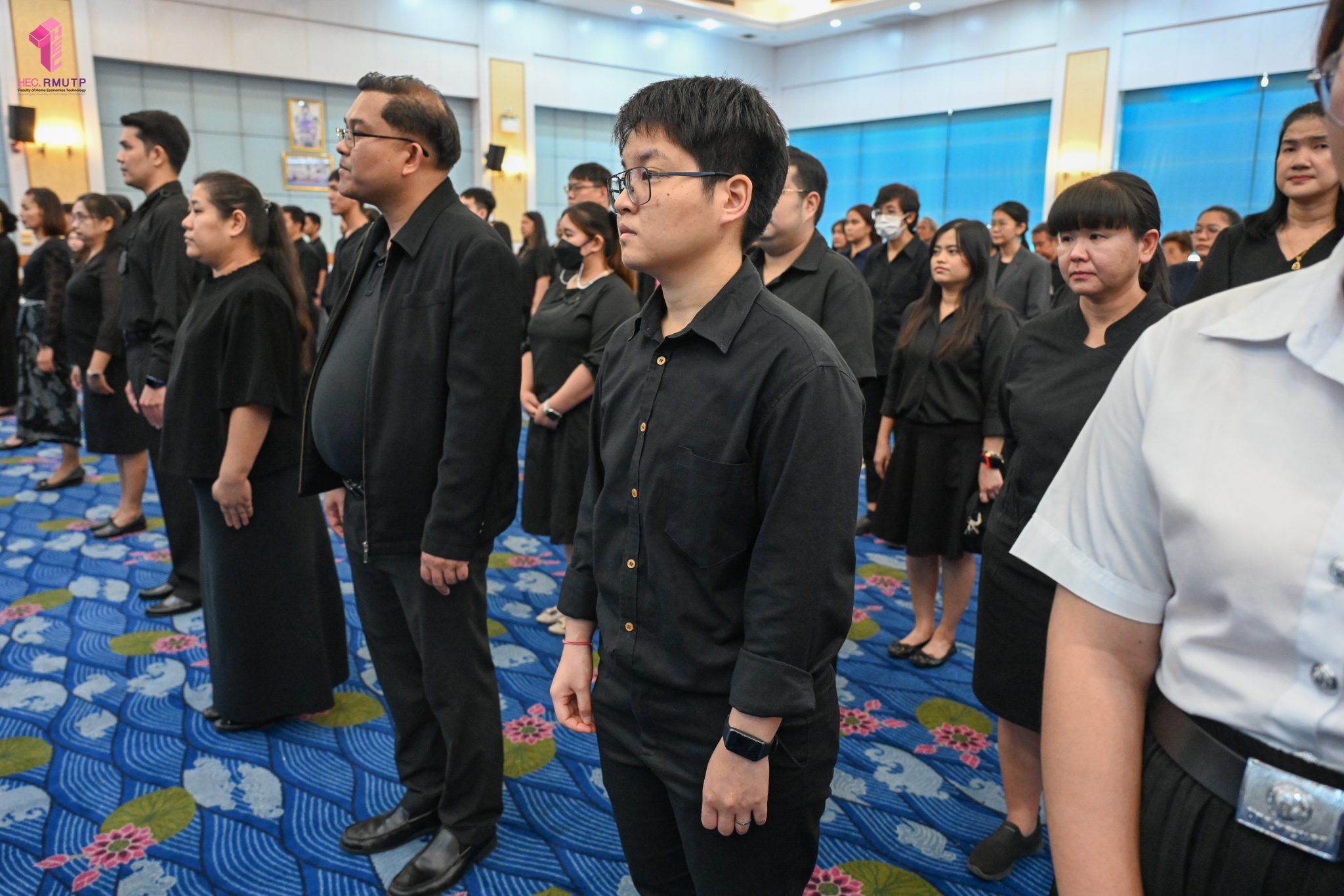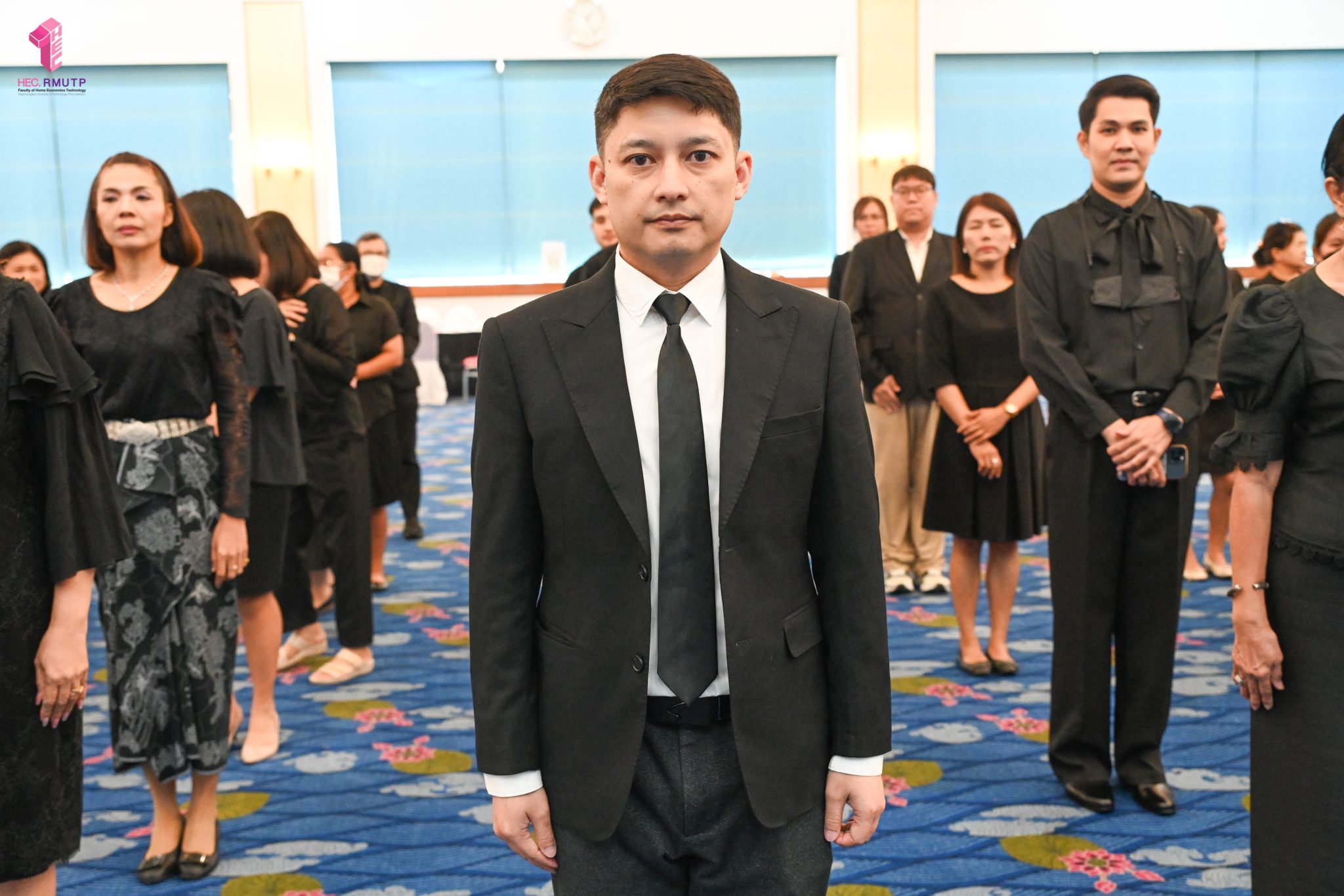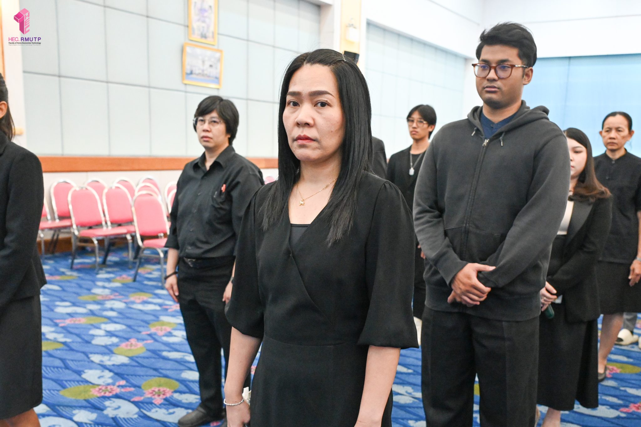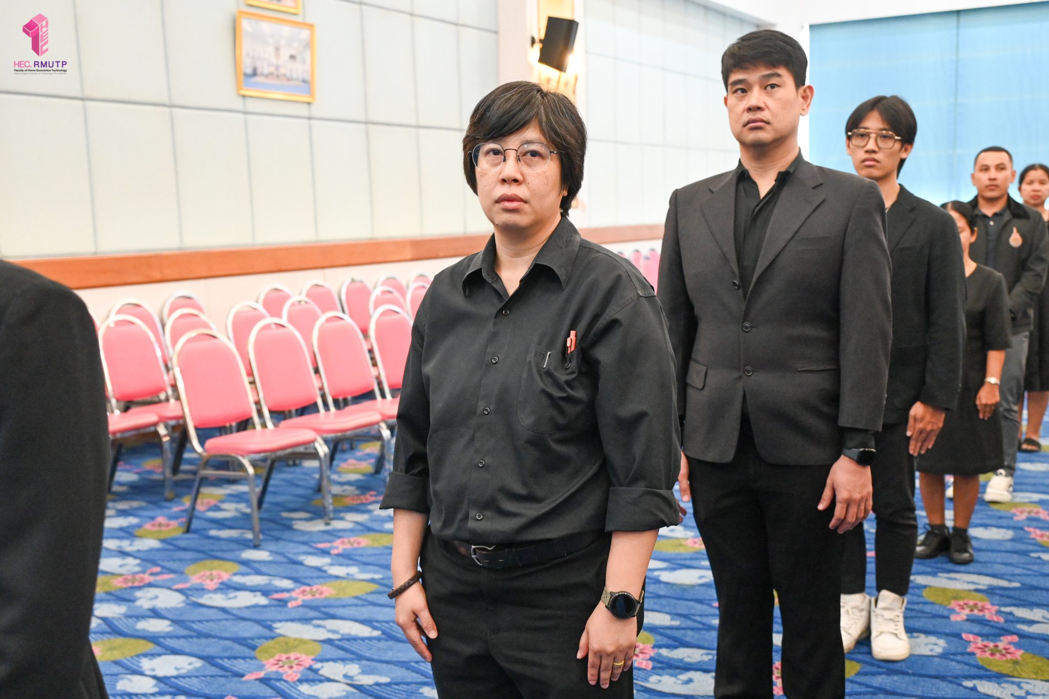 งานศิลปวัฒนธรรม ฝ่ายกิจการนักศึกษา คณะเทคโนโลยีคหกรรมศาสตร์ มหาวิทยาลัยเทคโนโลยีราชมงคลพระนคร จัดพิธีน้อมถวายความอาลัย “พระผู้เสด็จสู่สวรรคาลัย สมเด็จพระนางเจ้าสิริกิติ์ พระบรมราชินีนาถ พระบรมราชชนนีพันปีหลวง” เพื่อแสดงออกถึงความจงรักภักดีและสำนึกในพระมหากรุณาธิคุณอันหาที่สุดมิได้ โดยได้รับเกียรติจาก ผู้ช่วยศาสตราจารย์ ดร.ธนภพ โสตรโยม คณบดีคณะเทคโนโลยีคหกรรมศาสตร์ เป็นประธานในพิธี พร้อมด้วย คุณวรรณา มณีนุตร์ นายกสมาคมศิษย์เก่าโชติเวช คุณกานต์กนิษฐ์ แห้วสันตติ ประธานสภาวัฒนธรรมเขตพระนคร ประธานชุมชนเขตพื้นที่วัดเทวราชกุญชร ผู้บริหาร คณาจารย์ บุคลากร นักศึกษา ผู้แทนบุคลากรจากเรือนจำอำเภอฝาง จังหวัดเชียงราย และประชาชนชุมชนวัดเทวราชกุญชร เข้าร่วมพิธีด้วยความสำนึกในพระมหากรุณาธิคุณอย่างหาที่สุดมิได้ พิธีจัดขึ้นเมื่อวันที่ 28 ตุลาคม 2568 ณ ห้องประชุมโชติเวช ชั้น 4 อาคารเรือนปัญญา คณะเทคโนโลยีคหกรรมศาสตร์