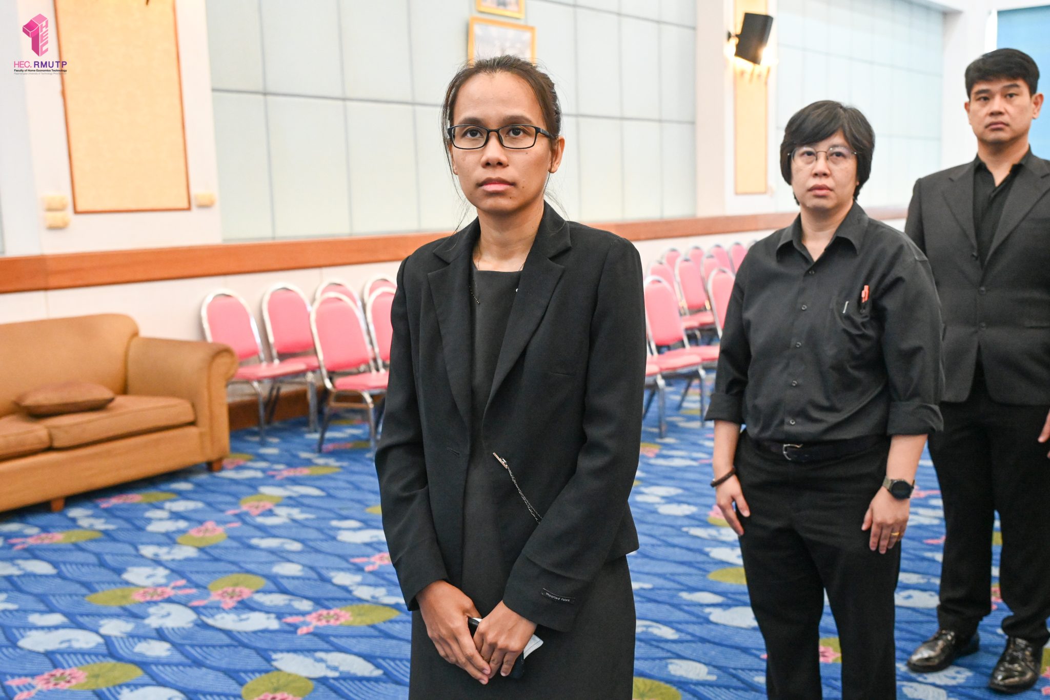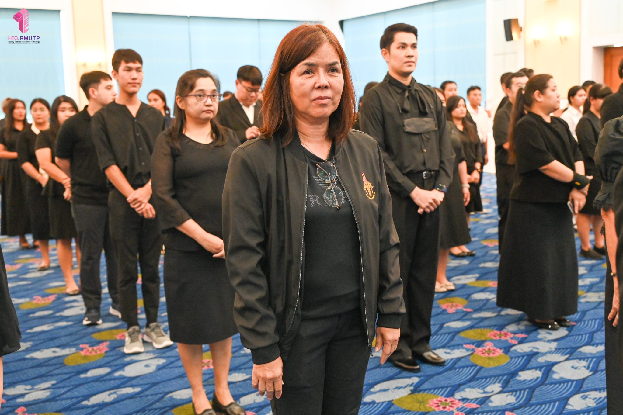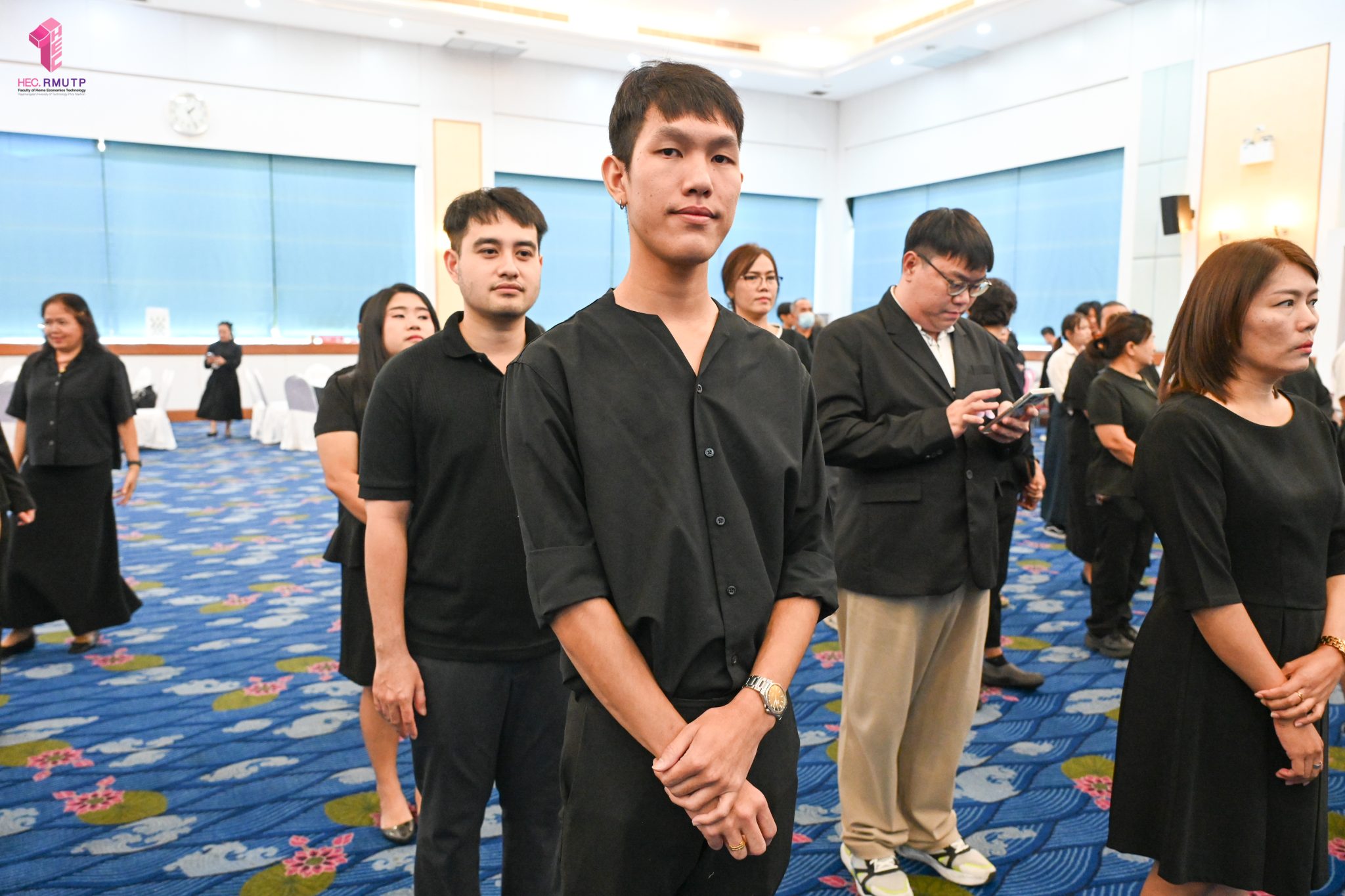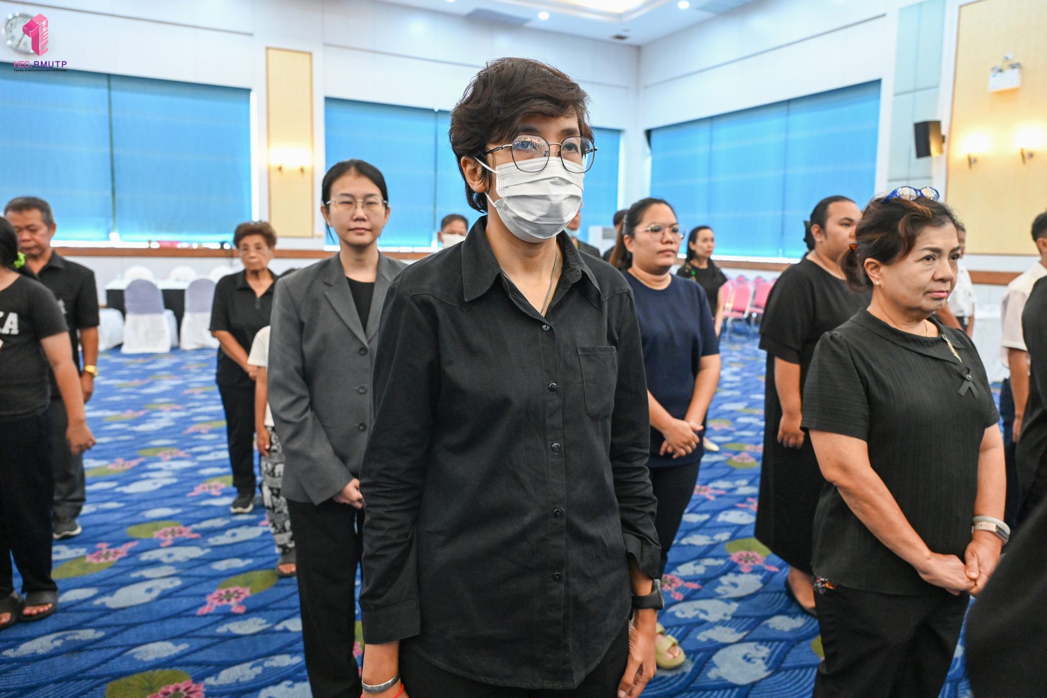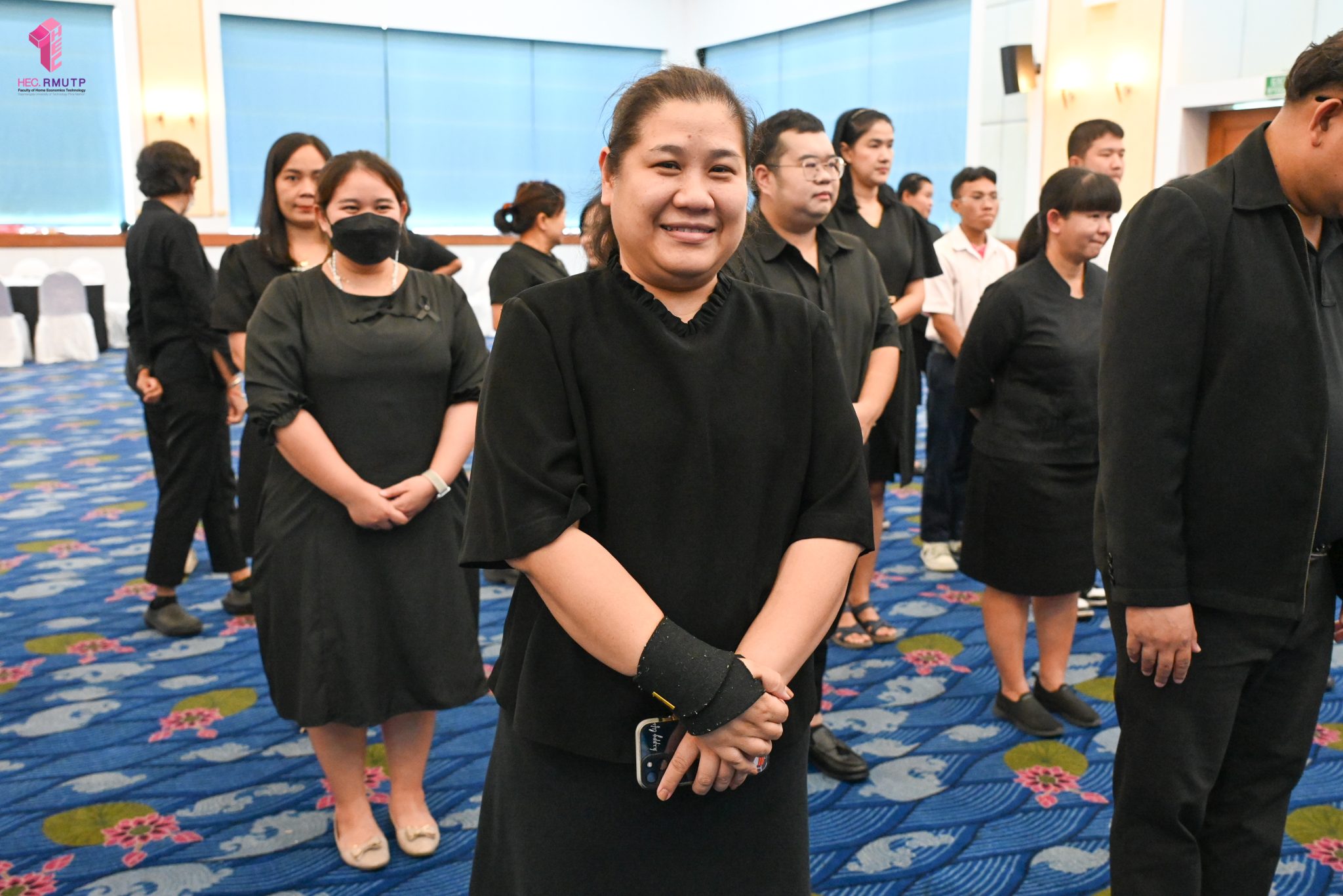 งานศิลปวัฒนธรรม ฝ่ายกิจการนักศึกษา คณะเทคโนโลยีคหกรรมศาสตร์ มหาวิทยาลัยเทคโนโลยีราชมงคลพระนคร จัดพิธีน้อมถวายความอาลัย “พระผู้เสด็จสู่สวรรคาลัย สมเด็จพระนางเจ้าสิริกิติ์ พระบรมราชินีนาถ พระบรมราชชนนีพันปีหลวง” เพื่อแสดงออกถึงความจงรักภักดีและสำนึกในพระมหากรุณาธิคุณอันหาที่สุดมิได้ โดยได้รับเกียรติจาก ผู้ช่วยศาสตราจารย์ ดร.ธนภพ โสตรโยม คณบดีคณะเทคโนโลยีคหกรรมศาสตร์ เป็นประธานในพิธี พร้อมด้วย คุณวรรณา มณีนุตร์ นายกสมาคมศิษย์เก่าโชติเวช คุณกานต์กนิษฐ์ แห้วสันตติ ประธานสภาวัฒนธรรมเขตพระนคร ประธานชุมชนเขตพื้นที่วัดเทวราชกุญชร ผู้บริหาร คณาจารย์ บุคลากร นักศึกษา ผู้แทนบุคลากรจากเรือนจำอำเภอฝาง จังหวัดเชียงราย และประชาชนชุมชนวัดเทวราชกุญชร เข้าร่วมพิธีด้วยความสำนึกในพระมหากรุณาธิคุณอย่างหาที่สุดมิได้ พิธีจัดขึ้นเมื่อวันที่ 28 ตุลาคม 2568 ณ ห้องประชุมโชติเวช ชั้น 4 อาคารเรือนปัญญา คณะเทคโนโลยีคหกรรมศาสตร์