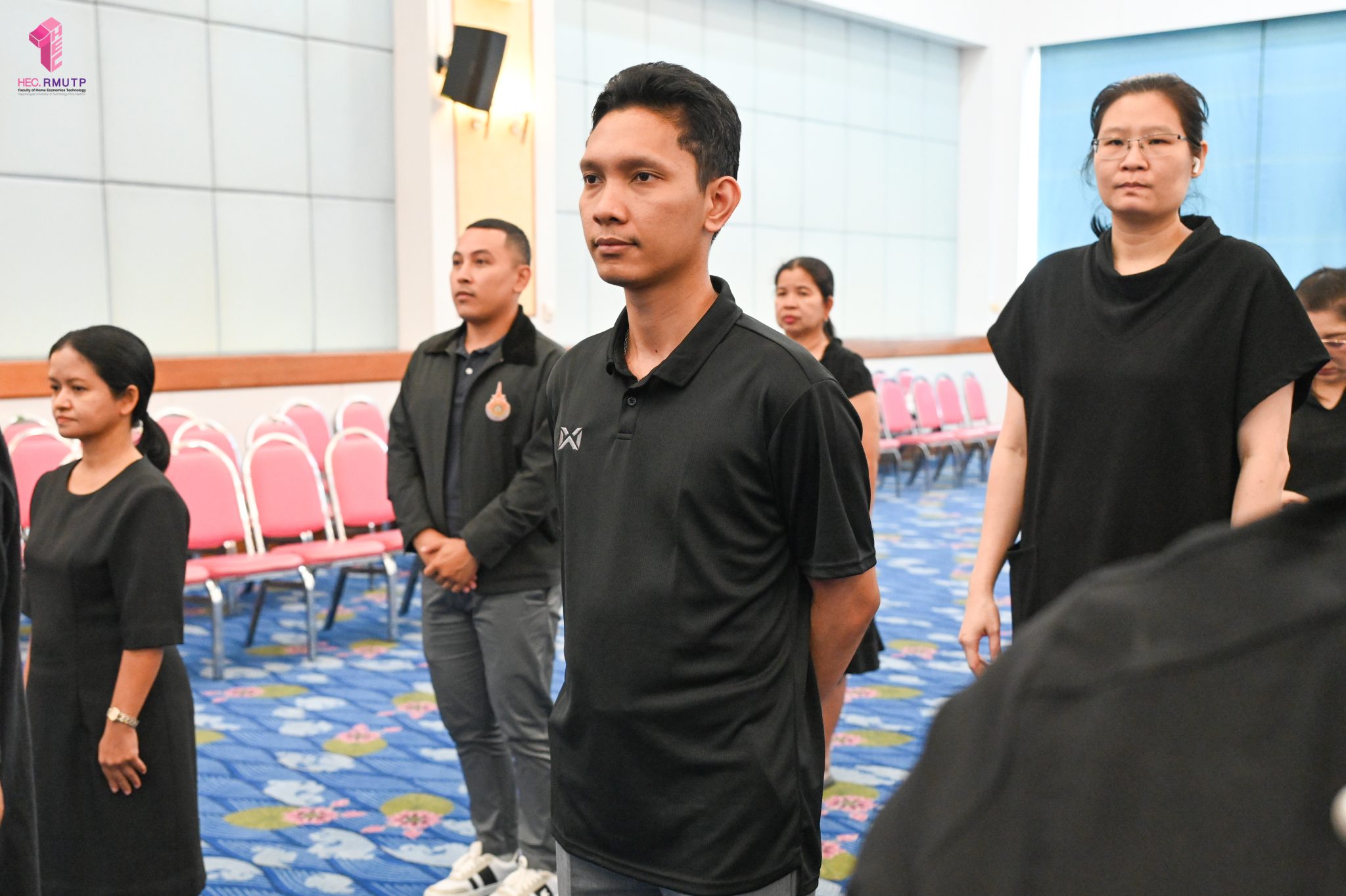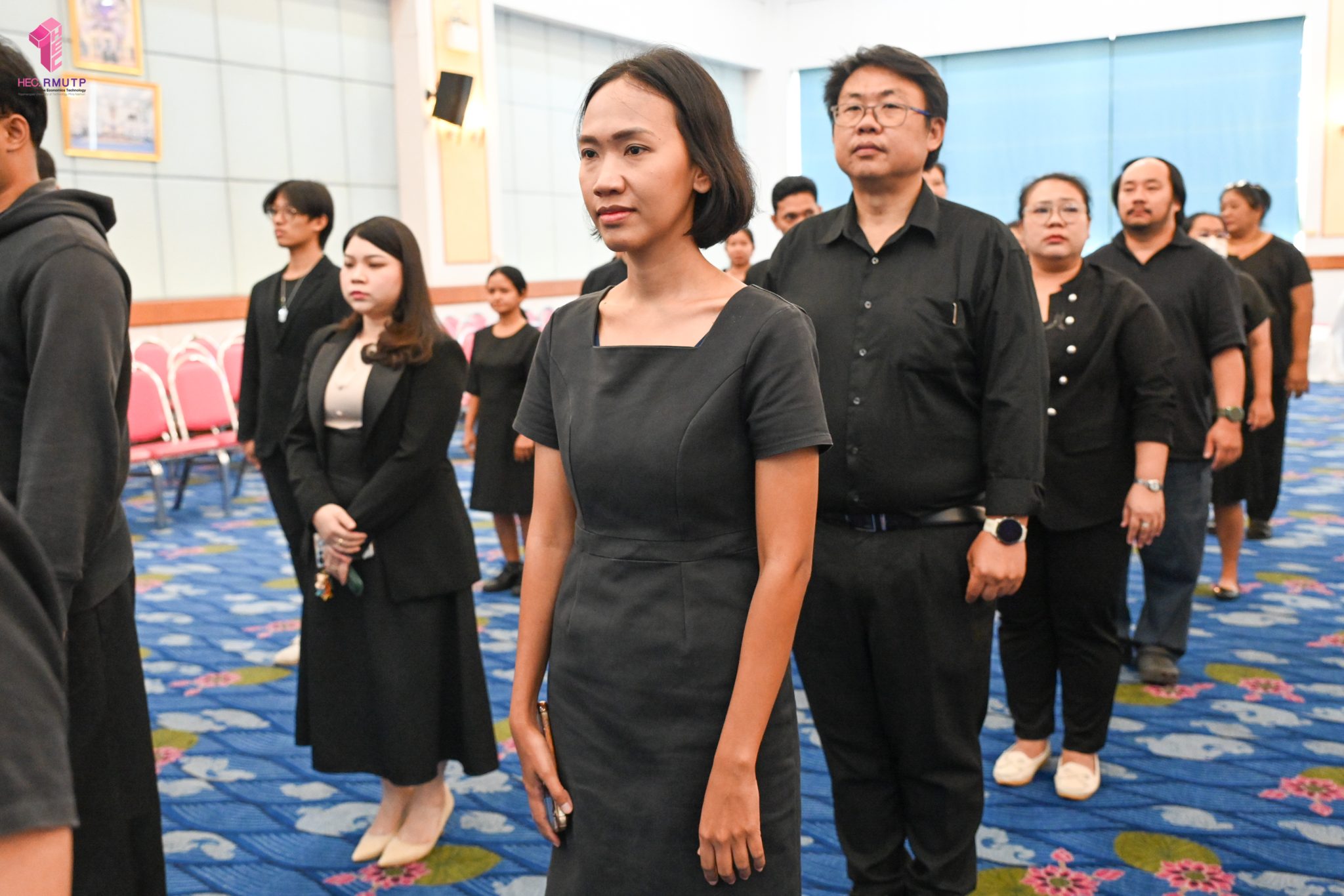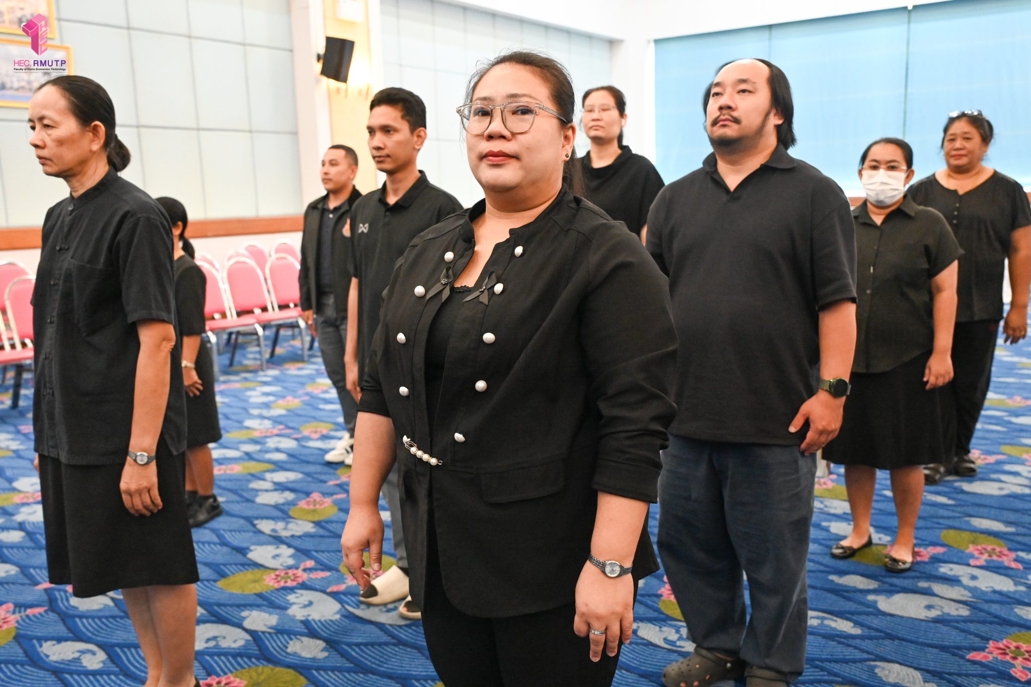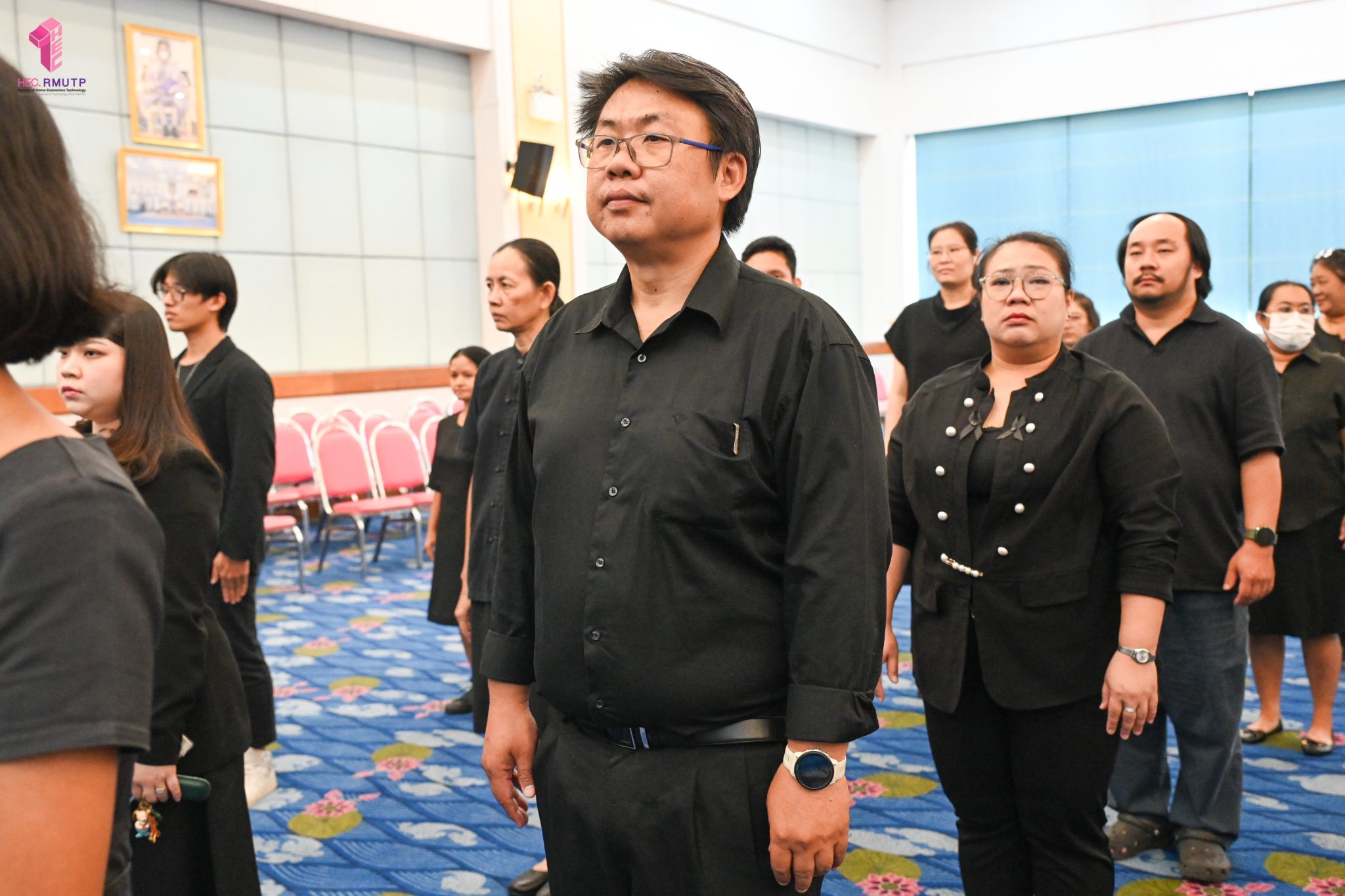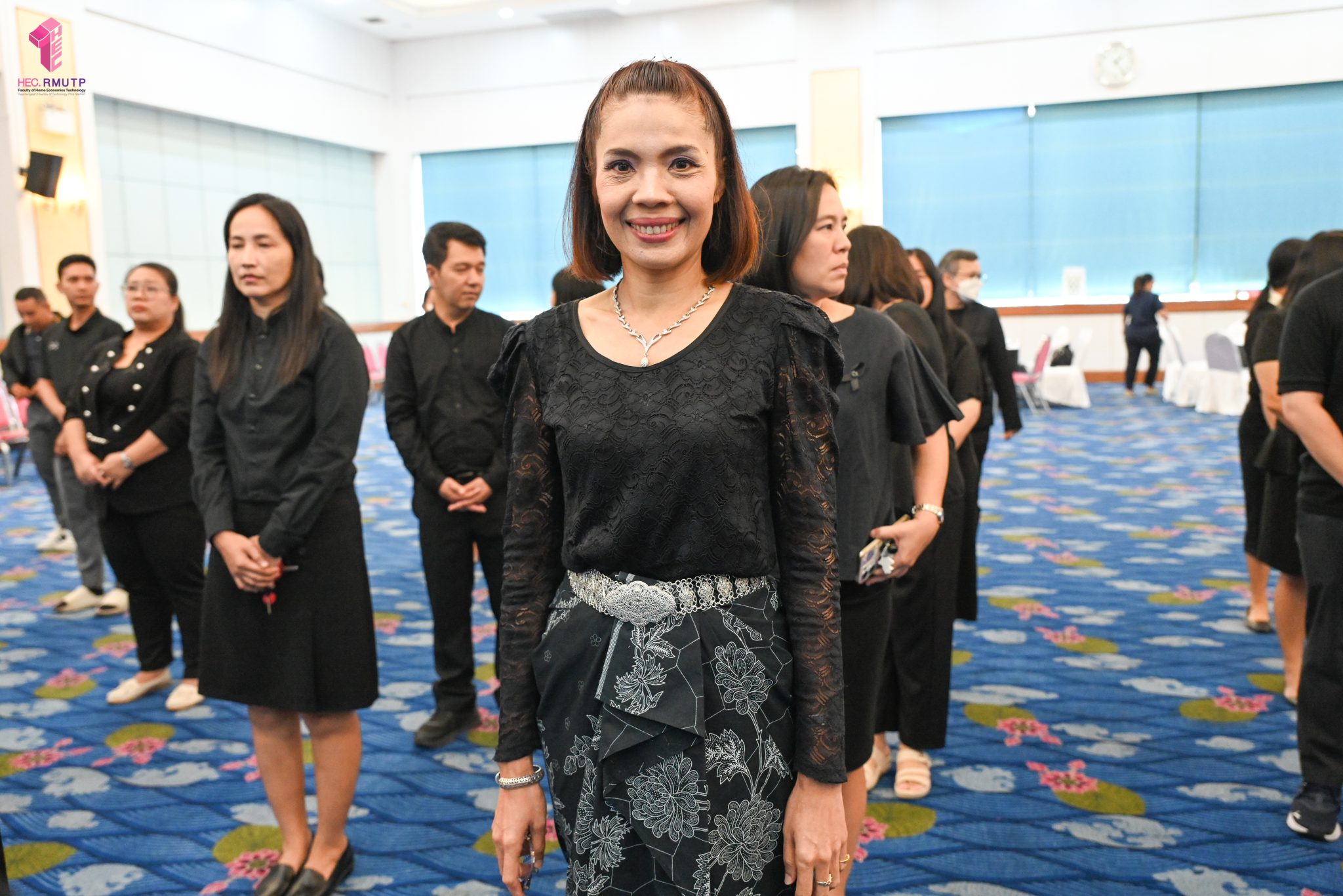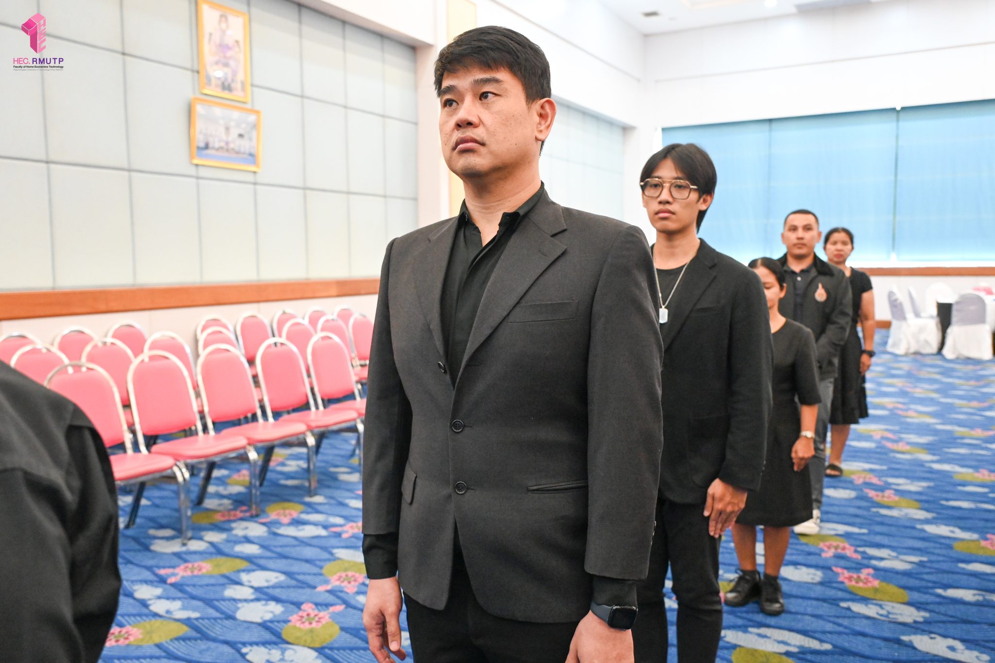 งานศิลปวัฒนธรรม ฝ่ายกิจการนักศึกษา คณะเทคโนโลยีคหกรรมศาสตร์ มหาวิทยาลัยเทคโนโลยีราชมงคลพระนคร จัดพิธีน้อมถวายความอาลัย “พระผู้เสด็จสู่สวรรคาลัย สมเด็จพระนางเจ้าสิริกิติ์ พระบรมราชินีนาถ พระบรมราชชนนีพันปีหลวง” เพื่อแสดงออกถึงความจงรักภักดีและสำนึกในพระมหากรุณาธิคุณอันหาที่สุดมิได้ โดยได้รับเกียรติจาก ผู้ช่วยศาสตราจารย์ ดร.ธนภพ โสตรโยม คณบดีคณะเทคโนโลยีคหกรรมศาสตร์ เป็นประธานในพิธี พร้อมด้วย คุณวรรณา มณีนุตร์ นายกสมาคมศิษย์เก่าโชติเวช คุณกานต์กนิษฐ์ แห้วสันตติ ประธานสภาวัฒนธรรมเขตพระนคร ประธานชุมชนเขตพื้นที่วัดเทวราชกุญชร ผู้บริหาร คณาจารย์ บุคลากร นักศึกษา ผู้แทนบุคลากรจากเรือนจำอำเภอฝาง จังหวัดเชียงราย และประชาชนชุมชนวัดเทวราชกุญชร เข้าร่วมพิธีด้วยความสำนึกในพระมหากรุณาธิคุณอย่างหาที่สุดมิได้ พิธีจัดขึ้นเมื่อวันที่ 28 ตุลาคม 2568 ณ ห้องประชุมโชติเวช ชั้น 4 อาคารเรือนปัญญา คณะเทคโนโลยีคหกรรมศาสตร์