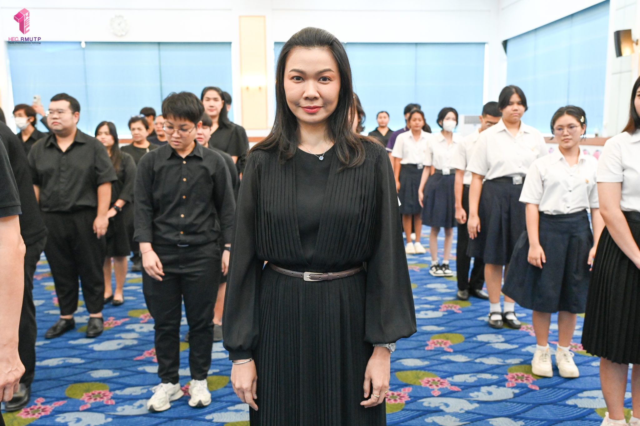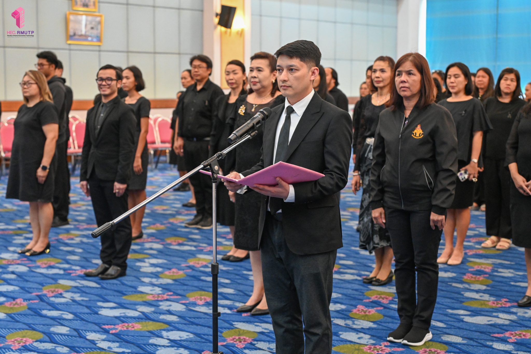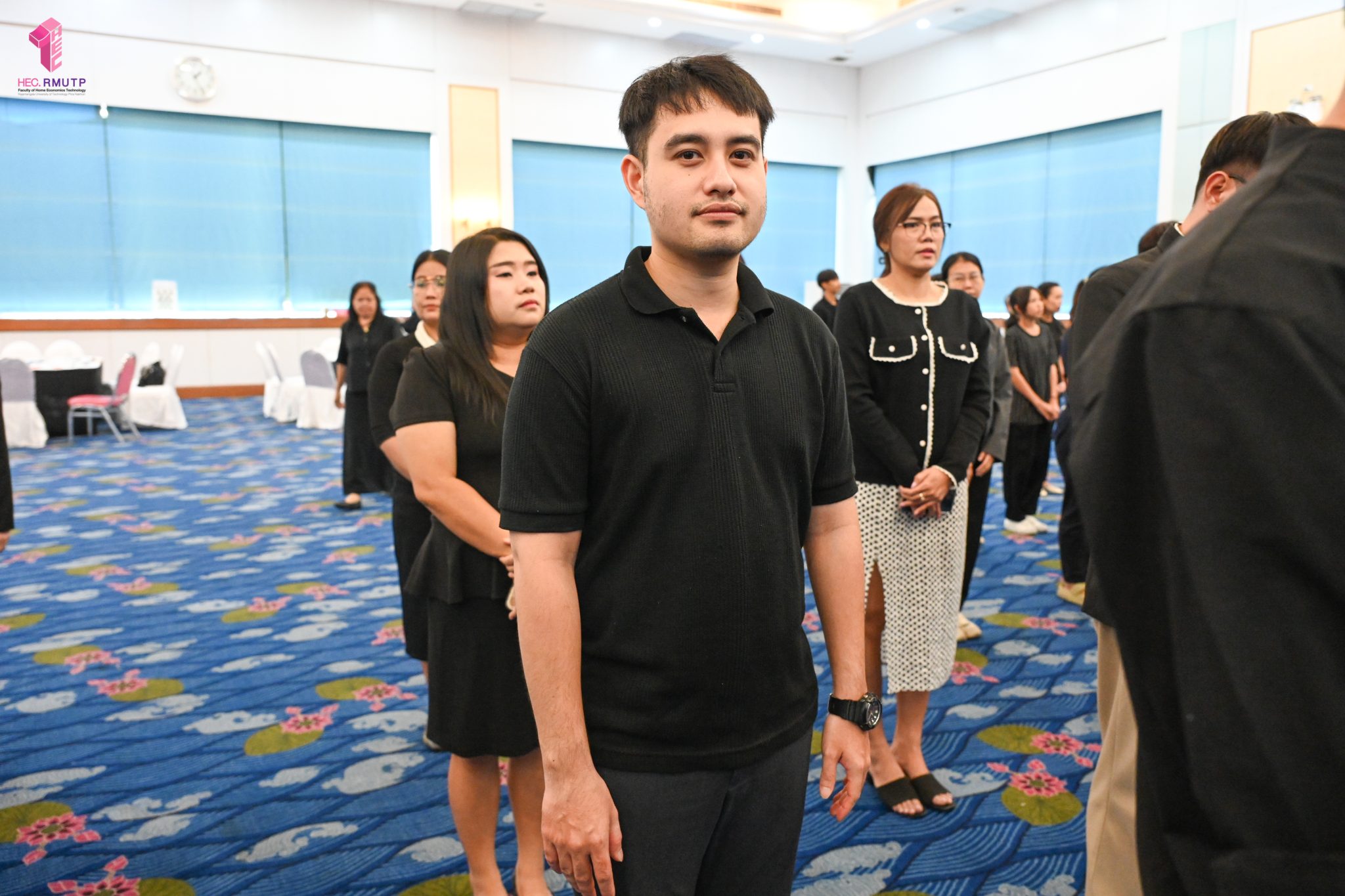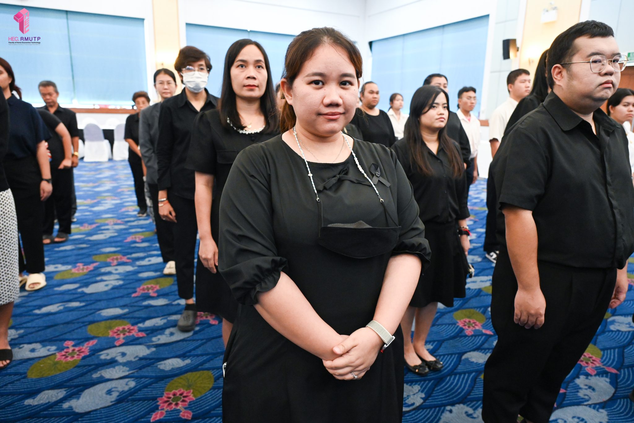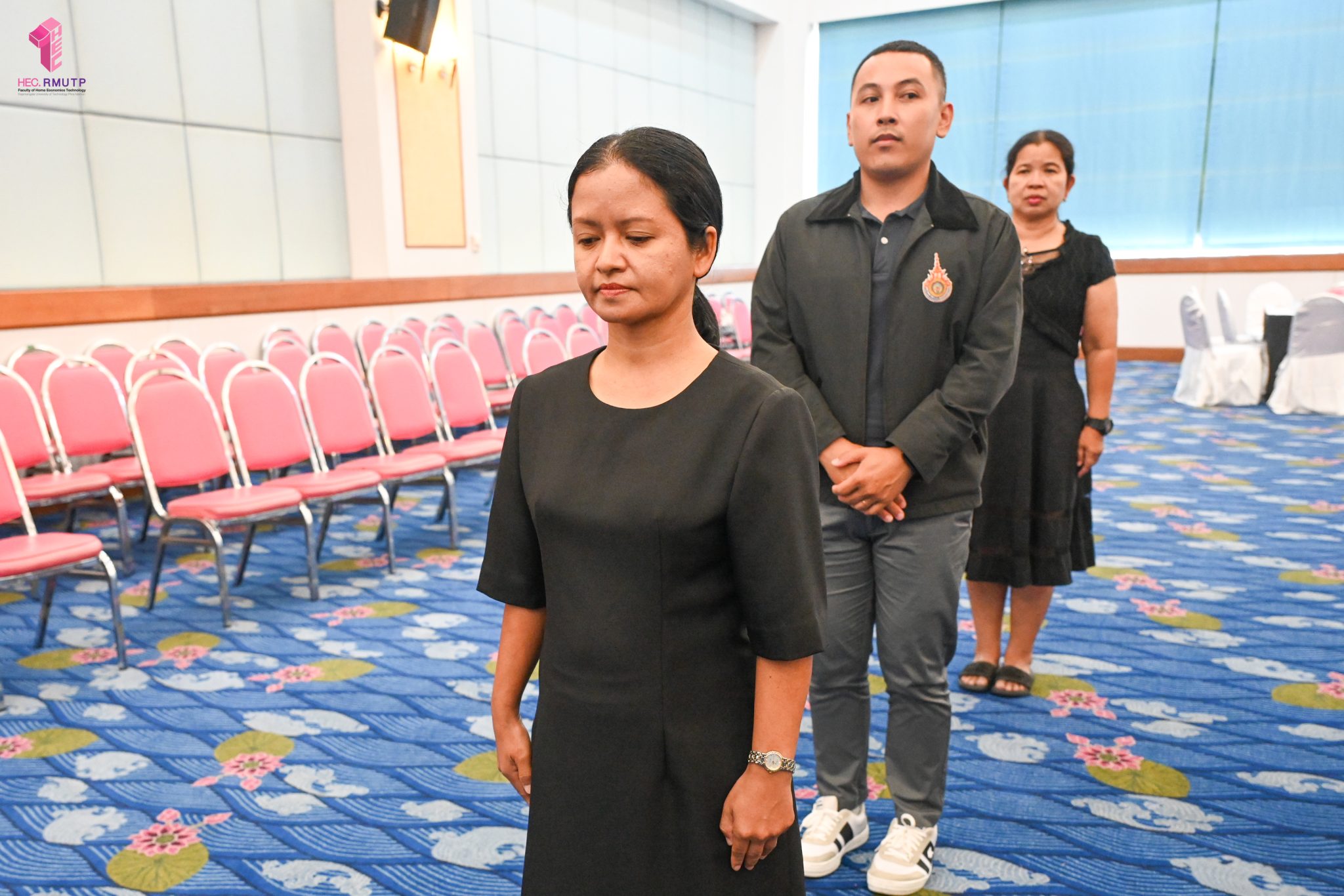 งานศิลปวัฒนธรรม ฝ่ายกิจการนักศึกษา คณะเทคโนโลยีคหกรรมศาสตร์ มหาวิทยาลัยเทคโนโลยีราชมงคลพระนคร จัดพิธีน้อมถวายความอาลัย “พระผู้เสด็จสู่สวรรคาลัย สมเด็จพระนางเจ้าสิริกิติ์ พระบรมราชินีนาถ พระบรมราชชนนีพันปีหลวง” เพื่อแสดงออกถึงความจงรักภักดีและสำนึกในพระมหากรุณาธิคุณอันหาที่สุดมิได้ โดยได้รับเกียรติจาก ผู้ช่วยศาสตราจารย์ ดร.ธนภพ โสตรโยม คณบดีคณะเทคโนโลยีคหกรรมศาสตร์ เป็นประธานในพิธี พร้อมด้วย คุณวรรณา มณีนุตร์ นายกสมาคมศิษย์เก่าโชติเวช คุณกานต์กนิษฐ์ แห้วสันตติ ประธานสภาวัฒนธรรมเขตพระนคร ประธานชุมชนเขตพื้นที่วัดเทวราชกุญชร ผู้บริหาร คณาจารย์ บุคลากร นักศึกษา ผู้แทนบุคลากรจากเรือนจำอำเภอฝาง จังหวัดเชียงราย และประชาชนชุมชนวัดเทวราชกุญชร เข้าร่วมพิธีด้วยความสำนึกในพระมหากรุณาธิคุณอย่างหาที่สุดมิได้ พิธีจัดขึ้นเมื่อวันที่ 28 ตุลาคม 2568 ณ ห้องประชุมโชติเวช ชั้น 4 อาคารเรือนปัญญา คณะเทคโนโลยีคหกรรมศาสตร์