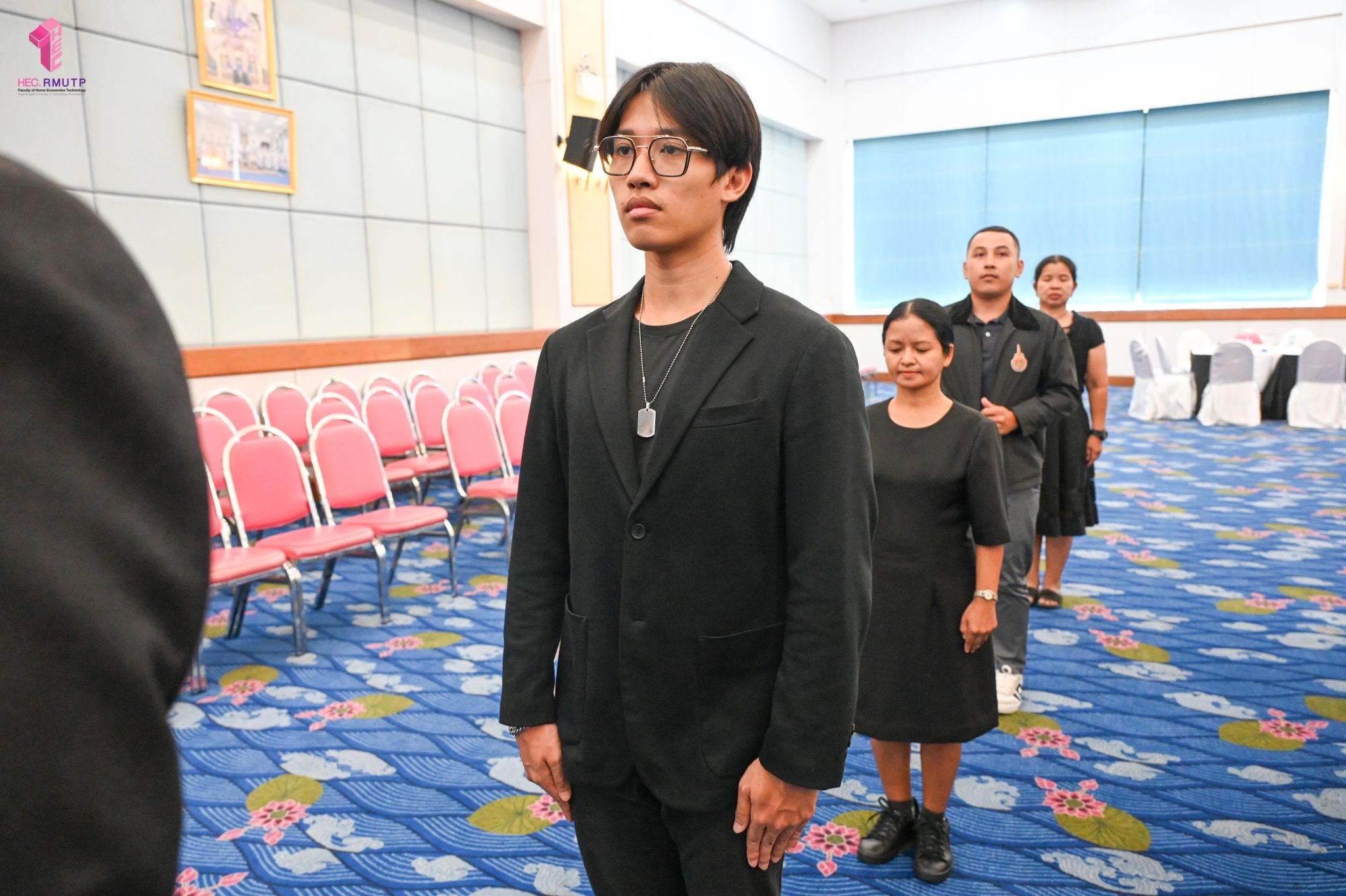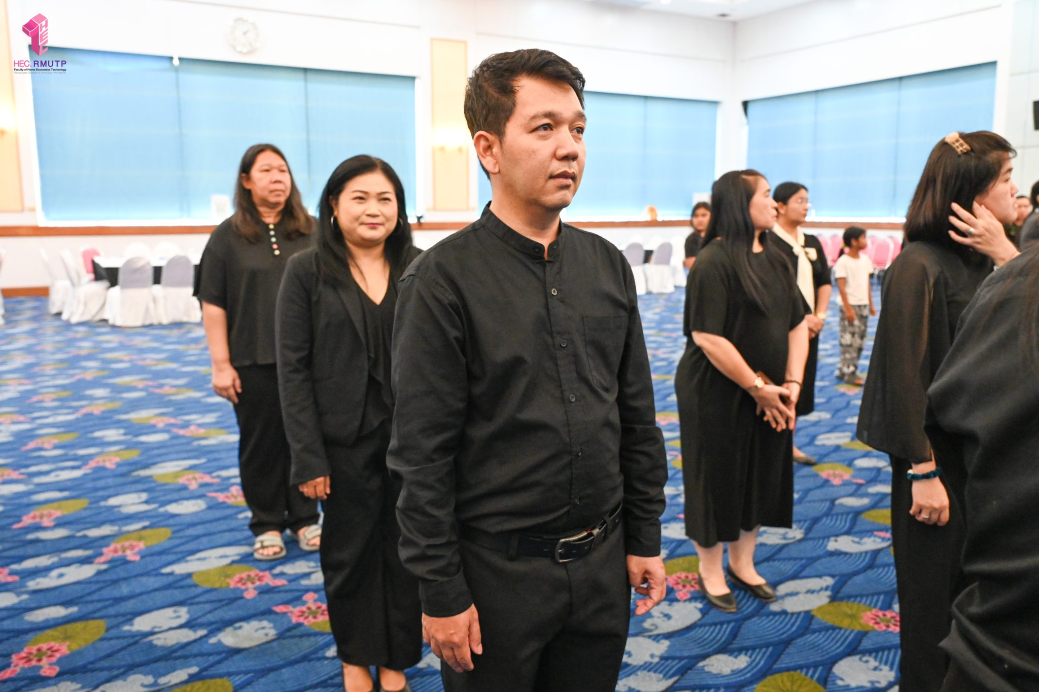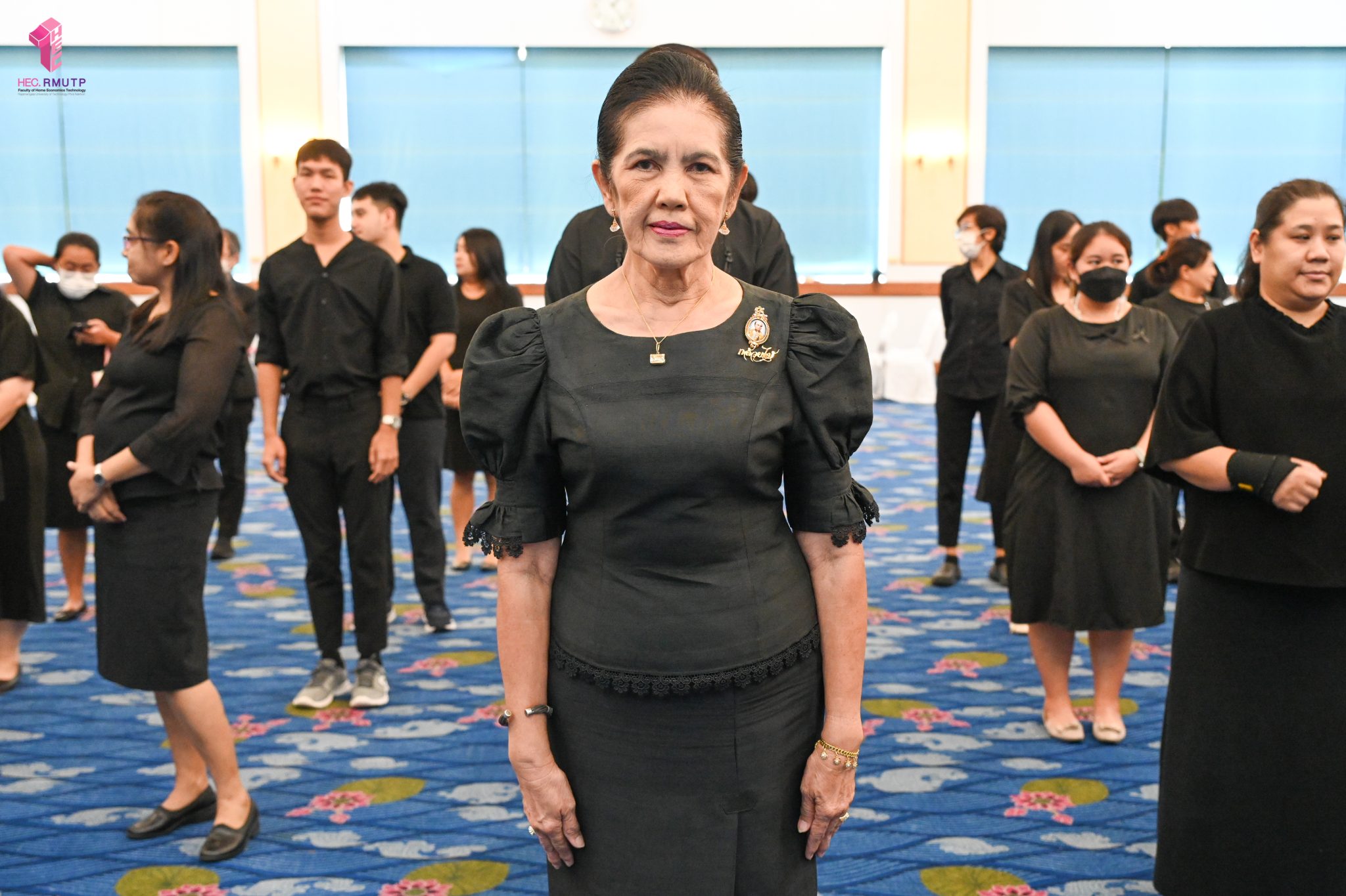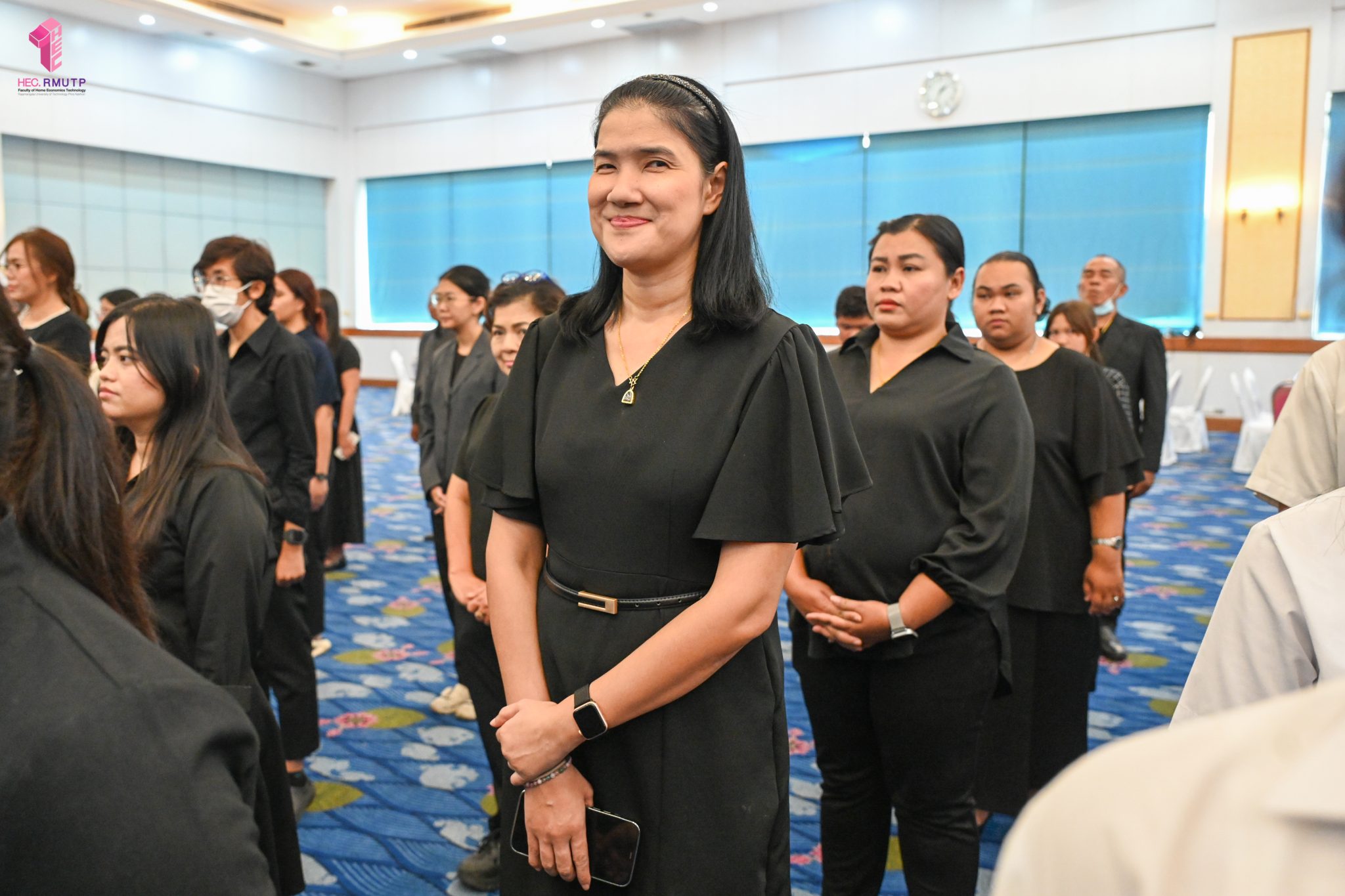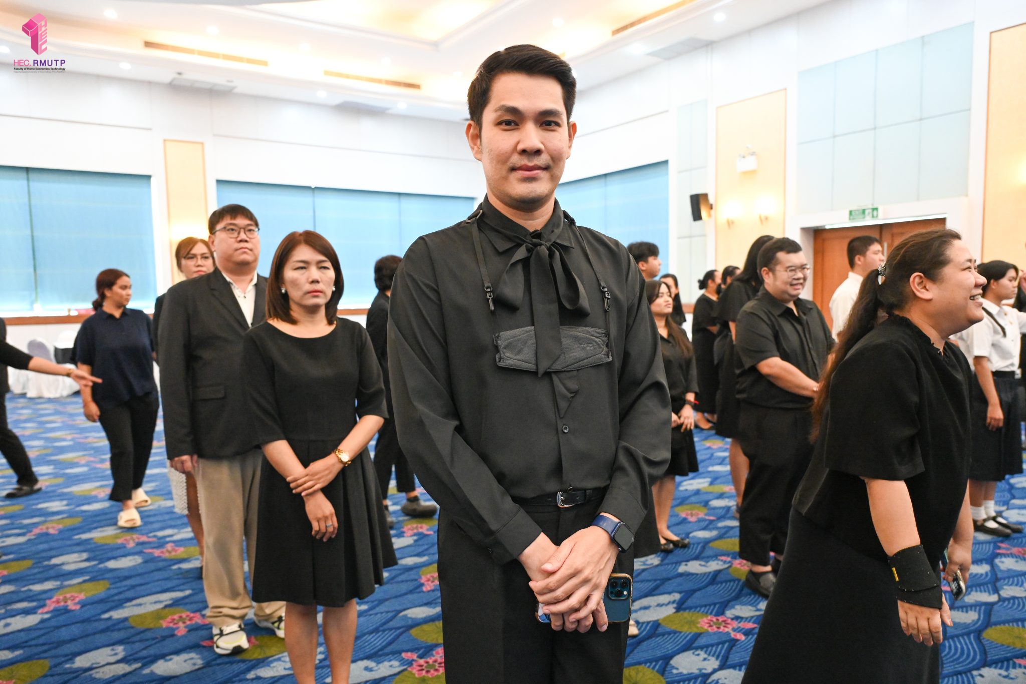 งานศิลปวัฒนธรรม ฝ่ายกิจการนักศึกษา คณะเทคโนโลยีคหกรรมศาสตร์ มหาวิทยาลัยเทคโนโลยีราชมงคลพระนคร จัดพิธีน้อมถวายความอาลัย “พระผู้เสด็จสู่สวรรคาลัย สมเด็จพระนางเจ้าสิริกิติ์ พระบรมราชินีนาถ พระบรมราชชนนีพันปีหลวง” เพื่อแสดงออกถึงความจงรักภักดีและสำนึกในพระมหากรุณาธิคุณอันหาที่สุดมิได้ โดยได้รับเกียรติจาก ผู้ช่วยศาสตราจารย์ ดร.ธนภพ โสตรโยม คณบดีคณะเทคโนโลยีคหกรรมศาสตร์ เป็นประธานในพิธี พร้อมด้วย คุณวรรณา มณีนุตร์ นายกสมาคมศิษย์เก่าโชติเวช คุณกานต์กนิษฐ์ แห้วสันตติ ประธานสภาวัฒนธรรมเขตพระนคร ประธานชุมชนเขตพื้นที่วัดเทวราชกุญชร ผู้บริหาร คณาจารย์ บุคลากร นักศึกษา ผู้แทนบุคลากรจากเรือนจำอำเภอฝาง จังหวัดเชียงราย และประชาชนชุมชนวัดเทวราชกุญชร เข้าร่วมพิธีด้วยความสำนึกในพระมหากรุณาธิคุณอย่างหาที่สุดมิได้ พิธีจัดขึ้นเมื่อวันที่ 28 ตุลาคม 2568 ณ ห้องประชุมโชติเวช ชั้น 4 อาคารเรือนปัญญา คณะเทคโนโลยีคหกรรมศาสตร์