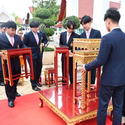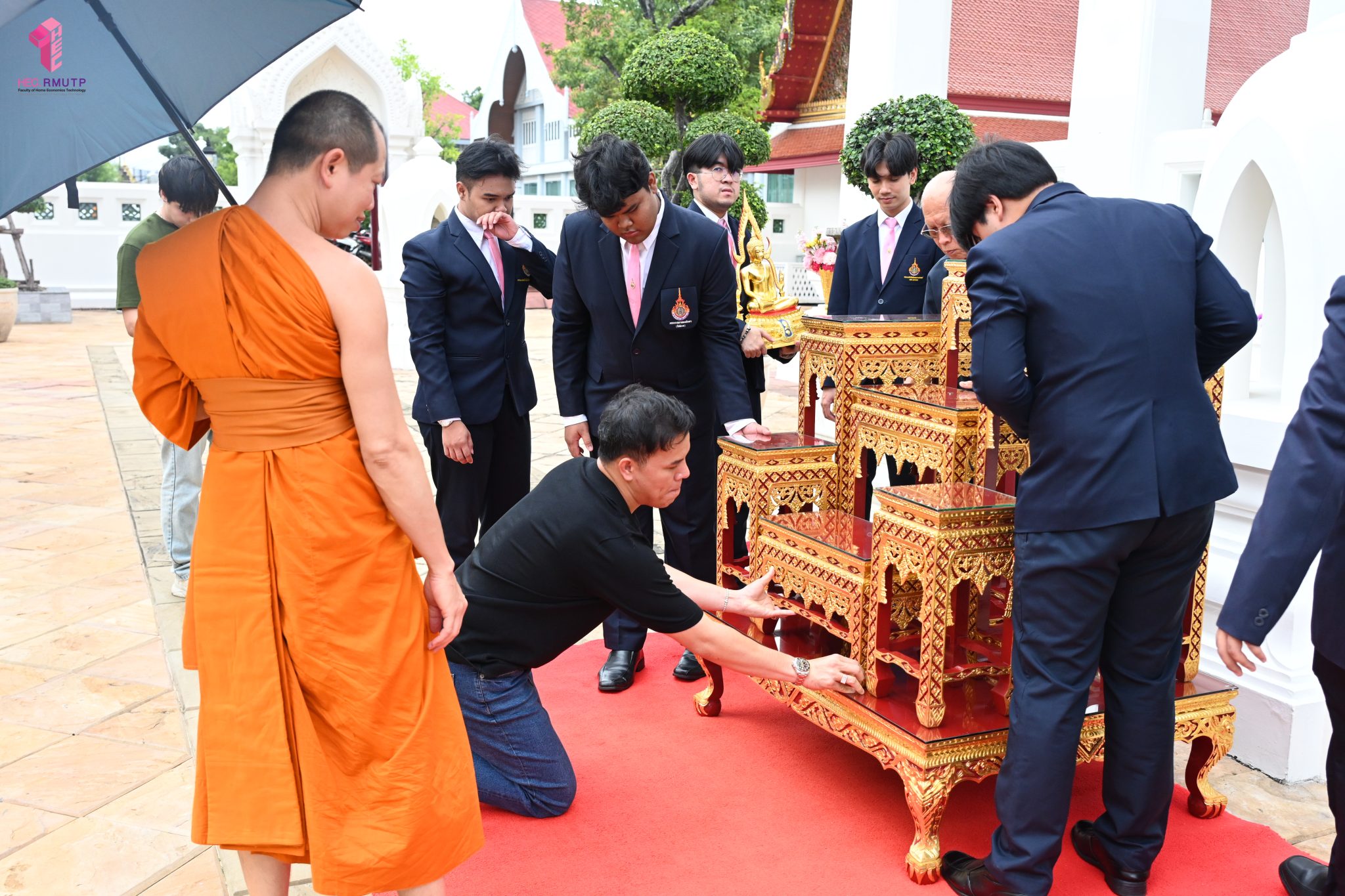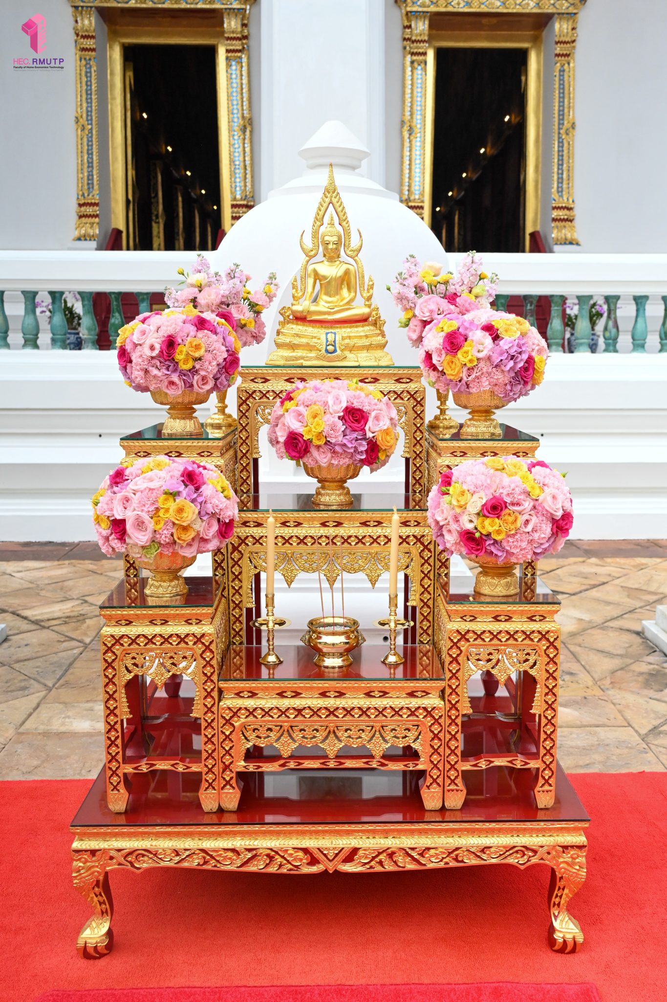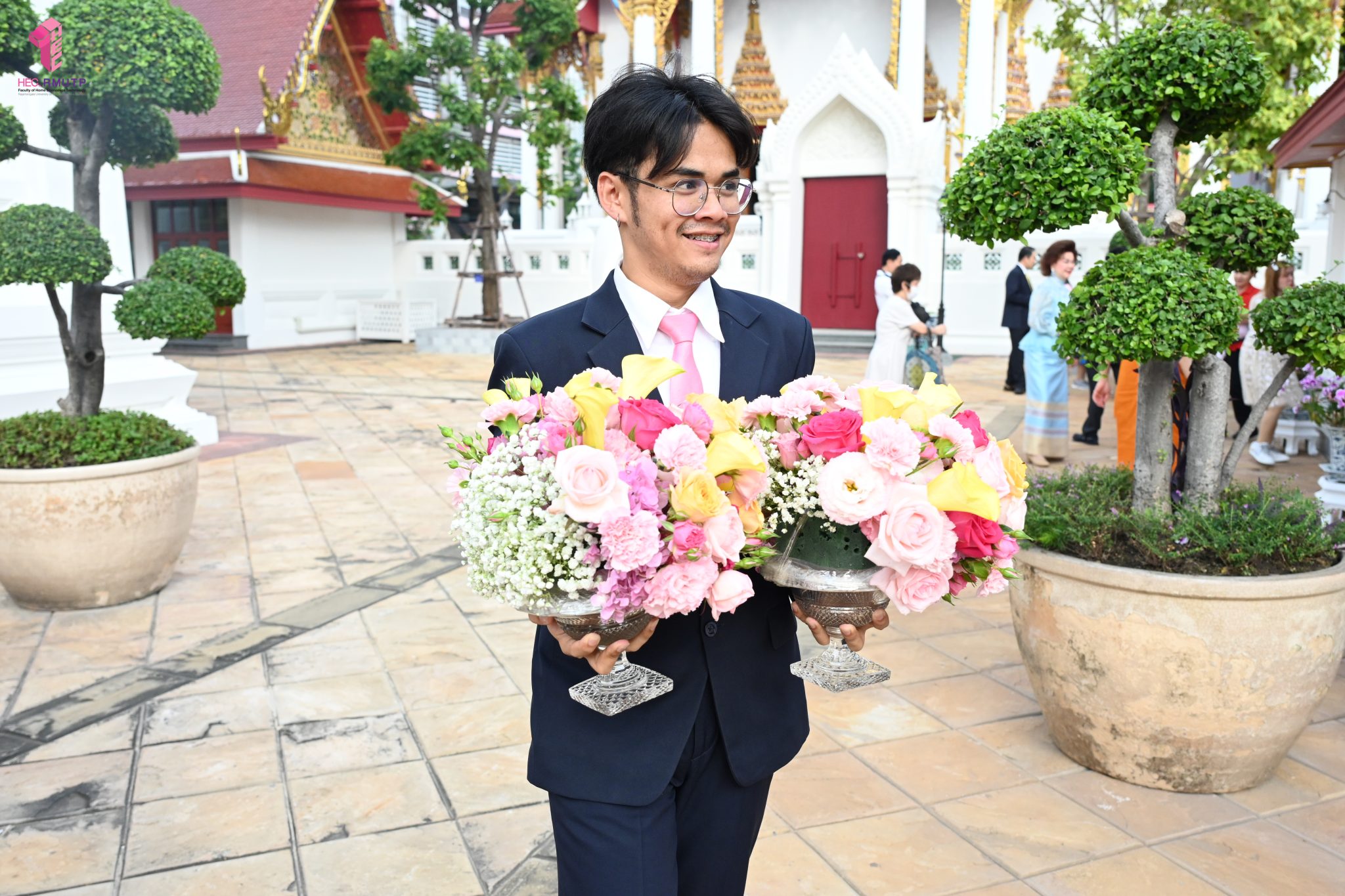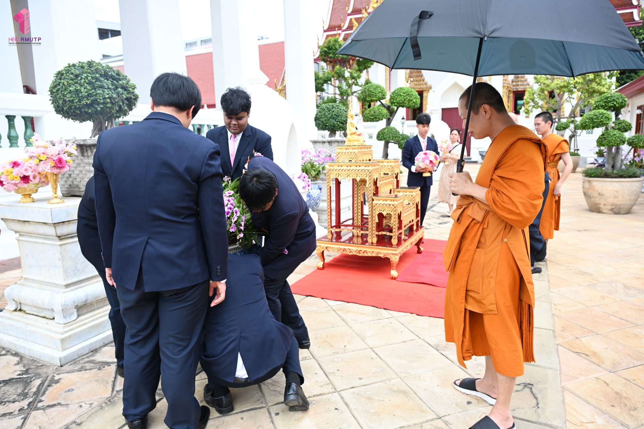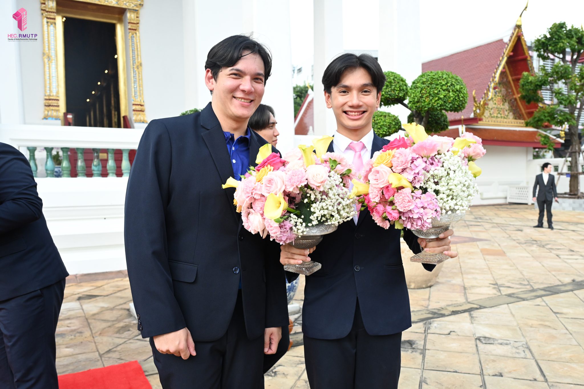 ผู้ช่วยศาสตราจารย์อนุสรณ์ ใจทน อาจารย์ประจำสาขาวิชาคหกรรมศาสตร์ประยุกต์ และอาจารย์ศุภสิทฐ์ วราศิลป์ หัวหน้างานศิลปวัฒนธรรม ฝ่ายกิจการนักศึกษา นำทีมนักศึกษาสโมสรนักศึกษาเข้าร่วมปฏิบัติงานในพิธีถวายเจริญพระพุทธมนต์เพื่อความเป็นสิริมงคล ในโอกาสที่ ดร.วรวิทย์ วีรบวรพงศ์ ดร.พัชรา วีรบวรพงศ์ พร้อมครอบครัว บริษัท สยามแก๊ส แอนด์ ปิโตรเคมีคัลส์ จำกัด (มหาชน) ถวายศาลารายพรหมมุทิตา เมื่อวันที่ 27 กันยายน 2568 ณ ศาลารายพรหมมุทิตา วัดเทวราชกุญชร วรวิหาร ทั้งนี้ คณาจารย์และนักศึกษาสาขาวิชาคหกรรมศาสตร์ประยุกต์ ดำเนินการจัดดอกไม้ตกแต่งสถานที่ภายในศาลารายพรหมมุทิตา เพื่อเพิ่มความงดงาม ความสมบูรณ์ และความศักดิ์สิทธิ์แก่พิธี