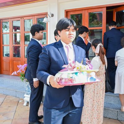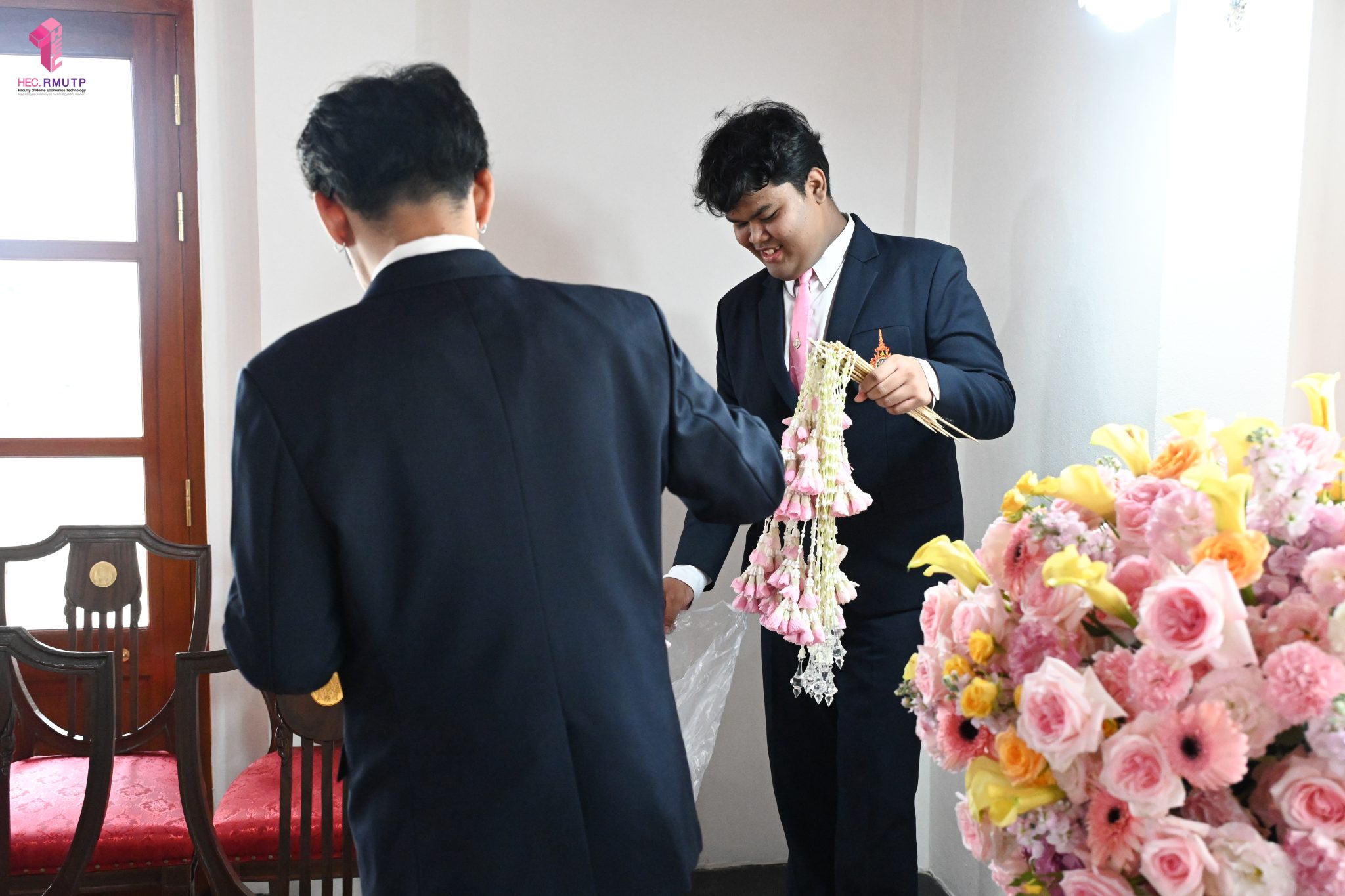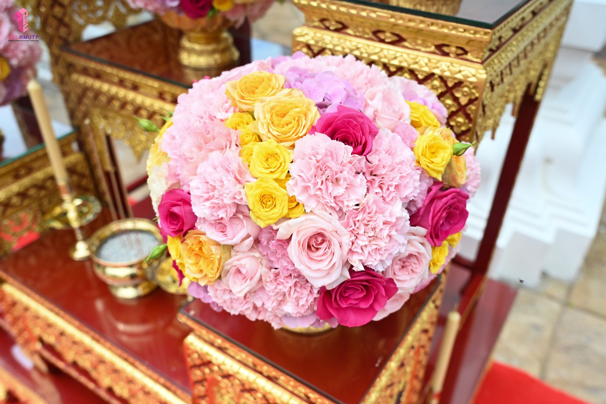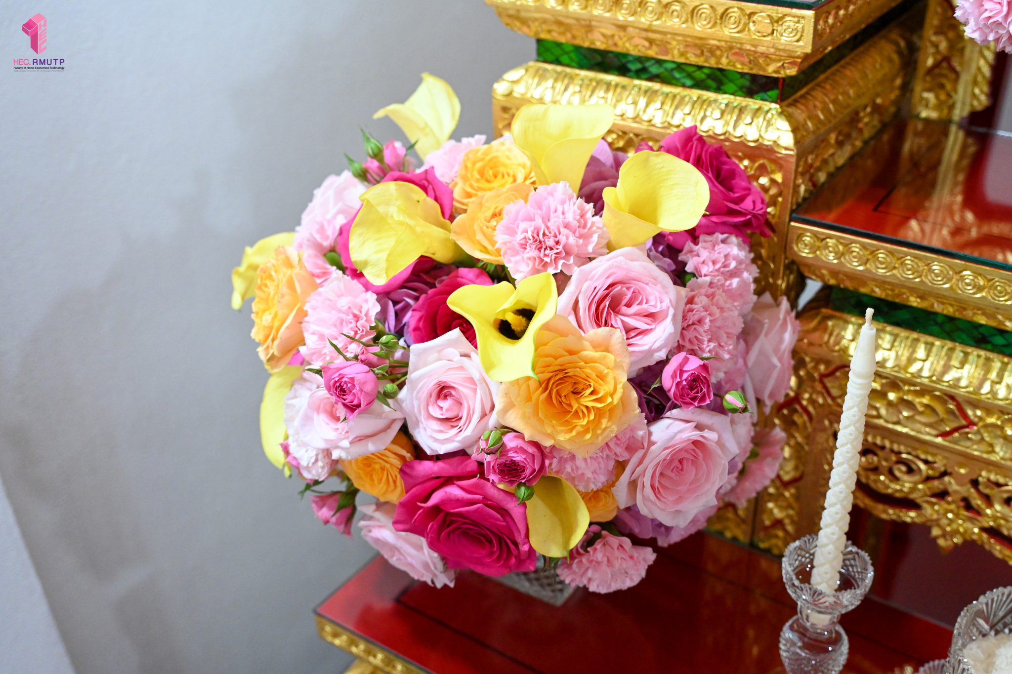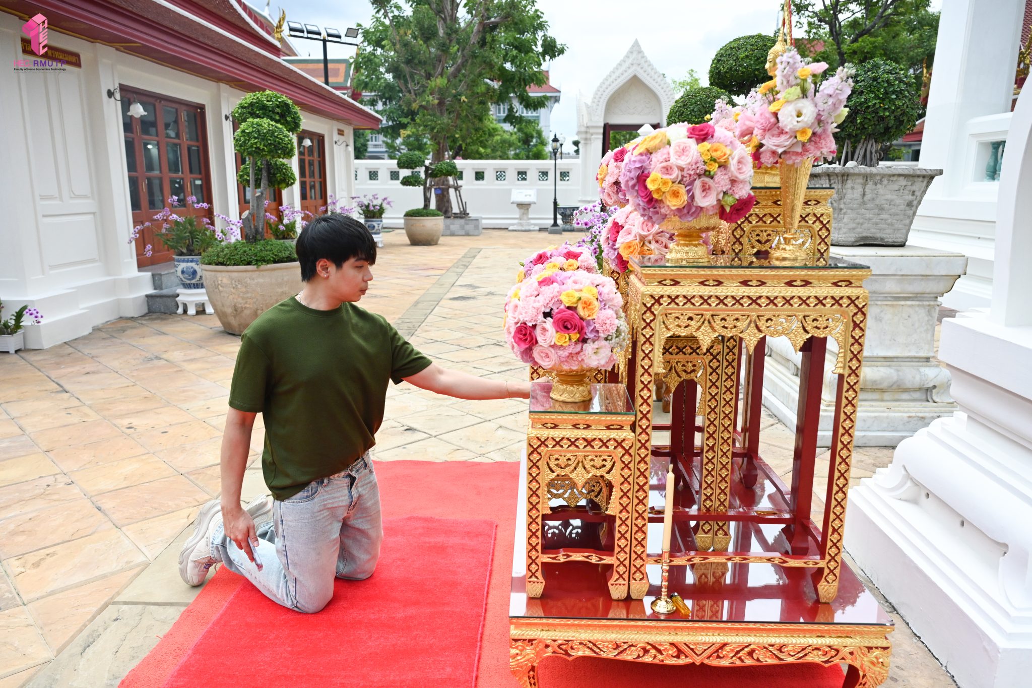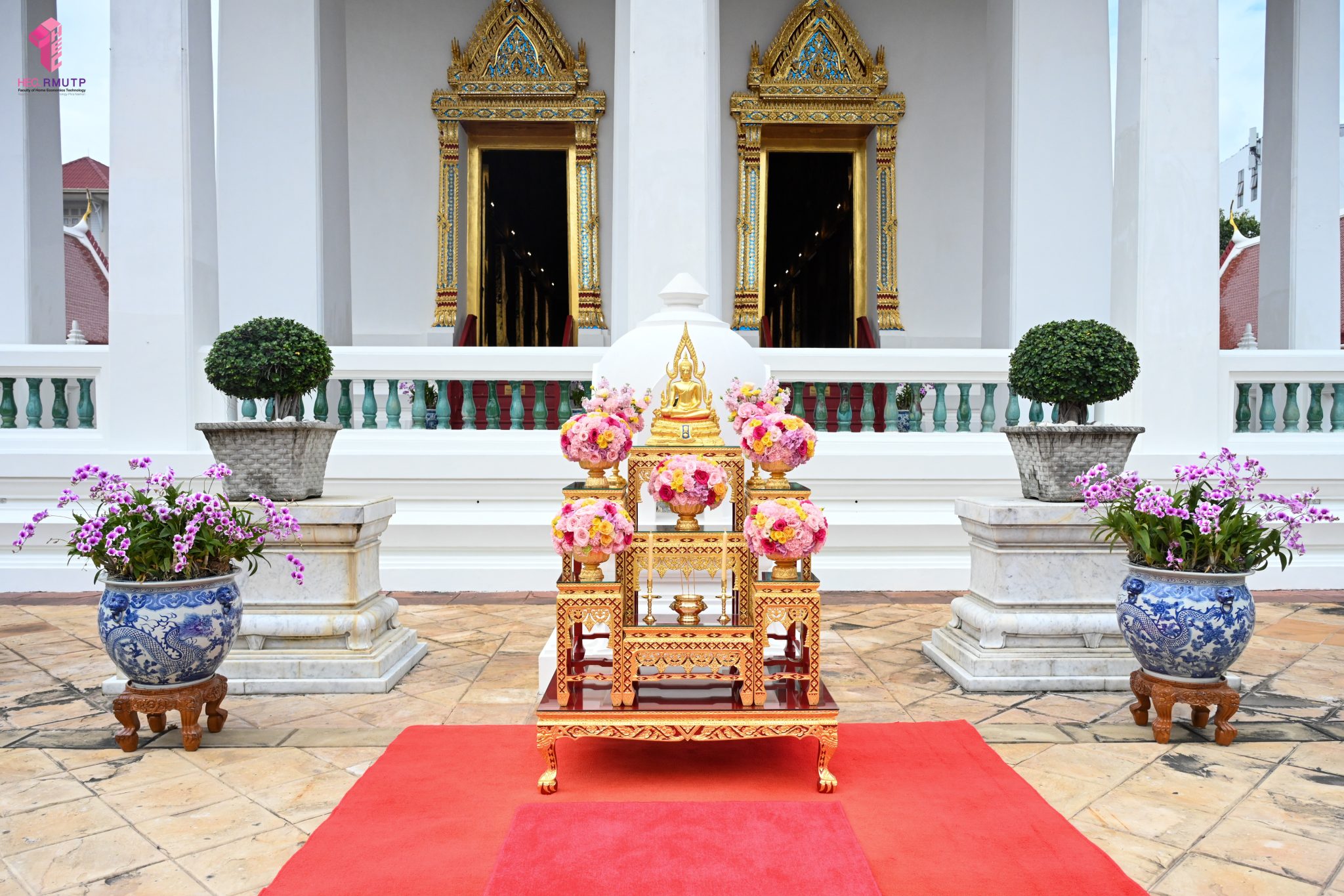 ผู้ช่วยศาสตราจารย์อนุสรณ์ ใจทน อาจารย์ประจำสาขาวิชาคหกรรมศาสตร์ประยุกต์ และอาจารย์ศุภสิทฐ์ วราศิลป์ หัวหน้างานศิลปวัฒนธรรม ฝ่ายกิจการนักศึกษา นำทีมนักศึกษาสโมสรนักศึกษาเข้าร่วมปฏิบัติงานในพิธีถวายเจริญพระพุทธมนต์เพื่อความเป็นสิริมงคล ในโอกาสที่ ดร.วรวิทย์ วีรบวรพงศ์ ดร.พัชรา วีรบวรพงศ์ พร้อมครอบครัว บริษัท สยามแก๊ส แอนด์ ปิโตรเคมีคัลส์ จำกัด (มหาชน) ถวายศาลารายพรหมมุทิตา เมื่อวันที่ 27 กันยายน 2568 ณ ศาลารายพรหมมุทิตา วัดเทวราชกุญชร วรวิหาร ทั้งนี้ คณาจารย์และนักศึกษาสาขาวิชาคหกรรมศาสตร์ประยุกต์ ดำเนินการจัดดอกไม้ตกแต่งสถานที่ภายในศาลารายพรหมมุทิตา เพื่อเพิ่มความงดงาม ความสมบูรณ์ และความศักดิ์สิทธิ์แก่พิธี