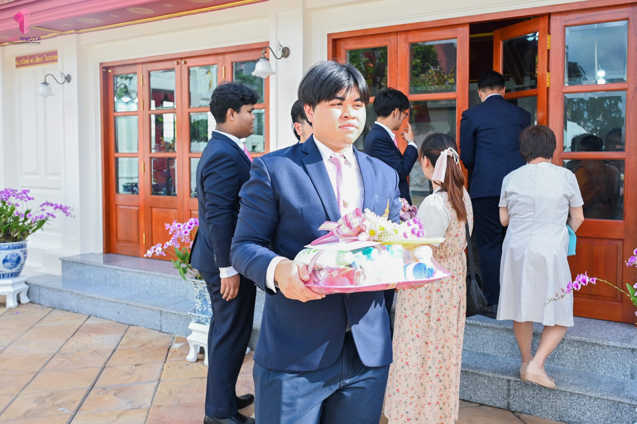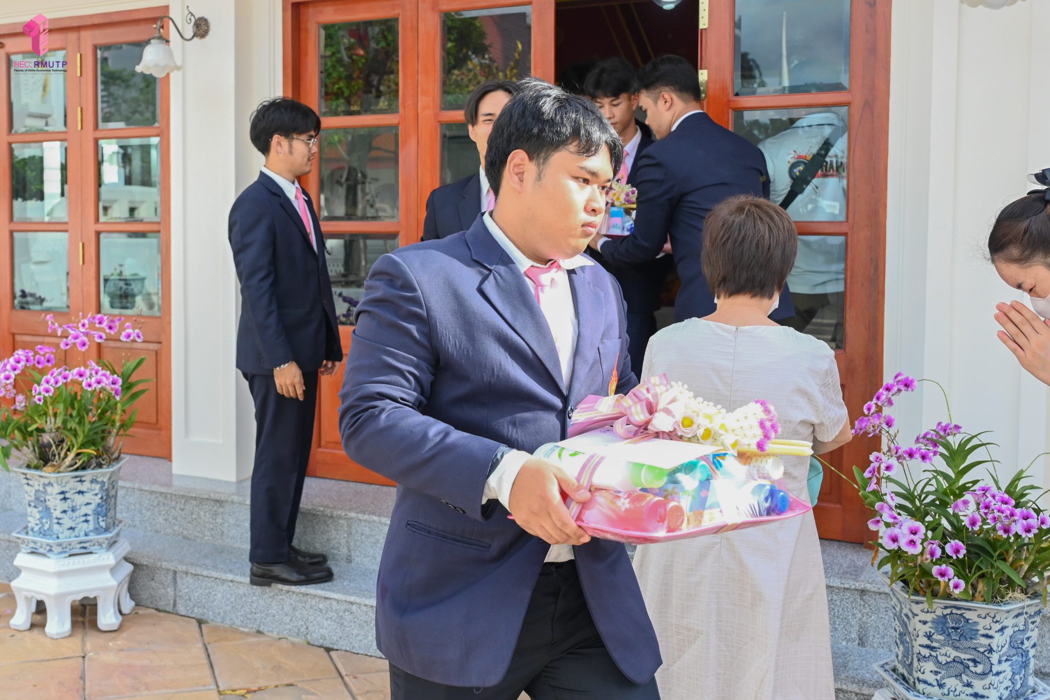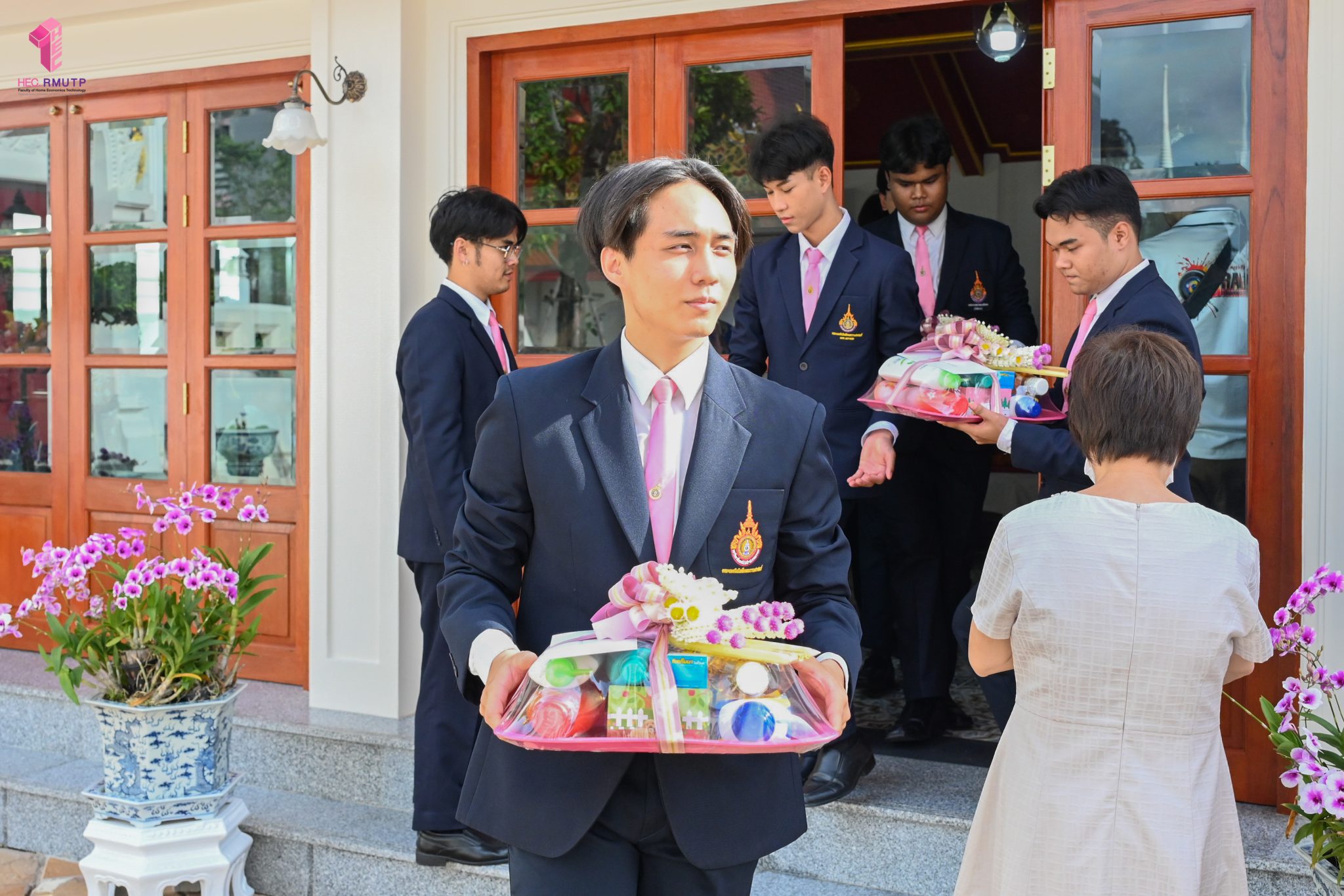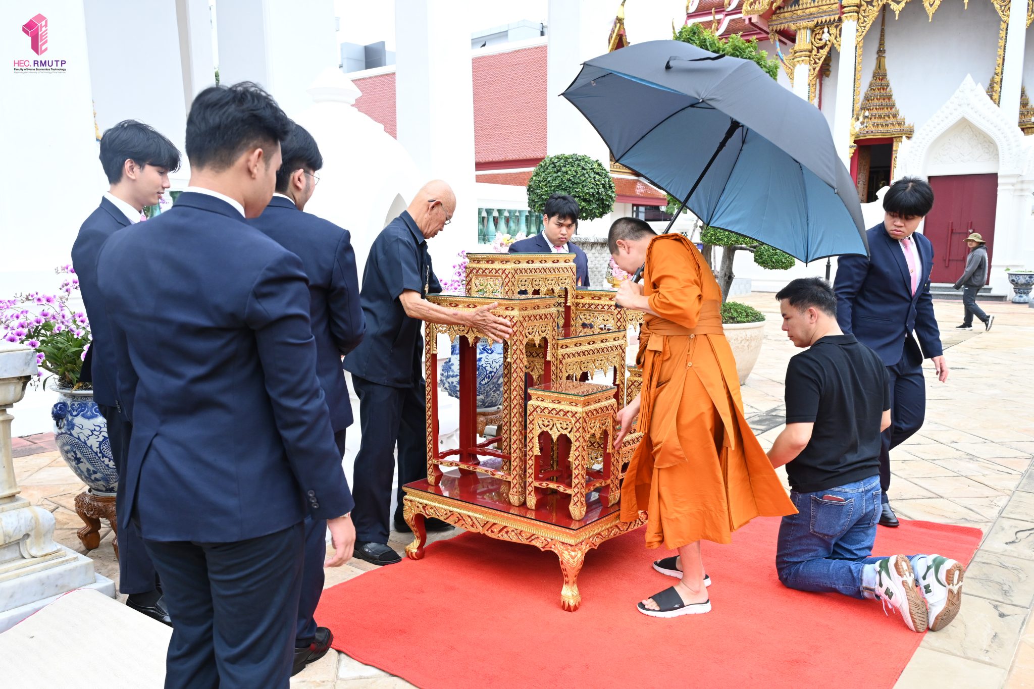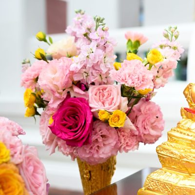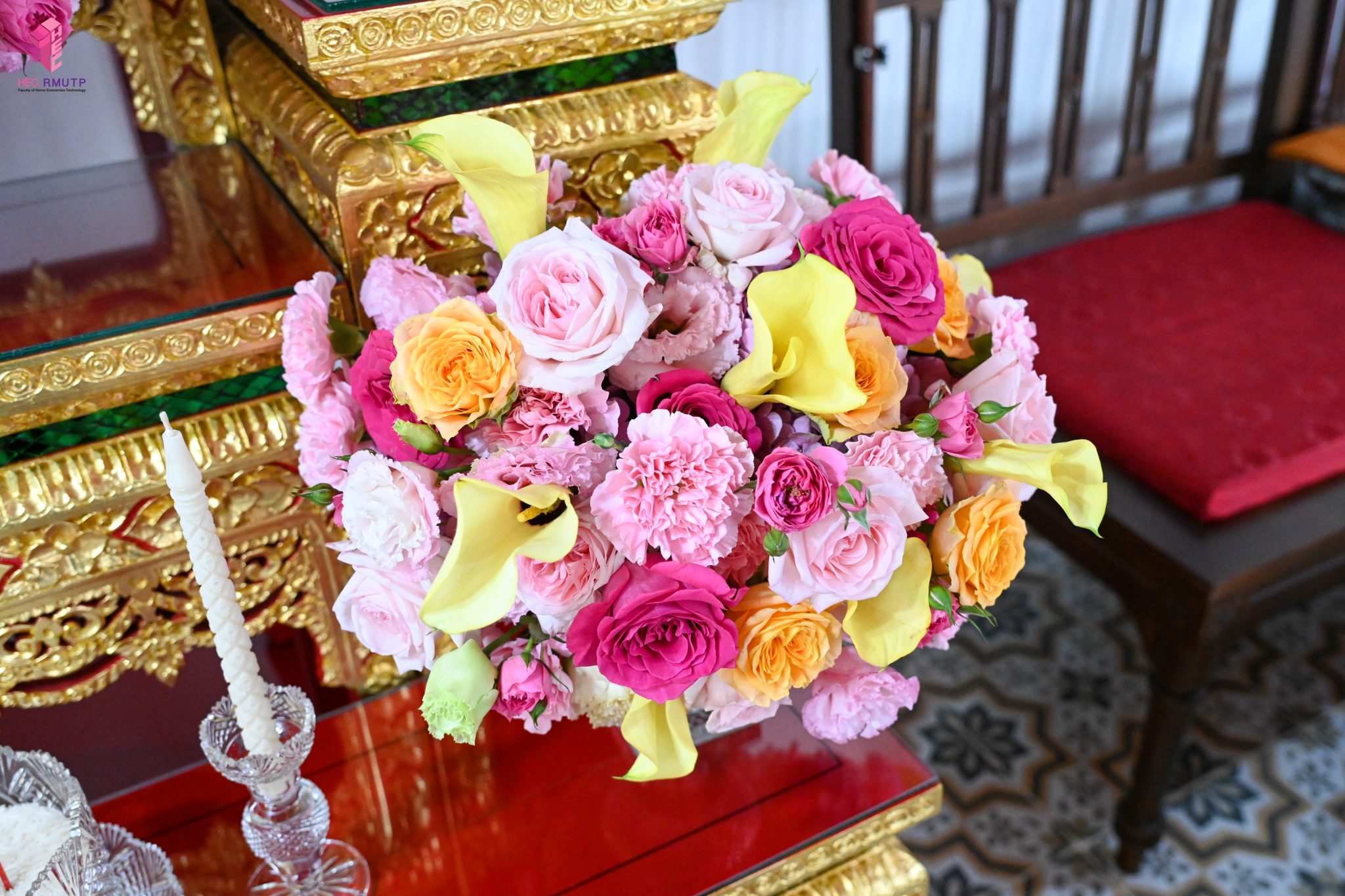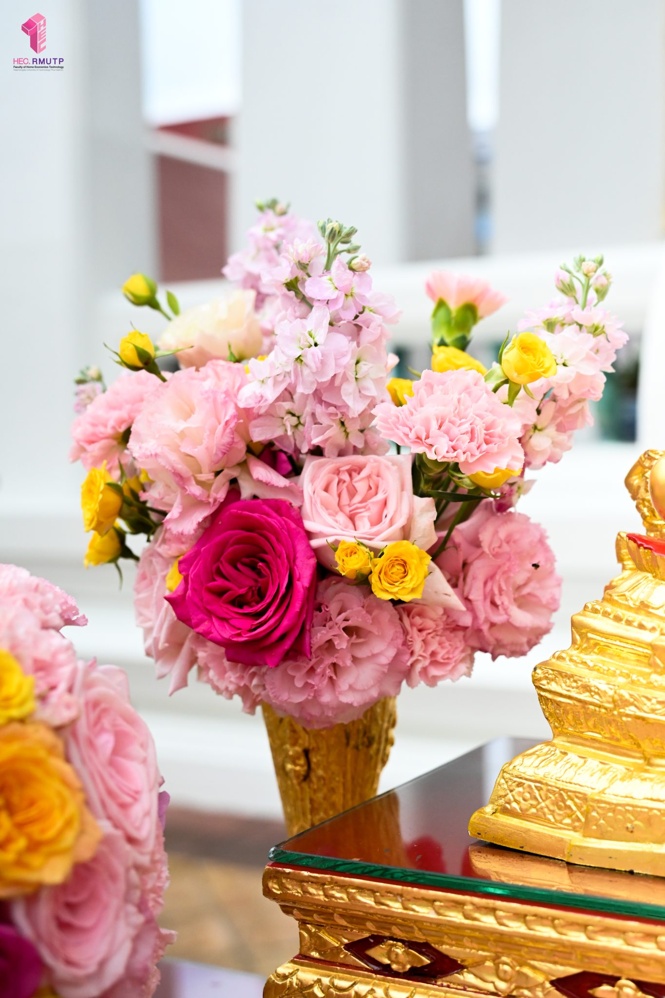 ผู้ช่วยศาสตราจารย์อนุสรณ์ ใจทน อาจารย์ประจำสาขาวิชาคหกรรมศาสตร์ประยุกต์ และอาจารย์ศุภสิทฐ์ วราศิลป์ หัวหน้างานศิลปวัฒนธรรม ฝ่ายกิจการนักศึกษา นำทีมนักศึกษาสโมสรนักศึกษาเข้าร่วมปฏิบัติงานในพิธีถวายเจริญพระพุทธมนต์เพื่อความเป็นสิริมงคล ในโอกาสที่ ดร.วรวิทย์ วีรบวรพงศ์ ดร.พัชรา วีรบวรพงศ์ พร้อมครอบครัว บริษัท สยามแก๊ส แอนด์ ปิโตรเคมีคัลส์ จำกัด (มหาชน) ถวายศาลารายพรหมมุทิตา เมื่อวันที่ 27 กันยายน 2568 ณ ศาลารายพรหมมุทิตา วัดเทวราชกุญชร วรวิหาร ทั้งนี้ คณาจารย์และนักศึกษาสาขาวิชาคหกรรมศาสตร์ประยุกต์ ดำเนินการจัดดอกไม้ตกแต่งสถานที่ภายในศาลารายพรหมมุทิตา เพื่อเพิ่มความงดงาม ความสมบูรณ์ และความศักดิ์สิทธิ์แก่พิธี