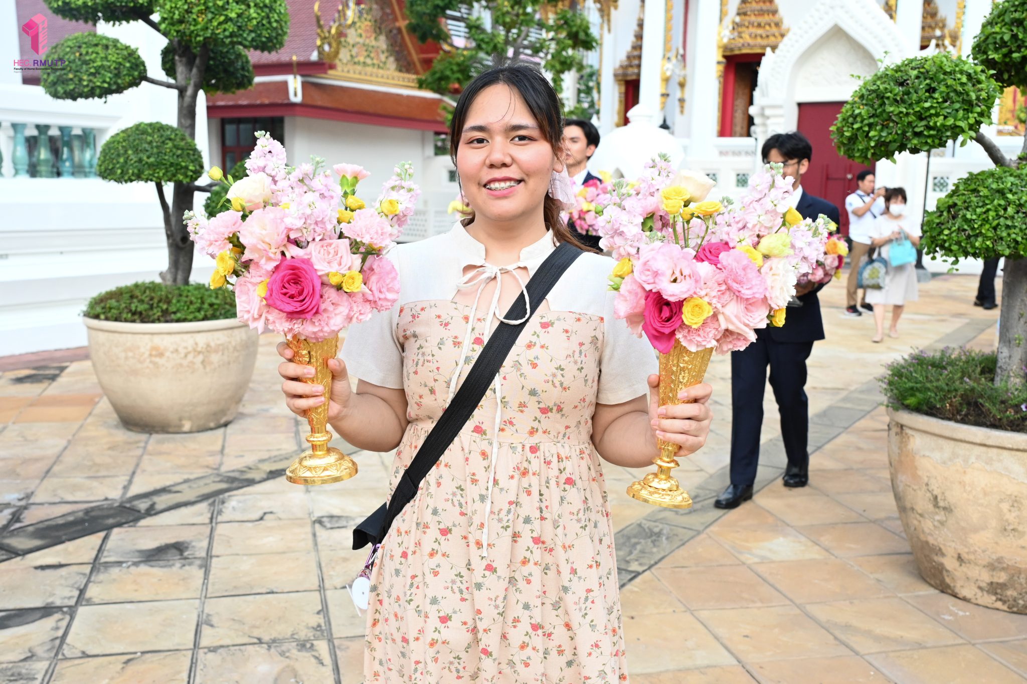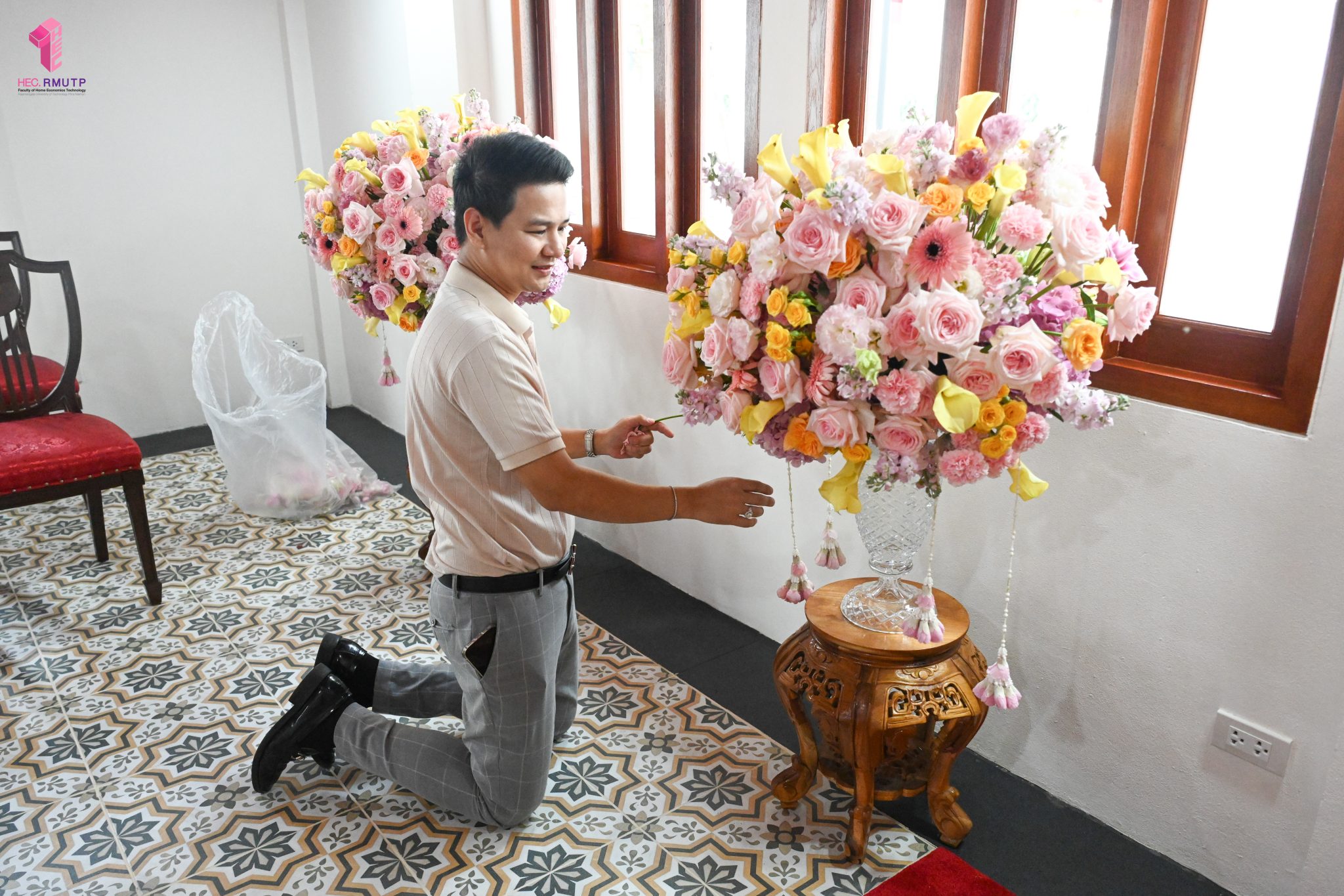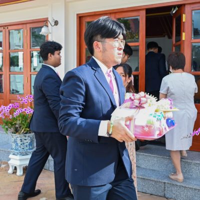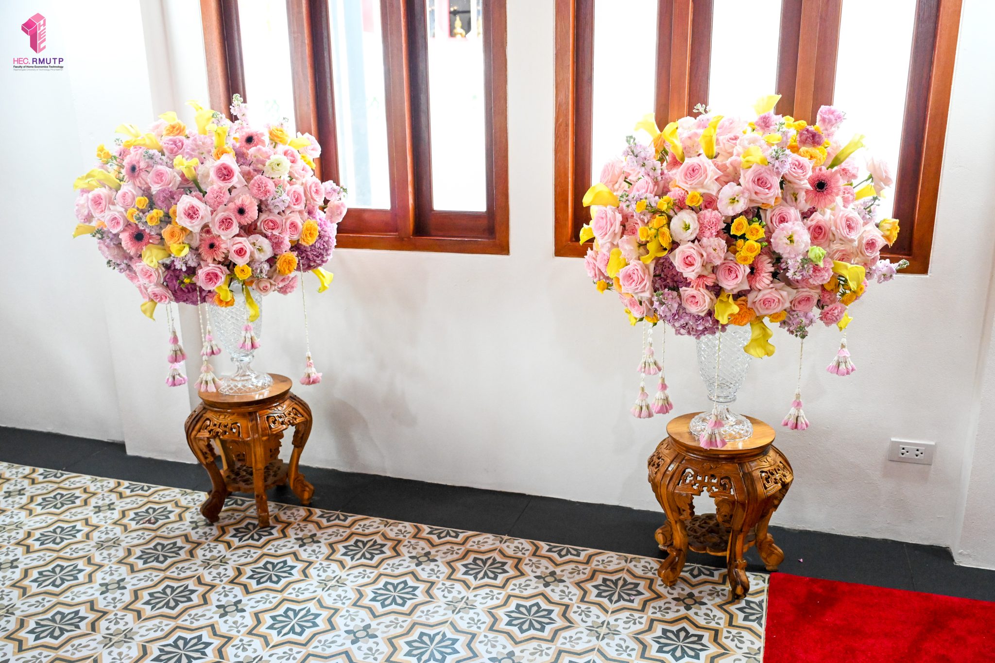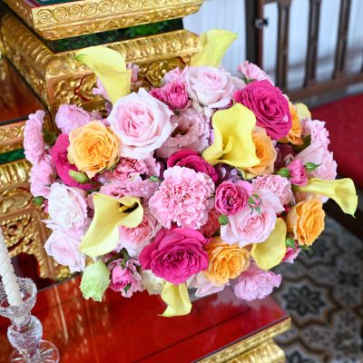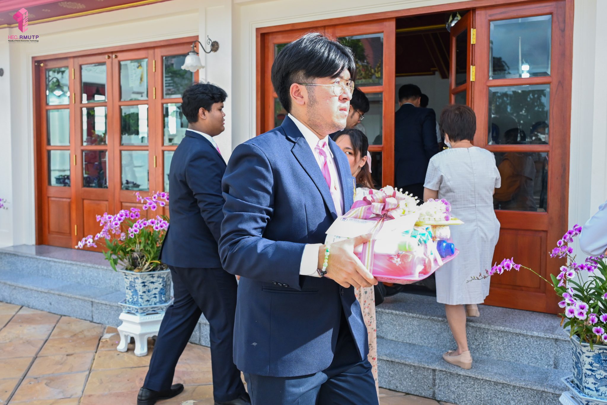 ผู้ช่วยศาสตราจารย์อนุสรณ์ ใจทน อาจารย์ประจำสาขาวิชาคหกรรมศาสตร์ประยุกต์ และอาจารย์ศุภสิทฐ์ วราศิลป์ หัวหน้างานศิลปวัฒนธรรม ฝ่ายกิจการนักศึกษา นำทีมนักศึกษาสโมสรนักศึกษาเข้าร่วมปฏิบัติงานในพิธีถวายเจริญพระพุทธมนต์เพื่อความเป็นสิริมงคล ในโอกาสที่ ดร.วรวิทย์ วีรบวรพงศ์ ดร.พัชรา วีรบวรพงศ์ พร้อมครอบครัว บริษัท สยามแก๊ส แอนด์ ปิโตรเคมีคัลส์ จำกัด (มหาชน) ถวายศาลารายพรหมมุทิตา เมื่อวันที่ 27 กันยายน 2568 ณ ศาลารายพรหมมุทิตา วัดเทวราชกุญชร วรวิหาร ทั้งนี้ คณาจารย์และนักศึกษาสาขาวิชาคหกรรมศาสตร์ประยุกต์ ดำเนินการจัดดอกไม้ตกแต่งสถานที่ภายในศาลารายพรหมมุทิตา เพื่อเพิ่มความงดงาม ความสมบูรณ์ และความศักดิ์สิทธิ์แก่พิธี