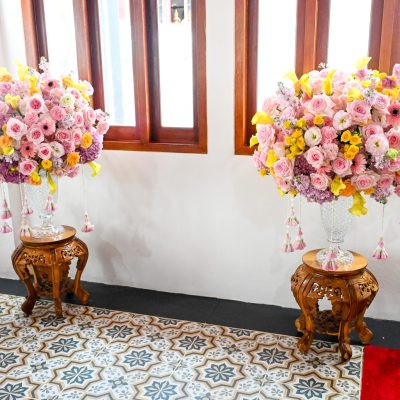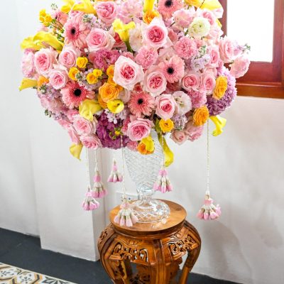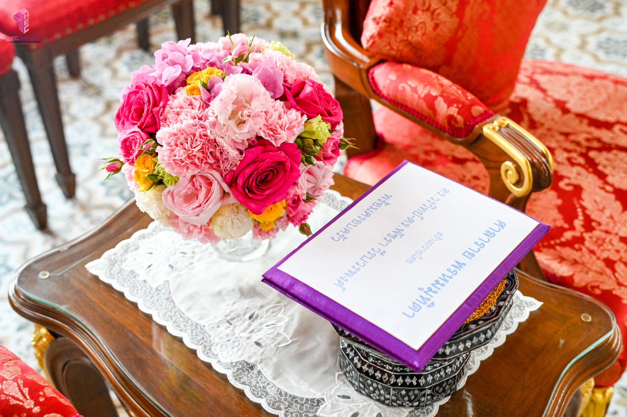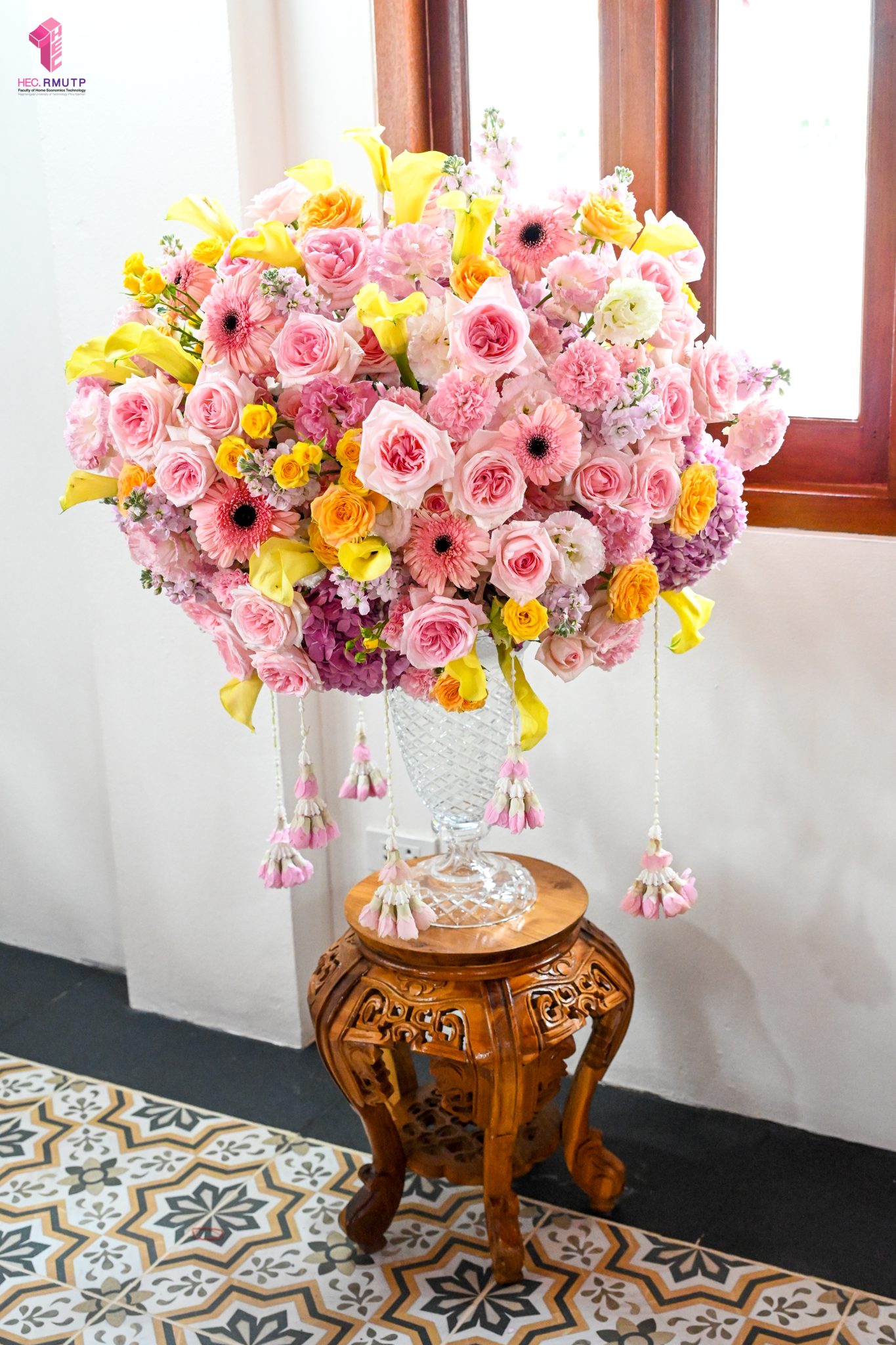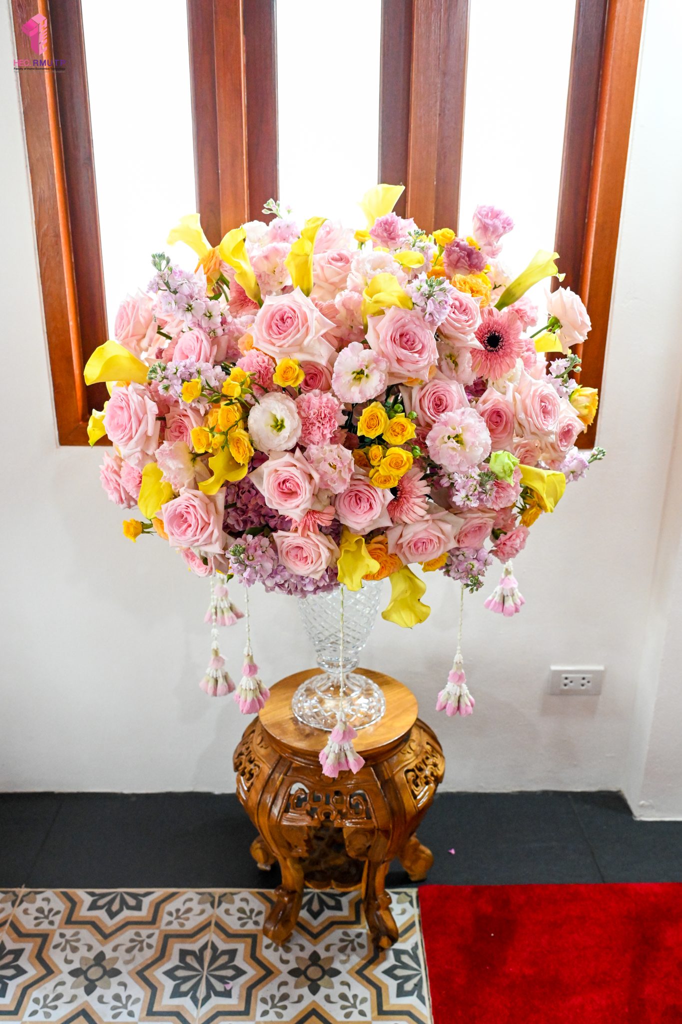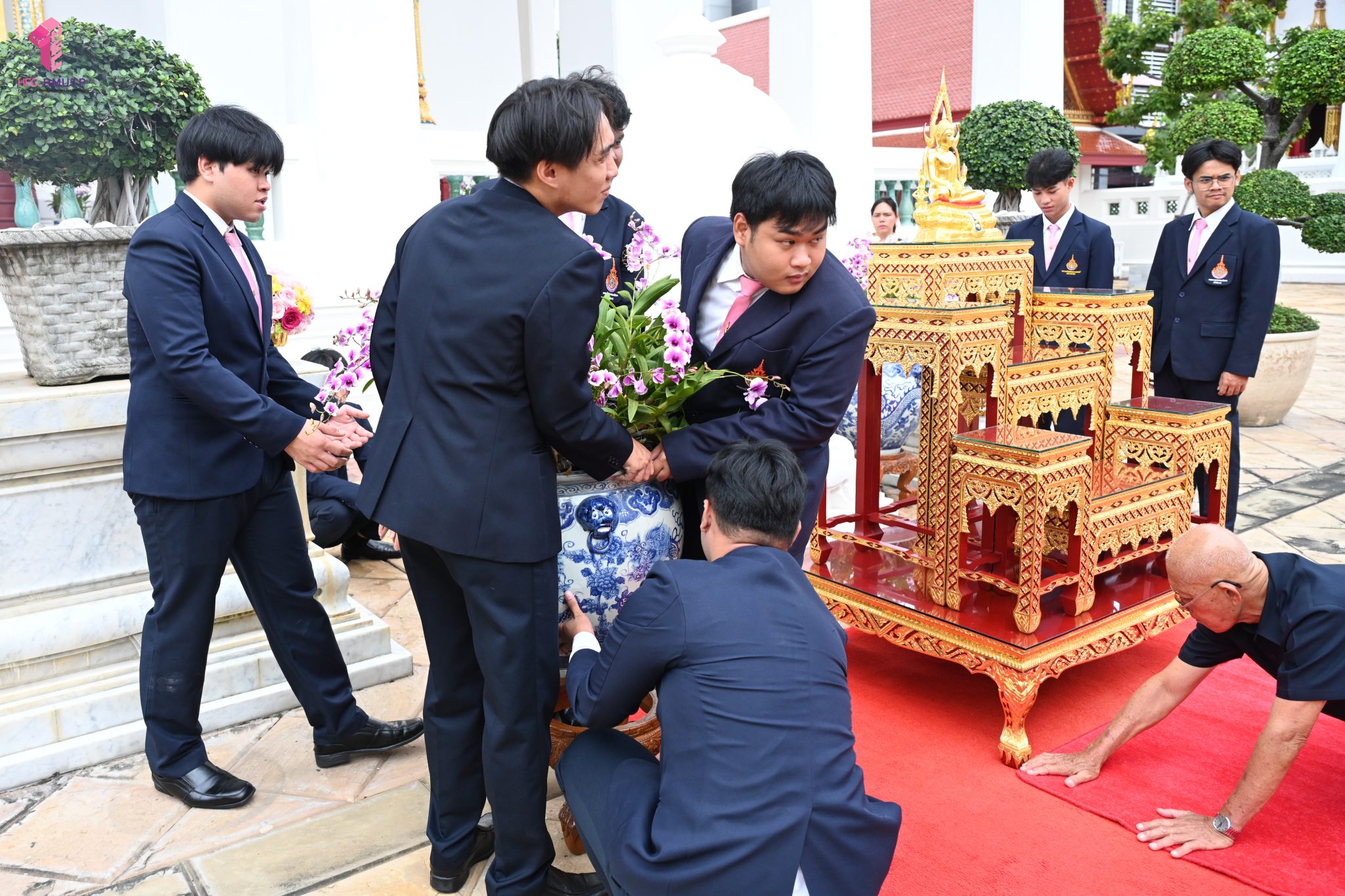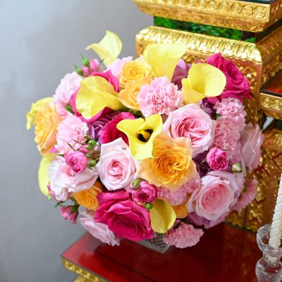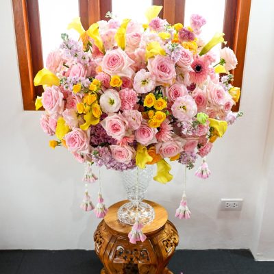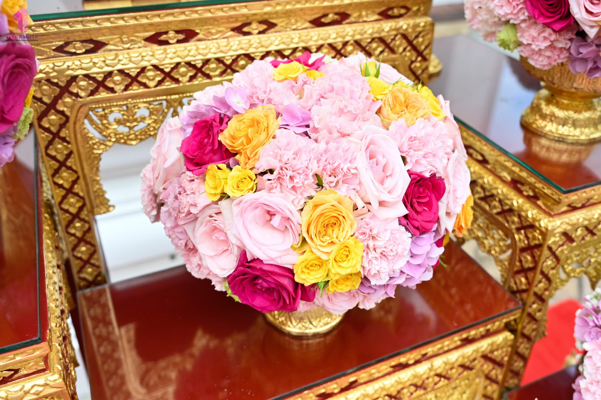 ผู้ช่วยศาสตราจารย์อนุสรณ์ ใจทน อาจารย์ประจำสาขาวิชาคหกรรมศาสตร์ประยุกต์ และอาจารย์ศุภสิทฐ์ วราศิลป์ หัวหน้างานศิลปวัฒนธรรม ฝ่ายกิจการนักศึกษา นำทีมนักศึกษาสโมสรนักศึกษาเข้าร่วมปฏิบัติงานในพิธีถวายเจริญพระพุทธมนต์เพื่อความเป็นสิริมงคล ในโอกาสที่ ดร.วรวิทย์ วีรบวรพงศ์ ดร.พัชรา วีรบวรพงศ์ พร้อมครอบครัว บริษัท สยามแก๊ส แอนด์ ปิโตรเคมีคัลส์ จำกัด (มหาชน) ถวายศาลารายพรหมมุทิตา เมื่อวันที่ 27 กันยายน 2568 ณ ศาลารายพรหมมุทิตา วัดเทวราชกุญชร วรวิหาร ทั้งนี้ คณาจารย์และนักศึกษาสาขาวิชาคหกรรมศาสตร์ประยุกต์ ดำเนินการจัดดอกไม้ตกแต่งสถานที่ภายในศาลารายพรหมมุทิตา เพื่อเพิ่มความงดงาม ความสมบูรณ์ และความศักดิ์สิทธิ์แก่พิธี