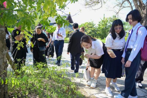 งานศิลปวัฒนธรรม ฝ่ายกิจการนักศึกษา คณะเทคโนโลยีคหกรรมศาสตร์ มหาวิทยาลัยเทคโนโลยีราชมงคลพระนคร จัดโครงการ “ตามรอยพระราชดำริเพื่ออนุรักษ์และพัฒนาผลิตภัณฑ์เพื่อใช้ประโยชน์จากพันธุกรรมพืช” พร้อมนำคณาจารย์และนักศึกษาเข้าศึกษาดูงาน ณ อุทยานธรรมชาติวิทยาสิรีรุกขชาติ มหาวิทยาลัยมหิดล เมื่อวันที่ 15 พฤศจิกายน 2568 ในการนี้ ผศ.ดร.เชาวิลิต อุปฐาก รองคณบดีฝ่ายกิจการนักศึกษา พร้อมคณาจารย์ ได้นำนักศึกษาศึกษาเรียนรู้เกี่ยวกับ สวนสมุนไพร ซึ่งเป็นแหล่งรวบรวมและอนุรักษ์สมุนไพรไทยมากกว่า 600 ชนิด เดิมก่อตั้งในชื่อ “โครงการปลูกสวนสมุนไพรคณะเภสัชศาสตร์” และได้รับการพัฒนาต่อยอดสู่การเป็นแหล่งเรียนรู้ด้าน การศึกษา วิจัย และการใช้ประโยชน์สมุนไพรอย่างเป็นระบบ กิจกรรมครั้งนี้มีวัตถุประสงค์เพื่อให้นักศึกษาได้รับองค์ความรู้เกี่ยวกับ คุณลักษณะสมุนไพรไทย การอนุรักษ์และการรวบรวมข้อมูลพันธุกรรมพืช รวมถึงการนำไปประยุกต์และแปรรูปเป็นผลิตภัณฑ์ที่สามารถ อุปโภค บริโภค และใช้ประโยชน์ได้อย่างปลอดภัย ตลอดจนส่งเสริมการอนุรักษ์และใช้ประโยชน์จากพันธุกรรมพืชตามแนวพระราชดำริอย่างยั่งยืน