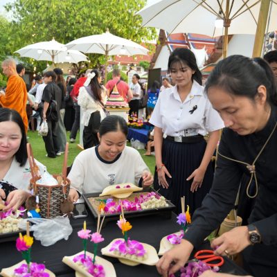 นายบวรศักดิ์ อุวรรณโณ รองนายกรัฐมนตรี เป็นประธานจัดงานจัดงานประเพณีลอยกระทง ประเพณีลอยกระทง พุทธศักราช 2568 “ลอยกระทง ไท ไทย คารวาลัย พระแม่ของแผ่นดิน” เพื่อน้อมรำลึกในพระมหากรุณาธิคุณและแสดงความอาลัยแด่สมเด็จพระนางเจ้าสิริกิติ์ พระบรมราชินีนาถ พระบรมราชชนนีพันปีหลวง พร้อมสืบสานมรดกภูมิปัญญาไทย “ประเพณีลอยกระทง” ให้คงอยู่และเป็นที่รู้จักในระดับนานาชาติโดยมีคณาจารย์สาขาวิชาคหกรรมศาสตร์ประยุกต์ ร่วมสาธิตและสอนทำกระทงจากวัสดุธรรมชาติ โดยไม่มีค่าใช้จ่ายเพื่อให้ประชาชนได้ร่วมกันสืบสานประเพณีอันดีงามของไทย ในการนี้ นางสาวซาบีดา ไทยเศรษฐ์ รัฐมนตรีว่าการกระทรวงวัฒนธรรม เข้าร่วมเยี่ยมชมการสาธิตและให้กำลังใจคณาจารย์และนักศึกษาที่สอนทำกระทง เมื่อวันที่ 5 พฤศจิกายน 2568 ณ วัดอรุณราชวราราม ราชวรวิหาร เขตบางกอกใหญ่