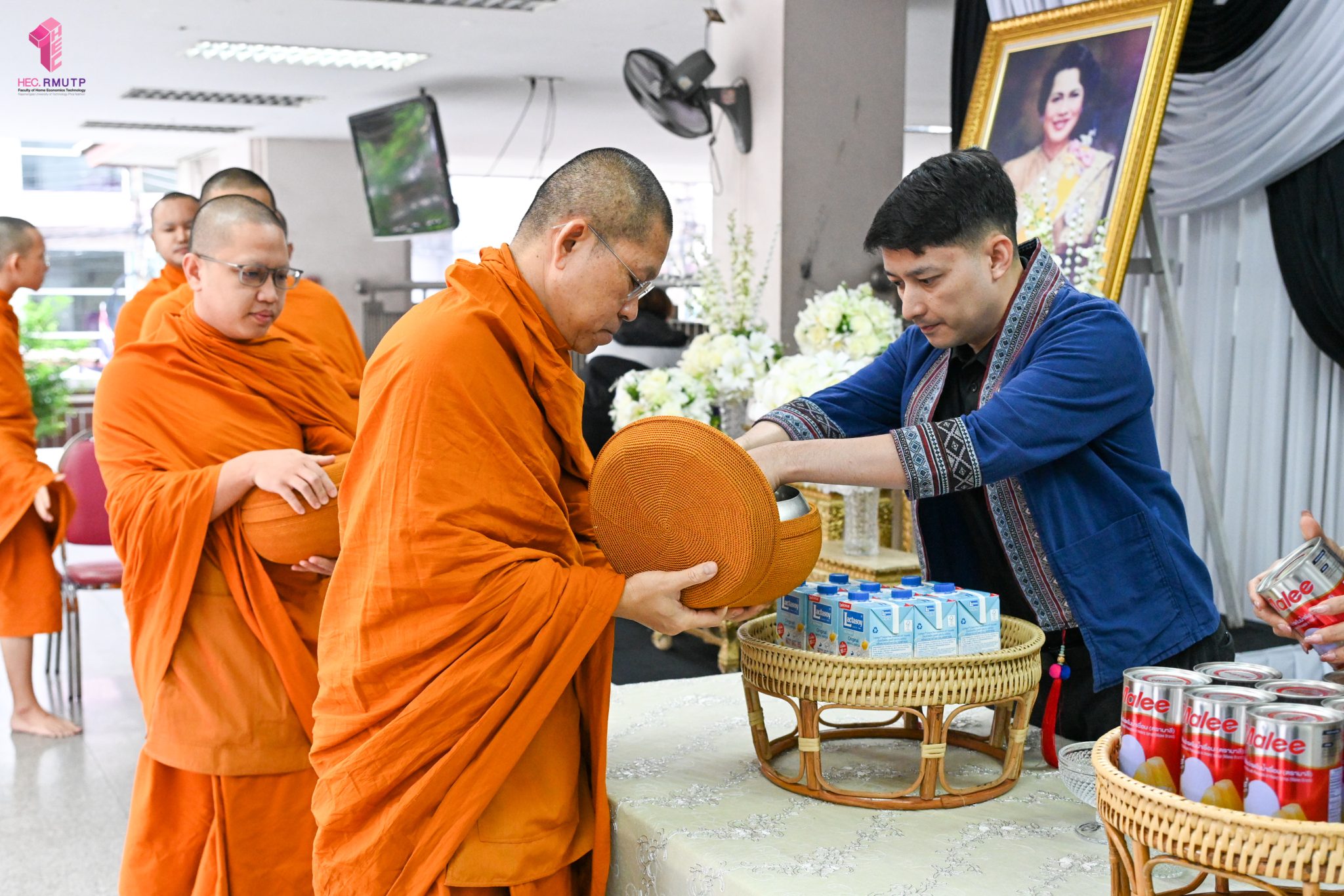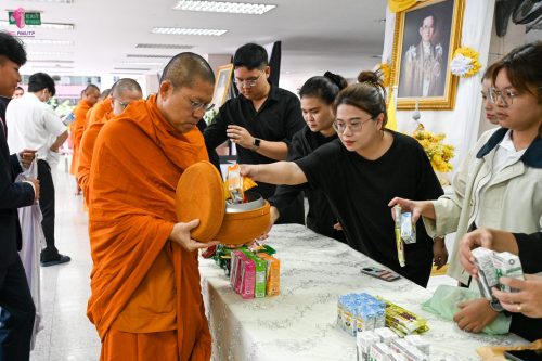 งานศิลปวัฒนธรรม ฝ่ายกิจการนักศึกษา คณะเทคโนโลยีคหกรรมศาสตร์ จัดกิจกรรม “โครงการโชติเวชศุกร์กุศล เส้นทางบุญ เสริมสร้างคุณธรรม จริยธรรม น้อมนำพระพุทธศาสนา” ครั้งที่ 2 ประจำภาคเรียนที่ 2 ปี 2568 เนื่องในโอกาสวันคล้ายวันพระบรมราชสมภพ พระบาทสมเด็จพระบรมชนกาธิเบศร มหาภูมิพลอดุลยเดชมหาราช บรมนาถบพิตร วันชาติไทย และวันพ่อแห่งชาติ 5 ธันวาคม เพื่อเป็นพระราชกุศล แสดงออกถึงความจงรักภักดีและสำนึกในพระมหากรุณาธิคุณอันหาที่สุดมิได้ กิจกรรมประกอบไปด้วย ถวายราชสักการะหน้าพระฉายาลักษณ์ และตักบาตรข้าวสารอาหารแห้ง โดยนิมนต์พระสงฆ์จากวัดเทวราชกุญชร วรวิหาร รับบิณฑบาต เมื่อวันที่ 12 ธันวาคม 2568 ณ ลานอเนกประสงค์ ชั้น 1 อาคารเรือนปัญญา คณะเทคโนโลยีคหกรรมศาสตร์