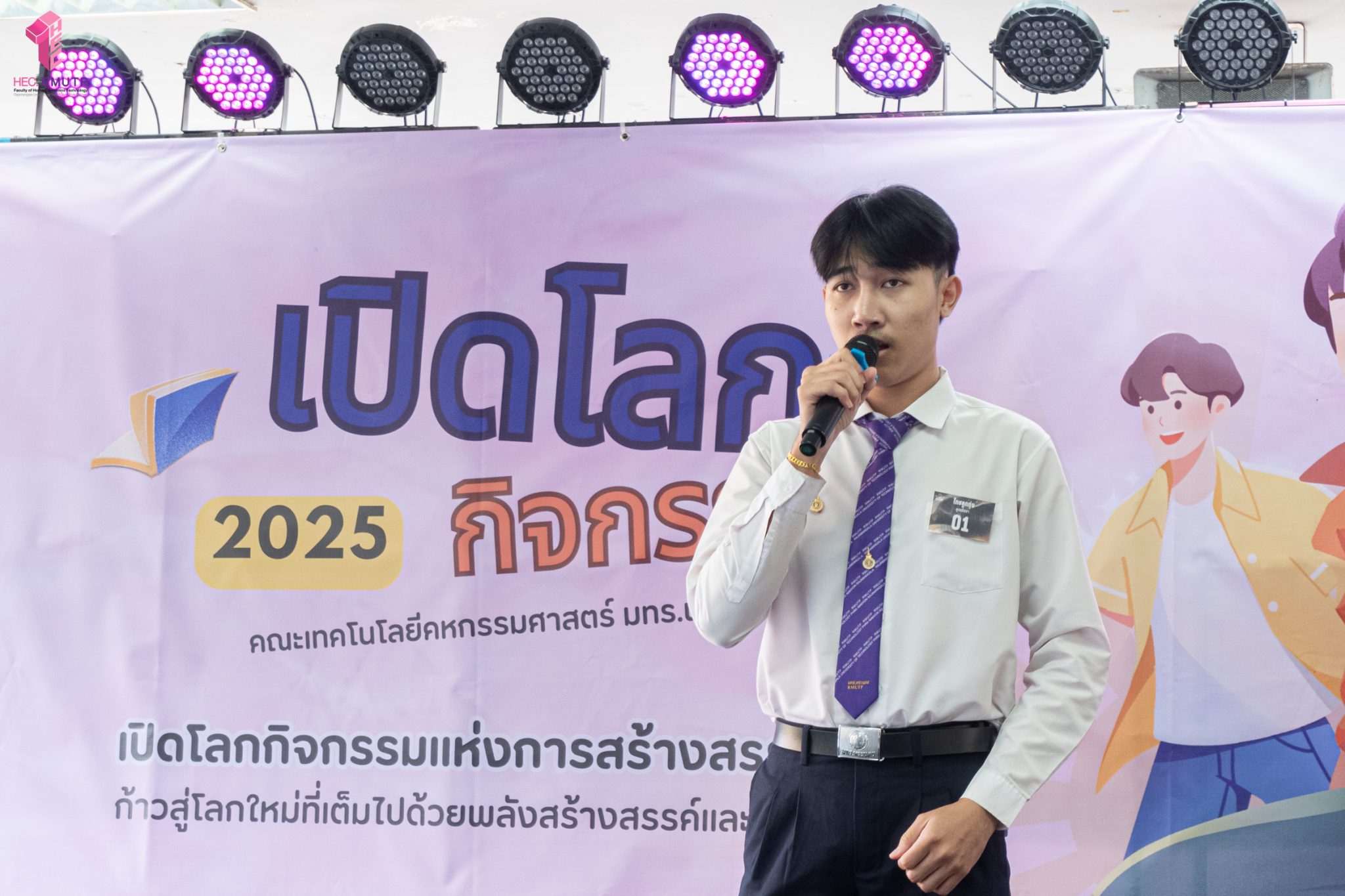 คณะเทคโนโลยีคหกรรมศาสตร์ มหาวิทยาลัยเทคโนโลยีราชมงคลพระนคร โดยฝ่ายกิจการนักศึกษา จัดเปิดโลกกิจกรรม ประจำปีการศึกษา 2568 เพื่อส่งเสริมศักยภาพนักศึกษาและการสร้างสรรค์ ประกอบด้วยนิทรรศการชุมนุม การออกร้านจำหน่ายสินค้าของนักศึกษา การประกวดร้องเพลงไทยลูกทุ่ง และเพลงไทยสากลหรือสากล ในระดับต่ำกว่าอุดมศึกษาและระดับอุดมศึกษา โดยได้รับเกียรติจากผู้ช่วยศาสตราจารย์ ดร.ธนภพ โสตรโยม คณบดีคณะเทคโนโลยีคหกรรมศาสตร์ พร้อมด้วยผู้บริหาร และคณาจารย์ บุคลากร นักศึกษา เข้าร่วมพิธีเปิด เมื่อวันที่ 19 ธันวาคม 2568 ณ คณะเทคโนโลยีคหกรรมศาสตร์ มหาวิทยาลัยเทคโนโลยีราชมงคลพระนคร