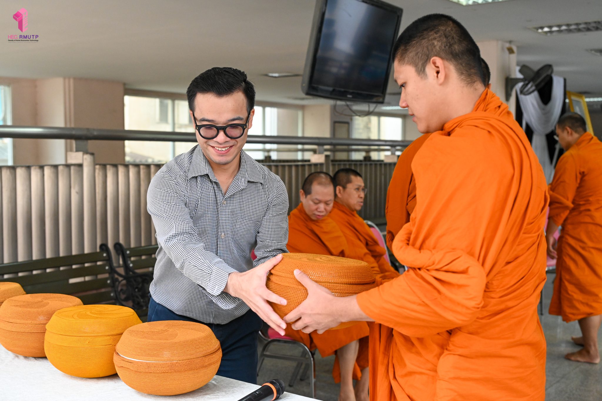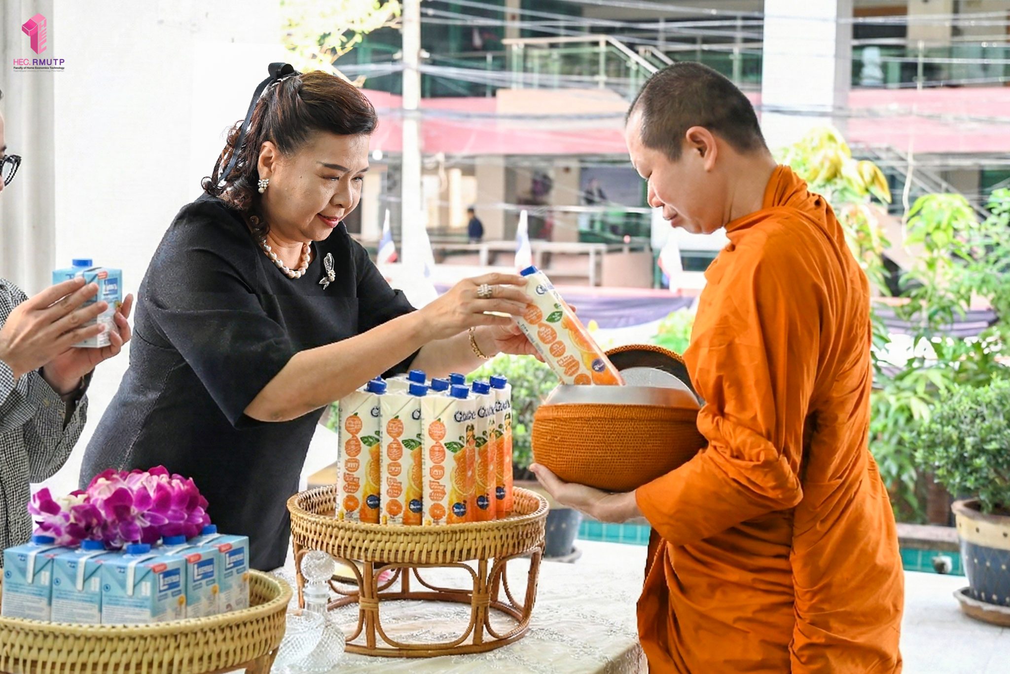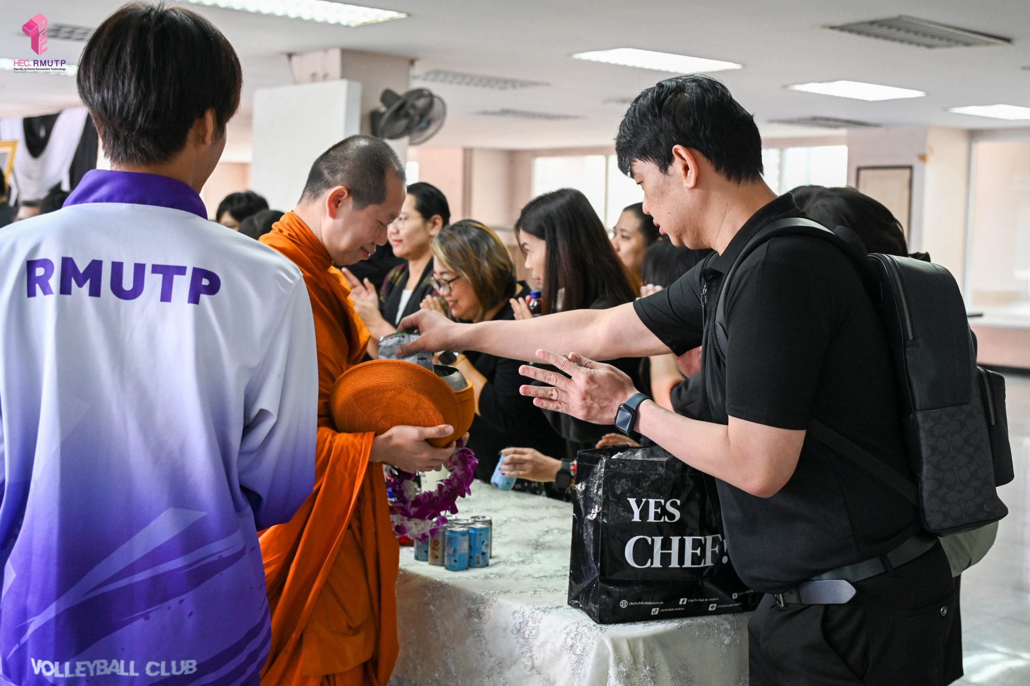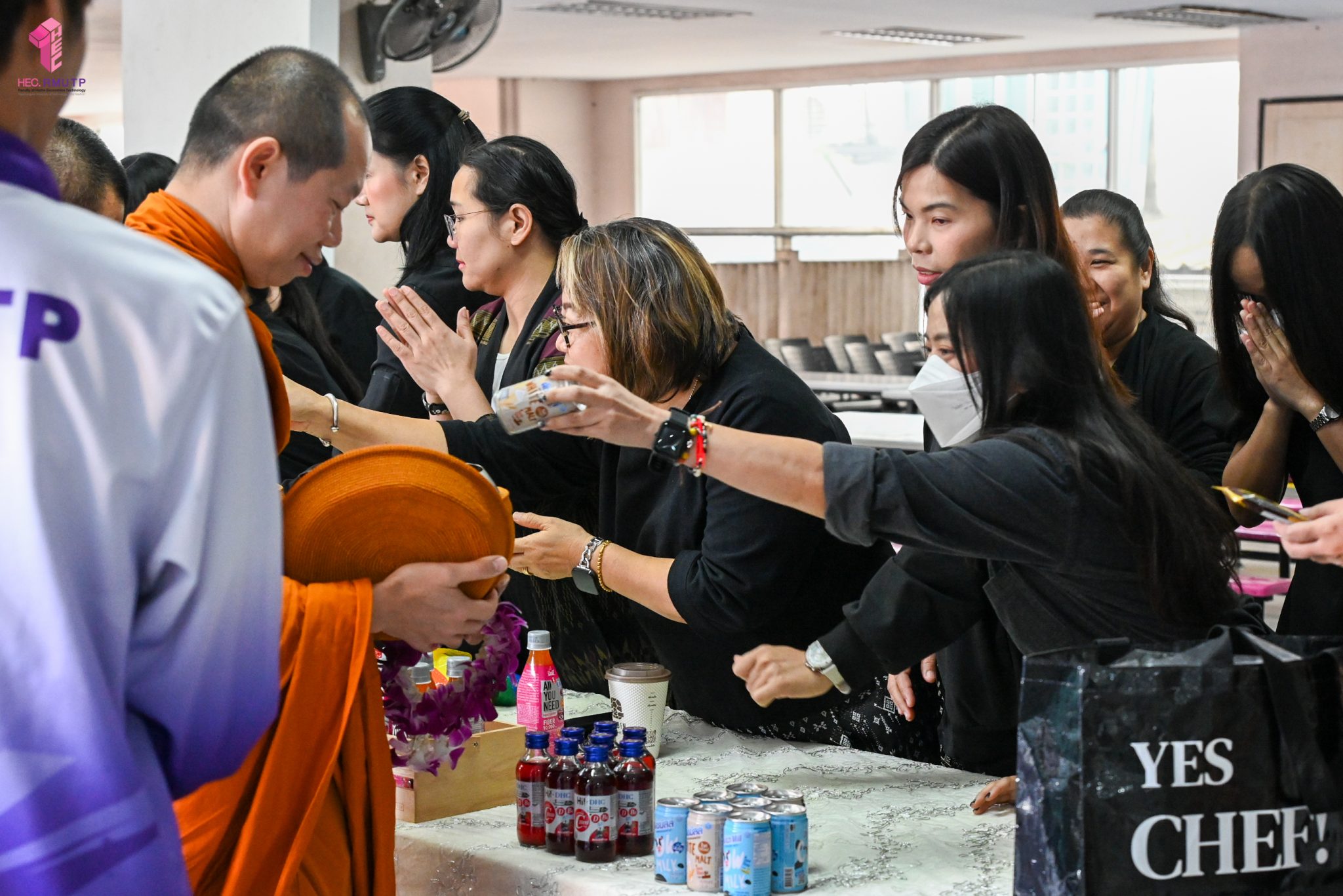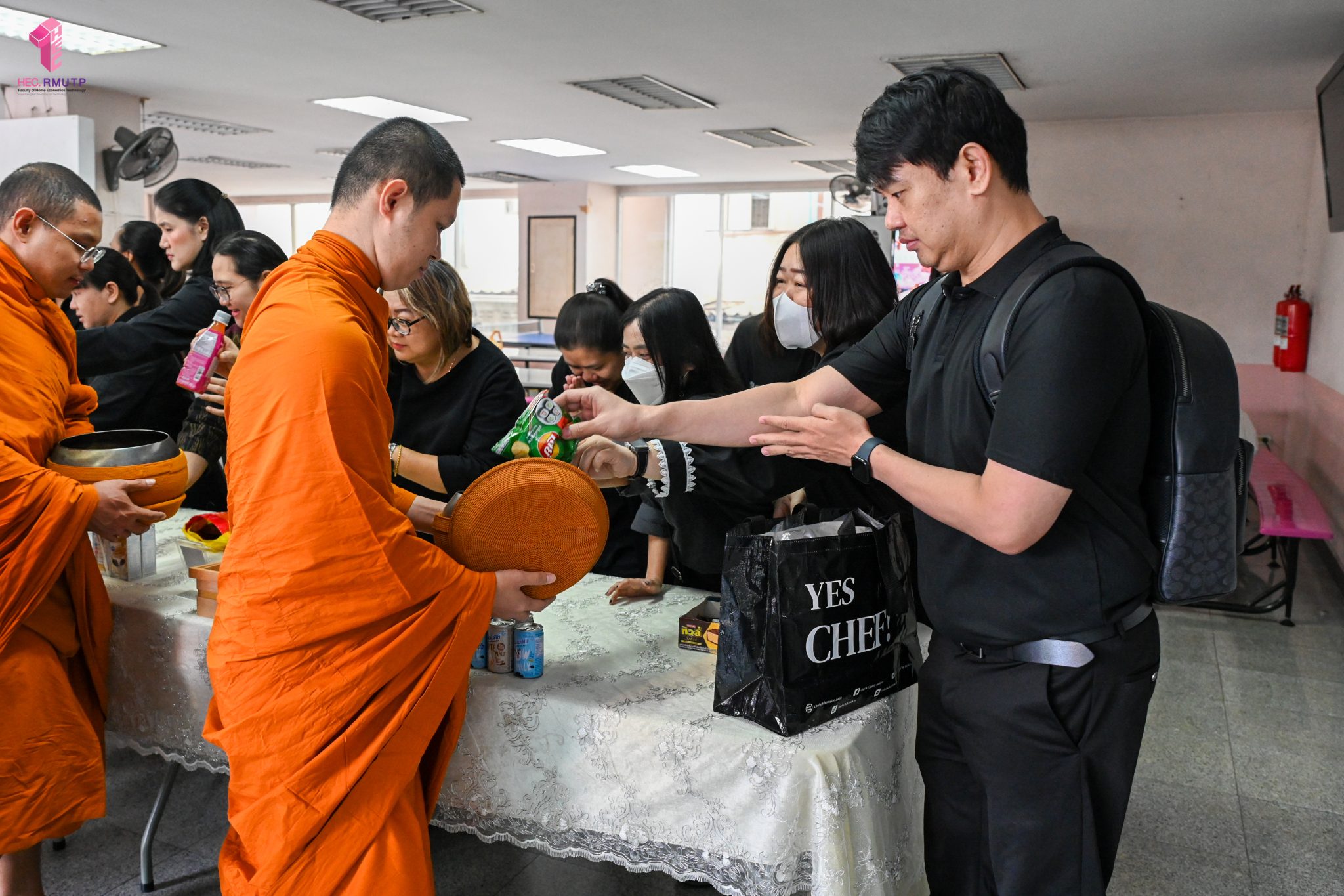 งานศิลปวัฒนธรรม ฝ่ายกิจการนักศึกษา คณะเทคโนโลยีคหกรรมศาสตร์ จัดกิจกรรม “โครงการโชติเวชศุกร์กุศล เส้นทางบุญ เสริมสร้างคุณธรรม จริยธรรม น้อมนำพระพุทธศาสนา” ครั้งที่ 1 ประจำภาคเรียนที่ 2 ปี 2568 เพื่อเป็นพระราชกุศล แด่สมเด็จพระนางเจ้าสิริกิติ์ พระบรมราชินีนาถ พระบรมราชชนนีพันปีหลวง เพื่อแสดงออกถึงความจงรักภักดีและสำนึกในพระมหากรุณาธิคุณอันหาที่สุดมิได้ กิจกรรมประกอบไปด้วย ถวายราชสักการะหน้าพระฉายาลักษณ์ และตักบาตรข้าวสารอาหารแห้ง โดยนิมนต์พระสงฆ์จากวัดเทวราชกุญชร วรวิหาร รับบิณฑบาต เมื่อวันที่ 28 พฤศจิกายน 2568 ณ ลานอเนกประสงค์ ชั้น 1 อาคารเรือนปัญญา คณะเทคโนโลยีคหกรรมศาสตร์ ในการนี้ อาจารย์ปิยะธิดา สีหะวัฒนกุล ที่ปรึกษาคณบดี พร้อมด้วย ผศ.ดร.เชาวลิต อุปฐาก รองคณบดีฝ่ายกิจการนักศึกษา ผู้บริหาร คณาจารย์ บุคลากร และนักศึกษาคณะเทคโนโลยีคหกรรมศาสตร์ เข้าร่วมกิจกรรม