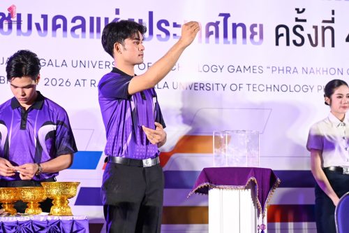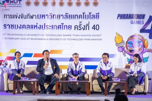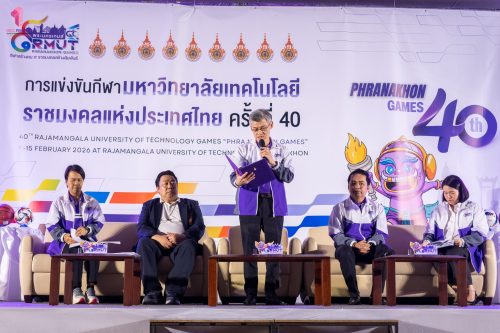 มหาวิทยาลัยเทคโนโลยีราชมงคลพระนคร ได้รับเกียรติให้เป็นเจ้าภาพดำเนินการจัดการแข่งขันกีฬามหาวิทยาลัยเทคโนโลยีราชมงคลแห่งประเทศไทย ครั้งที่ 40 “พระนครเกมส์” ระหว่างวันที่ 9-15 กุมภาพันธ์ 2569 ณ สนามกีฬามหาวิทยาลัยเทคโนโลยีราชมงคลพระนคร และสนามกีฬาภายนอกมหาวิทยาลัย ในการนี้ ผศ.ดร.ธนภพ โสตรโยม คณบดีคณะเทคโนโลยีคหกรรมศาสตร์ มอบมหายให้ ผศ.ดร.เชาวลิต อุปฐาก รองคณบดีฝ่ายกิจการนักศึกษา และหัวหน้างานกีฬา ร่วมงานแถลงข่าวการแข่งขันกีฬามหาวิทยาลัยเทคโนโลยีราชมงคลแห่งประเทศไทย ครั้งที่ 40 “พระนครเกมส์”เมื่อวันที่ 7 มกราคม 2569 ณ ห้องประชุมมงคลอาภา ชั้น 3 คณะบริหารธุรกิจ