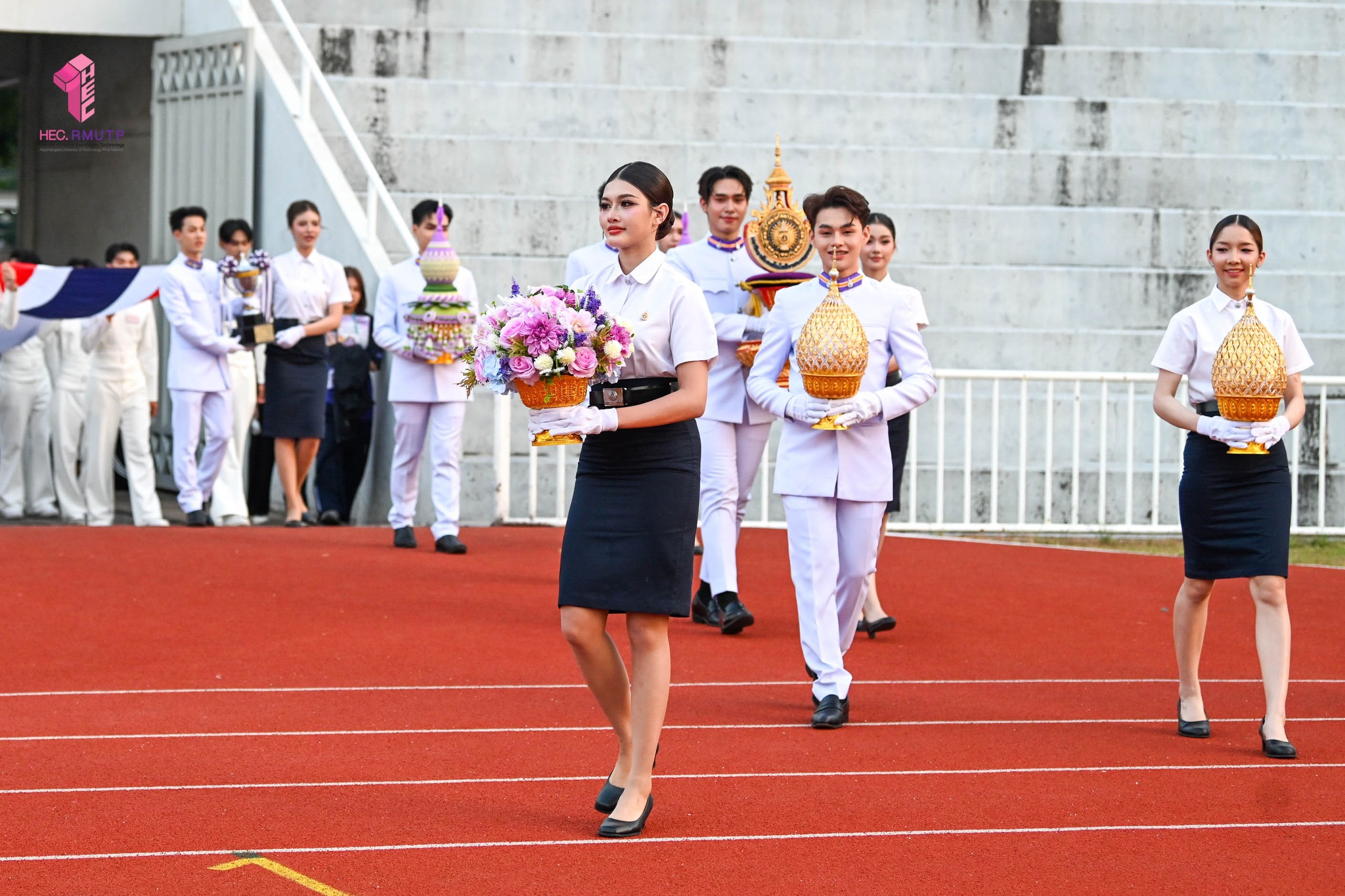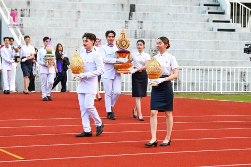 ในการนี้ ผู้ช่วยศาสตราจารย์ ดร.ธนภพ โสตรโยม คณบดีคณะเทคโนโลยีคหกรรมศาสตร์ พร้อมด้วย คุณวรรณา มณีนุตร์ นายกสมาคมศิษย์เก่าโชติเวช ผู้ช่วยศาสตราจารย์ ดร.เชาวลิต อุปฐาก รองคณบดีฝ่ายกิจการนักศึกษา คณาจารย์ บุคลากร และนักศึกษาเข้าร่วมพิธี เมื่อวันที่ 10 กุมภาพันธ์ 2569 ณ สนามกีฬาจุฬาลงกรณ์มหาวิทยาลัย