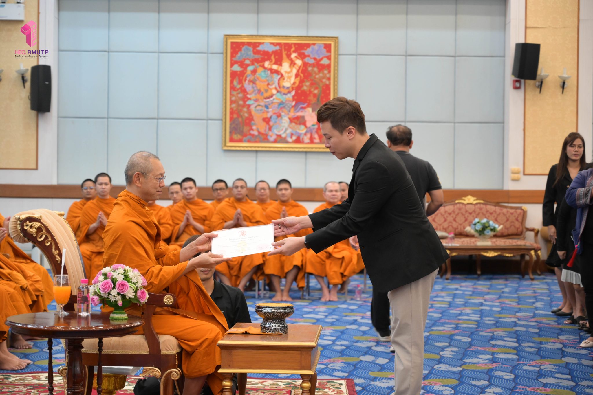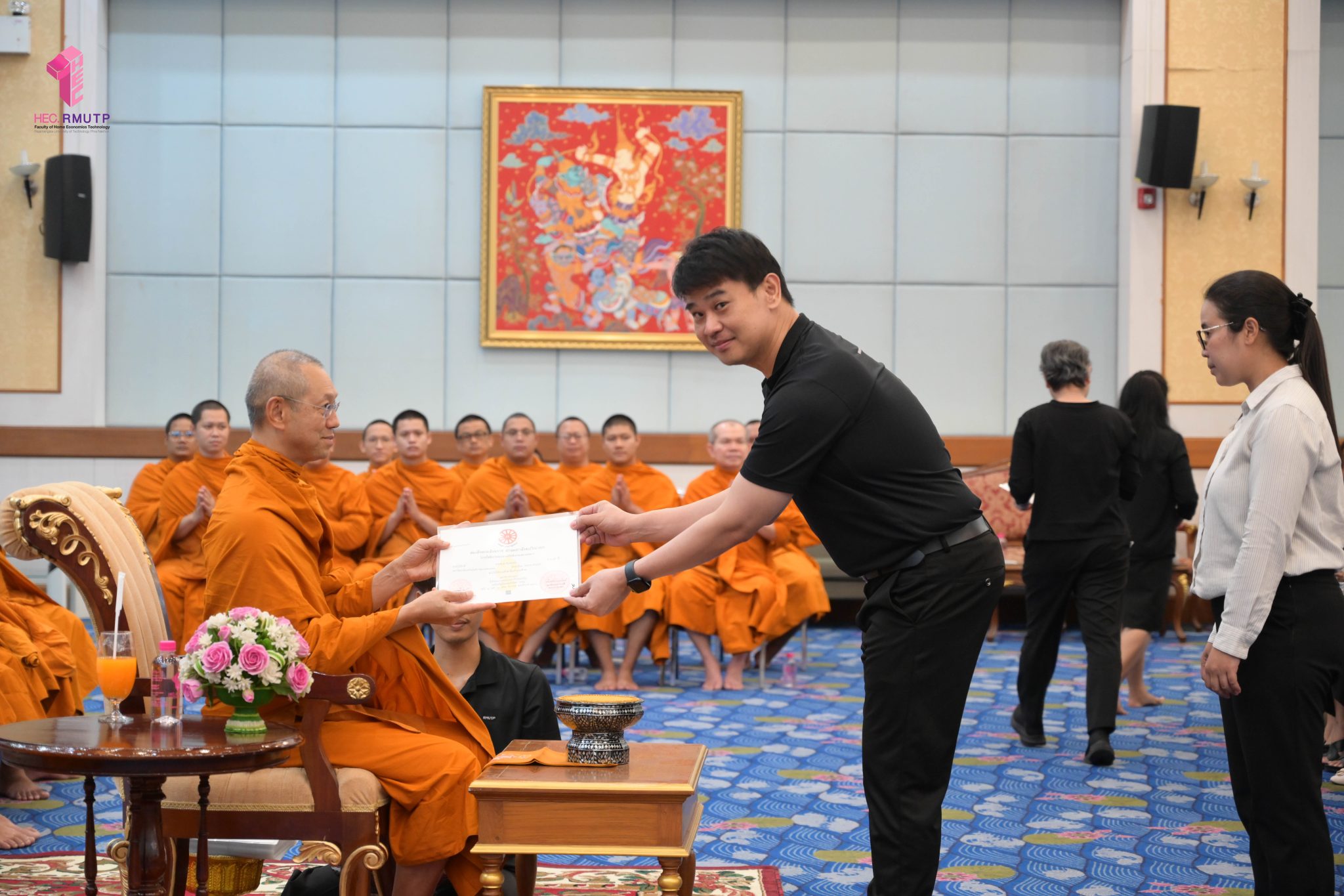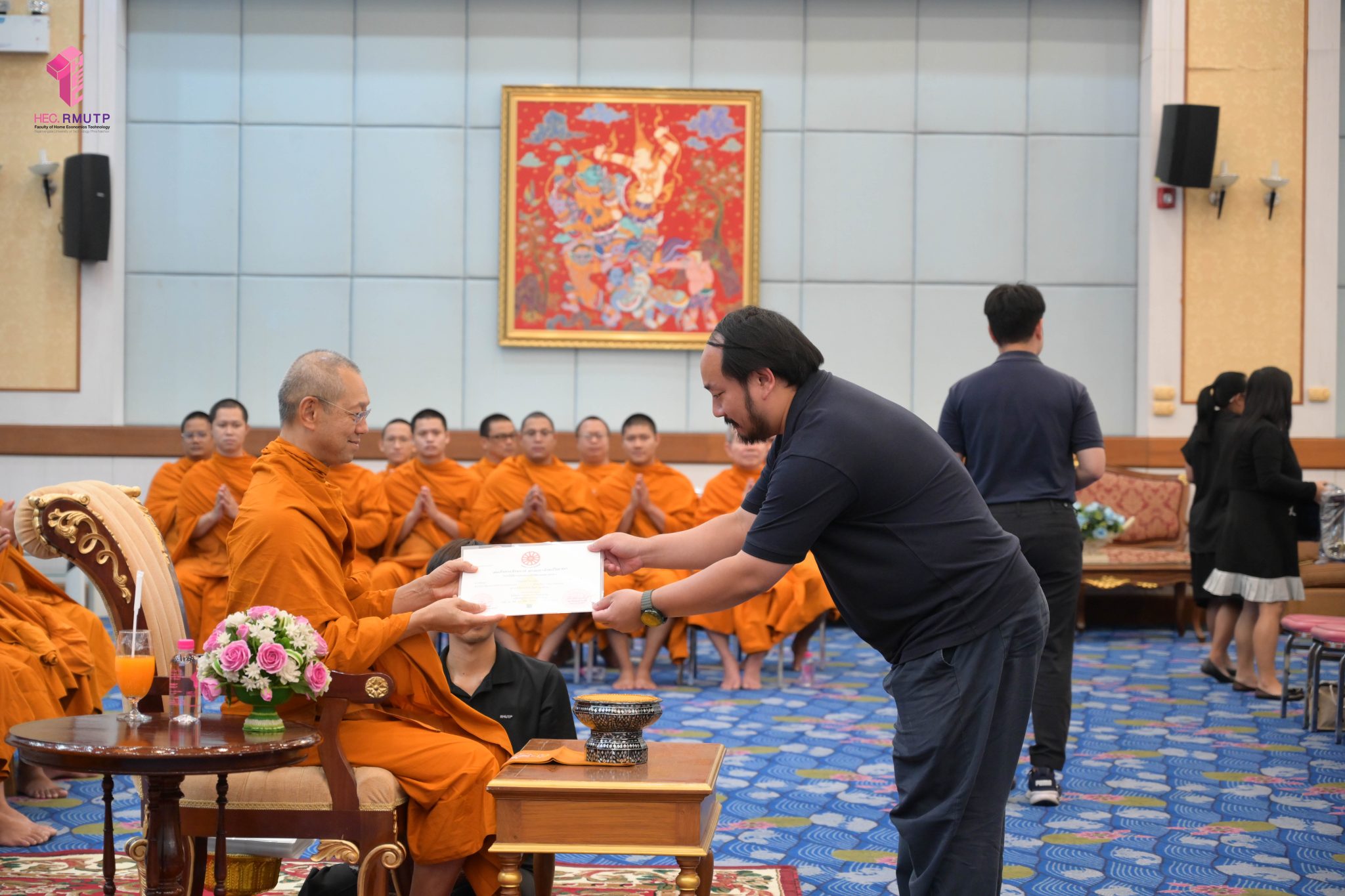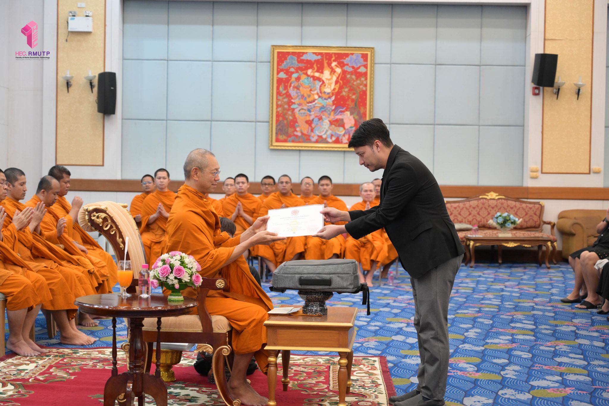 พระพรหมวชิราทร เจ้าอาวาสวัดเทวราชกุญชร เจ้าคณะภาค ๑๓ และเจ้าสำนักเรียน แสดงมุทิตาจิต เจริญชัยมงคลคาถา และเป็นประธานมอบประกาศนียบัตรธรรมศึกษาชั้นตรี ระดับอุดมศึกษา ประจำปีการศึกษา ๒๕๖๘ พร้อมกระเป๋าที่ระลึก แก่ผู้บริหาร คณาจารย์ และนักศึกษาคณะเทคโนโลยีคหกรรมศาสตร์ มหาวิทยาลัยเทคโนโลยีราชมงคลพระนคร