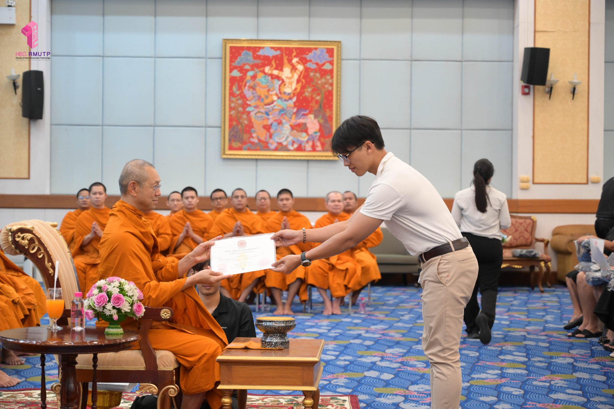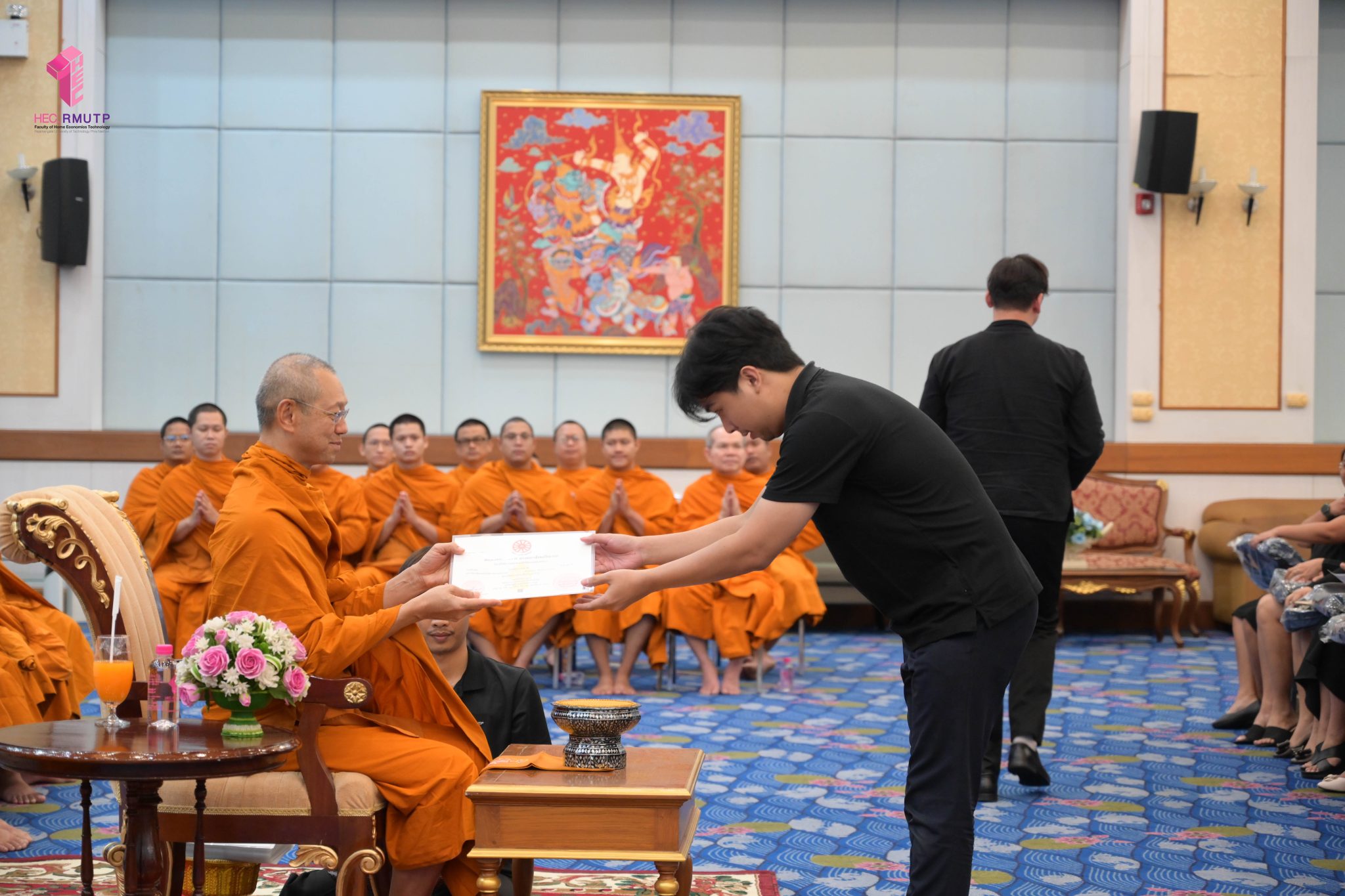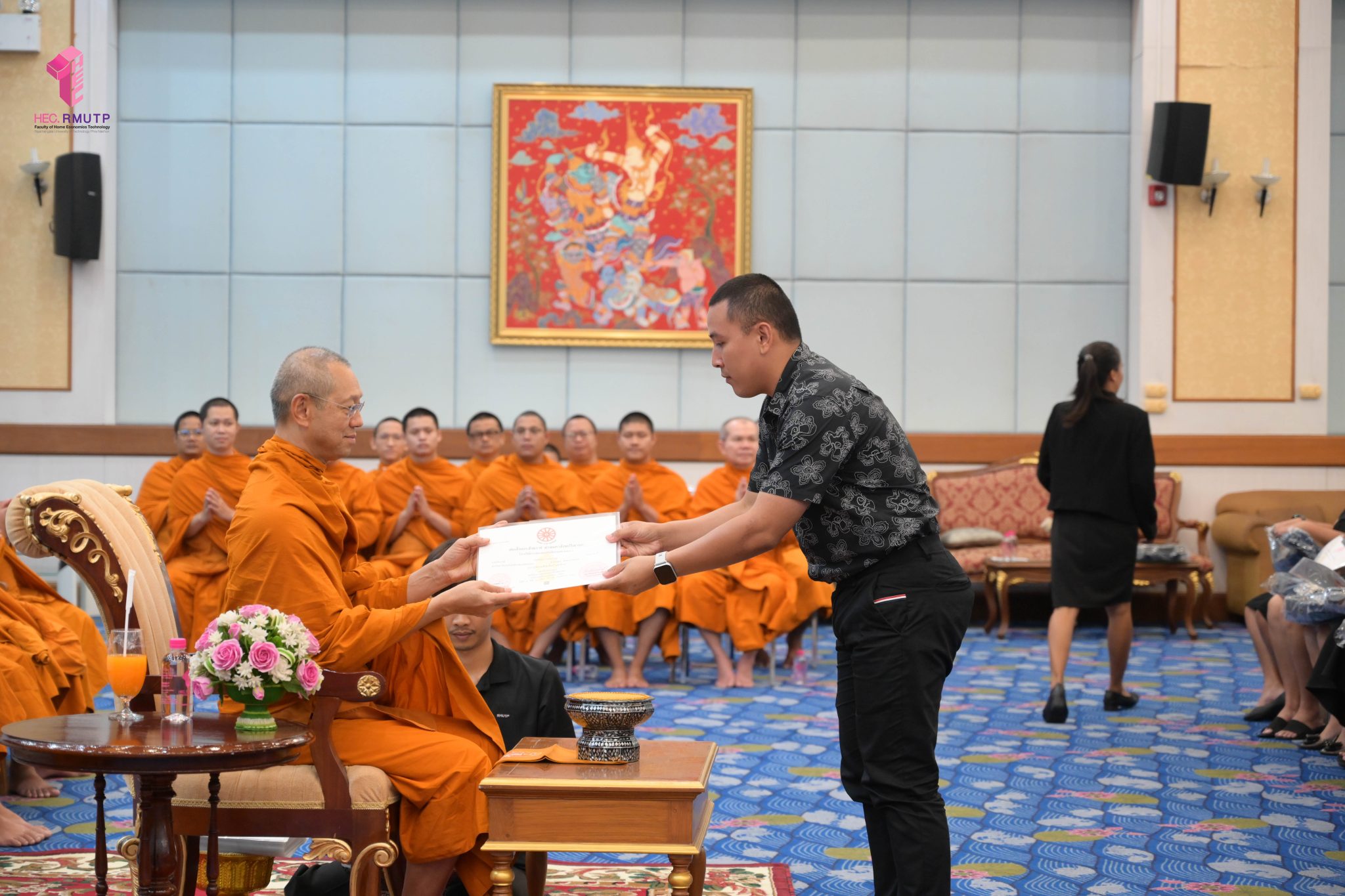 พระพรหมวชิราทร เจ้าอาวาสวัดเทวราชกุญชร เจ้าคณะภาค ๑๓ และเจ้าสำนักเรียน แสดงมุทิตาจิต เจริญชัยมงคลคาถา และเป็นประธานมอบประกาศนียบัตรธรรมศึกษาชั้นตรี ระดับอุดมศึกษา ประจำปีการศึกษา ๒๕๖๘ พร้อมกระเป๋าที่ระลึก แก่ผู้บริหาร คณาจารย์ และนักศึกษาคณะเทคโนโลยีคหกรรมศาสตร์ มหาวิทยาลัยเทคโนโลยีราชมงคลพระนคร