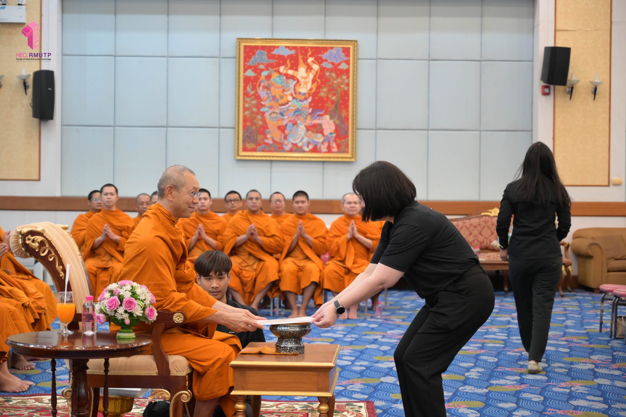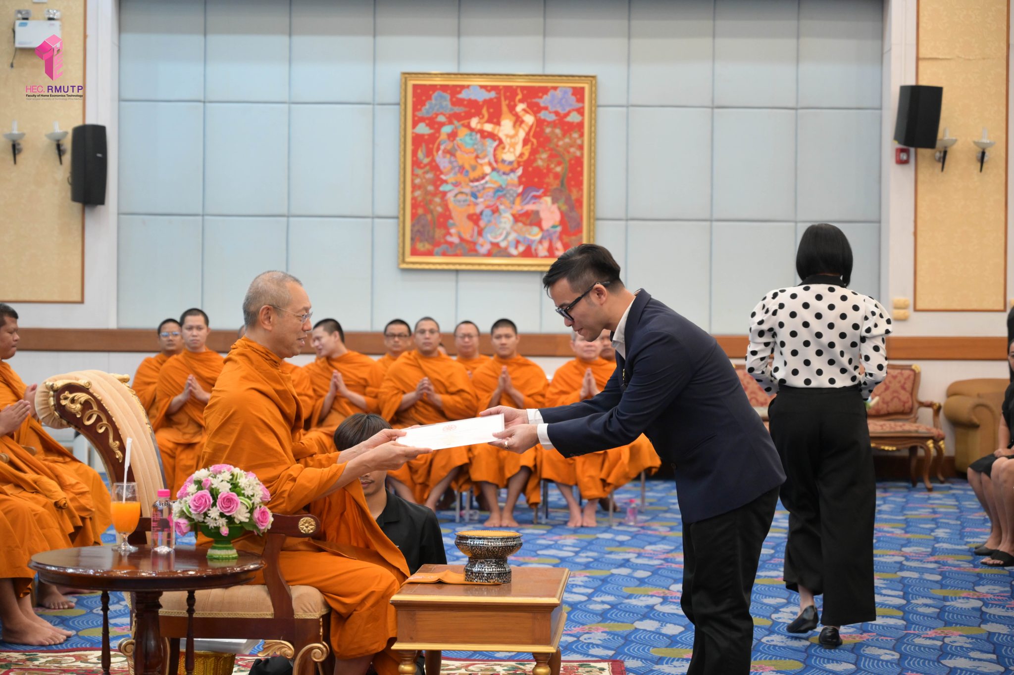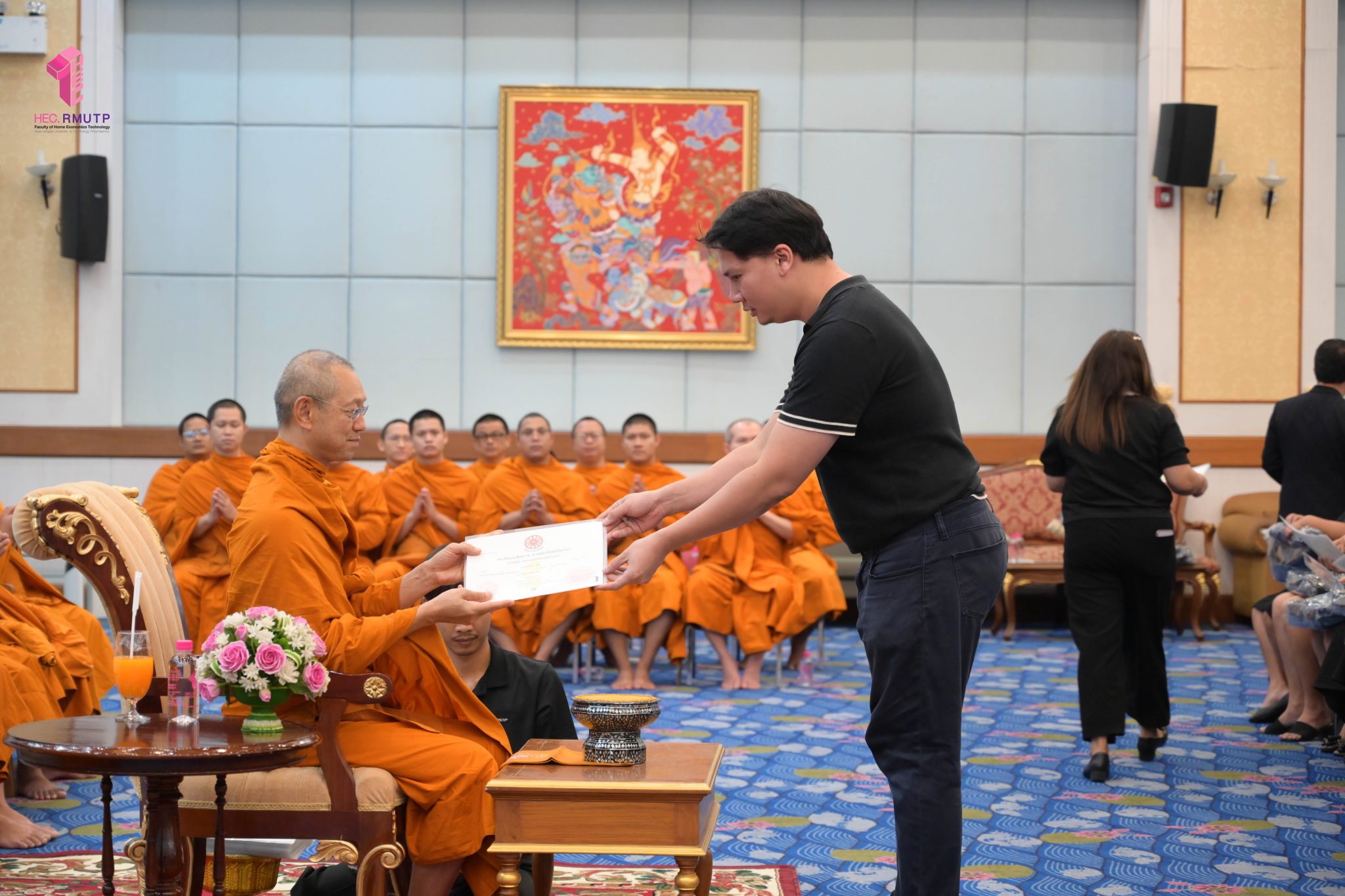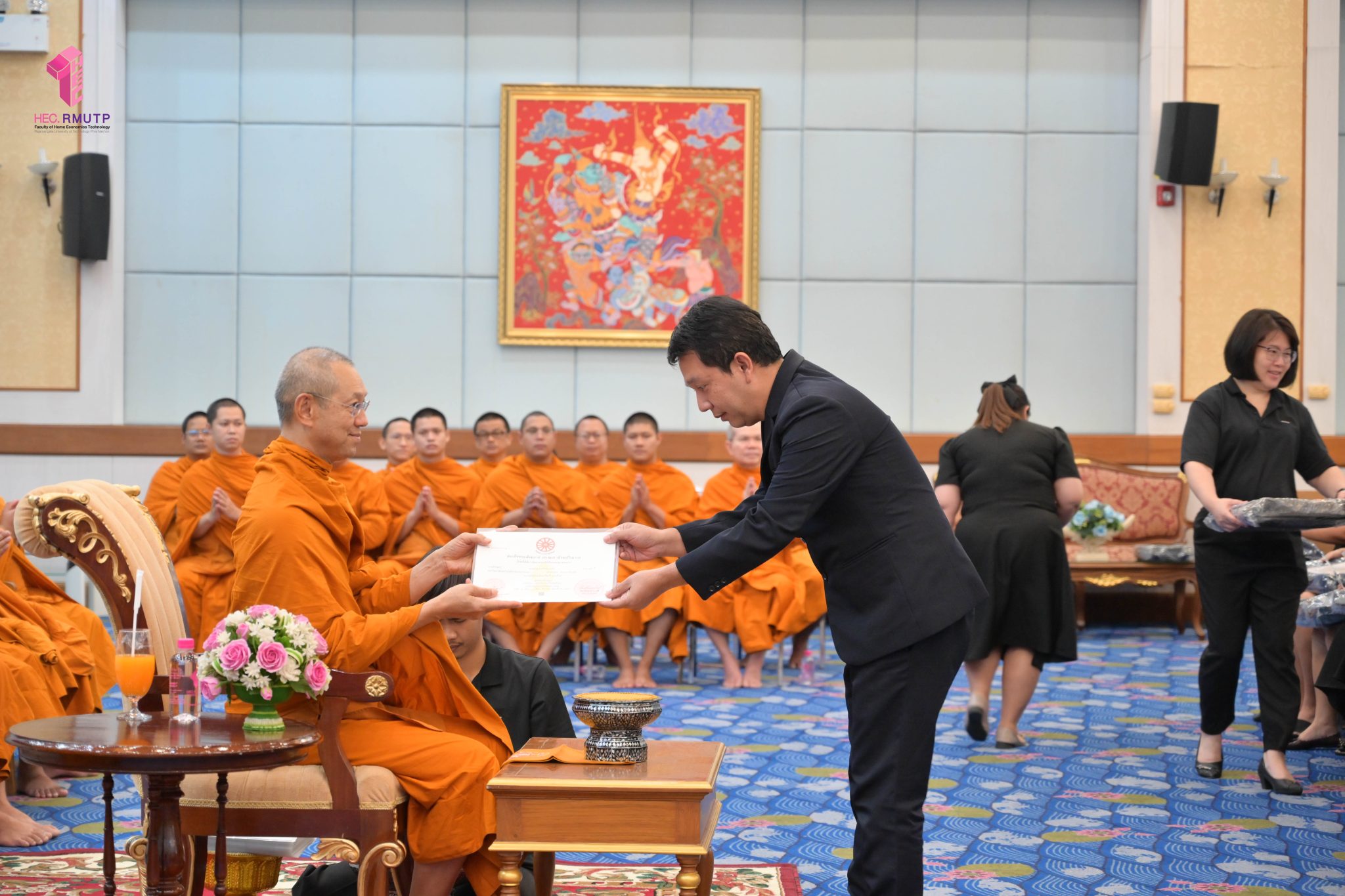 พระพรหมวชิราทร เจ้าอาวาสวัดเทวราชกุญชร เจ้าคณะภาค ๑๓ และเจ้าสำนักเรียน แสดงมุทิตาจิต เจริญชัยมงคลคาถา และเป็นประธานมอบประกาศนียบัตรธรรมศึกษาชั้นตรี ระดับอุดมศึกษา ประจำปีการศึกษา ๒๕๖๘ พร้อมกระเป๋าที่ระลึก แก่ผู้บริหาร คณาจารย์ และนักศึกษาคณะเทคโนโลยีคหกรรมศาสตร์ มหาวิทยาลัยเทคโนโลยีราชมงคลพระนคร