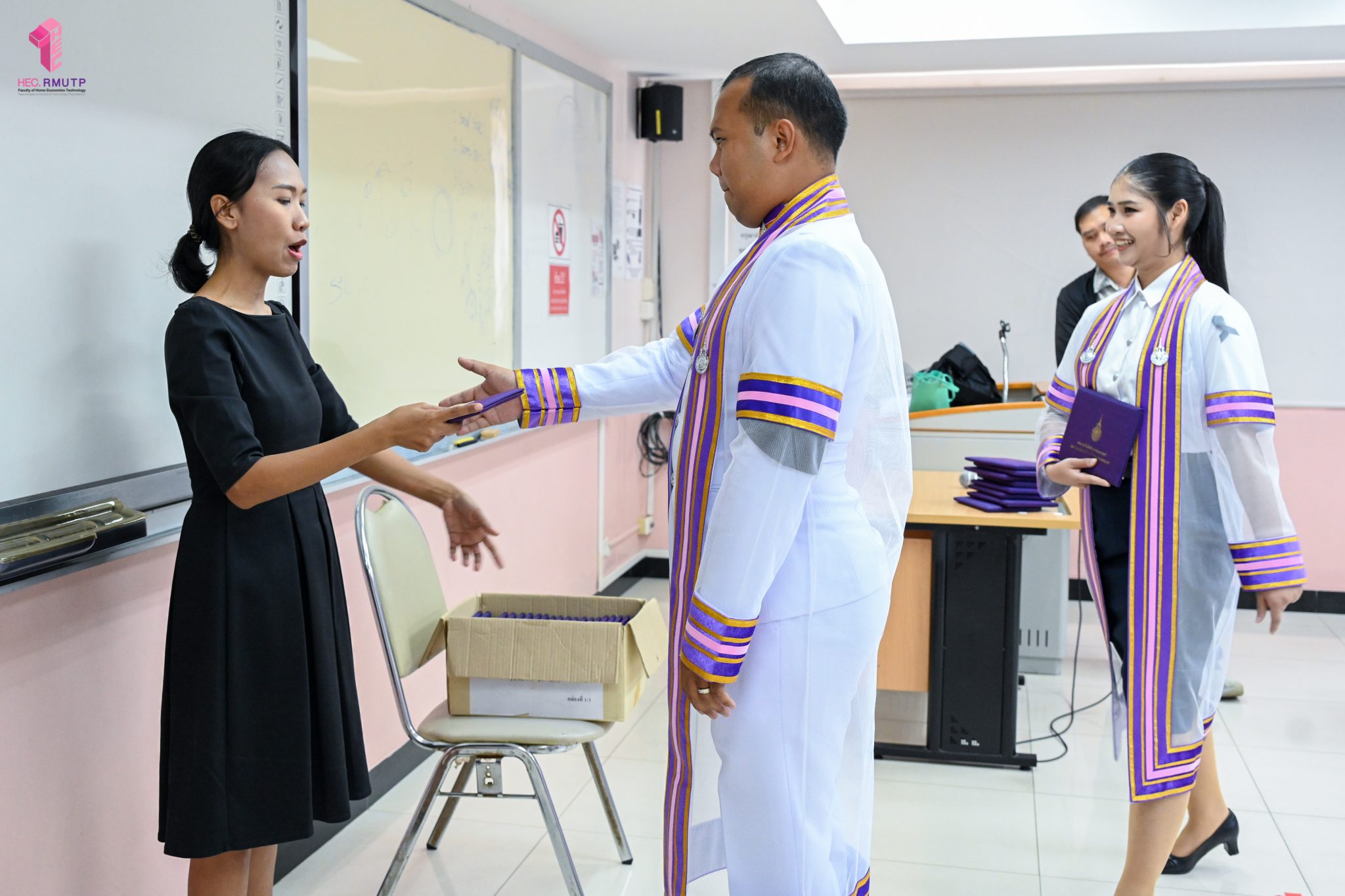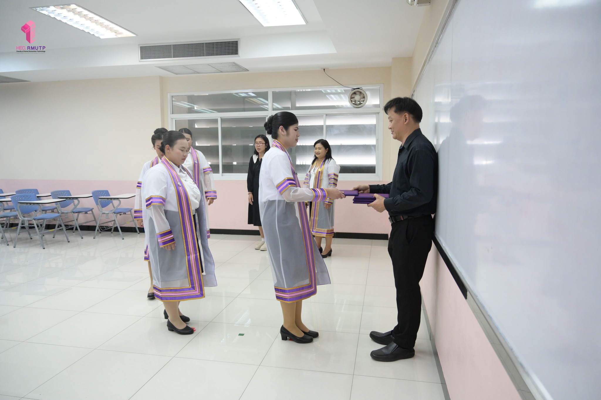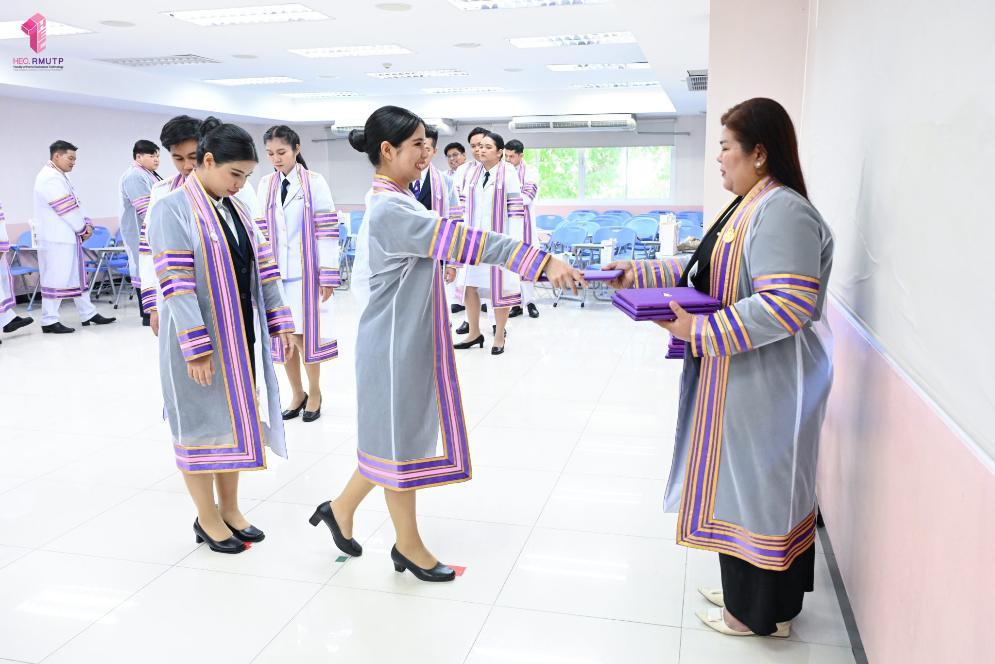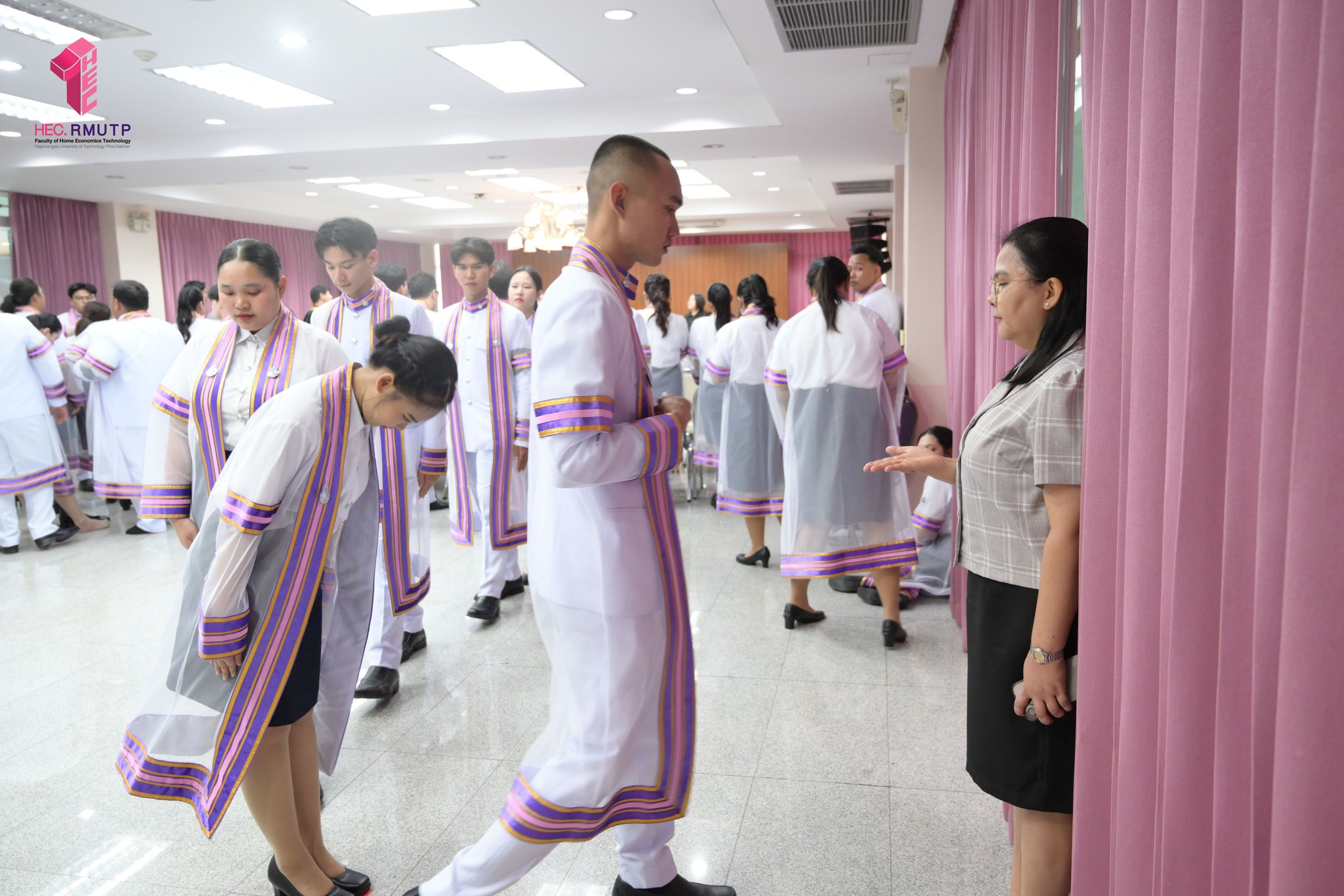 ภาพบรรยากาศการฝึกซ้อมพิธีมอบปริญญาบัตร ครั้งที่ 39 (แยกตามสาขา)ประจำปีการศึกษา 2567 คณะเทคโนโลยี คหกรรมศาสตร์ (โชติเวช) มหาวิทยาลัยเทคโนโลยีราชมงคลพระนคร เมื่อวันที่ 10 มีนาคม 2569 ณ คณะเทคโนโลยีคหกรรมศาสตร์
