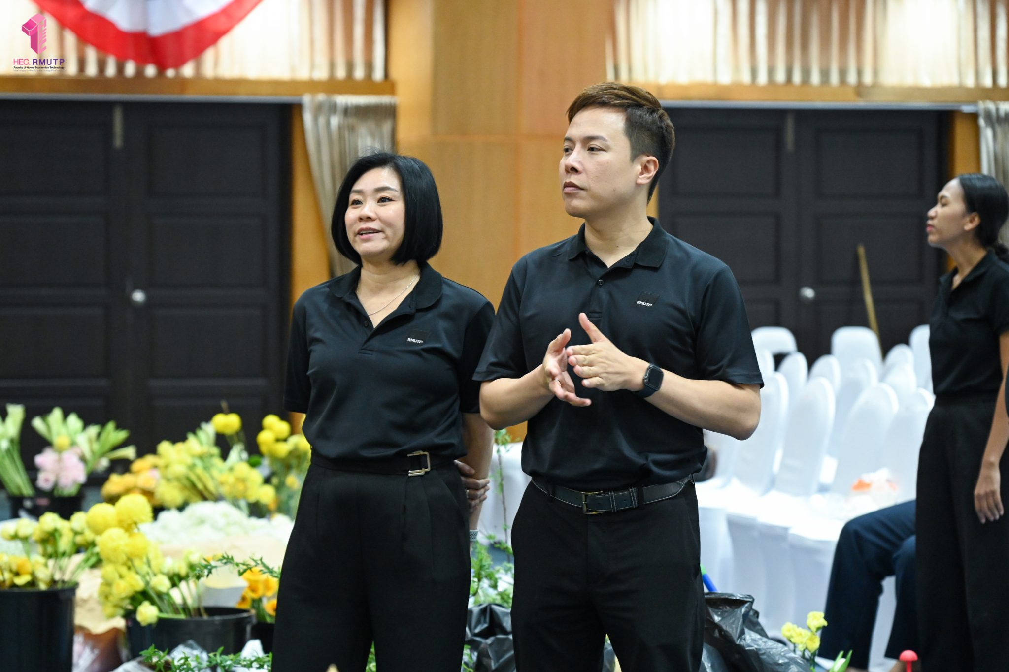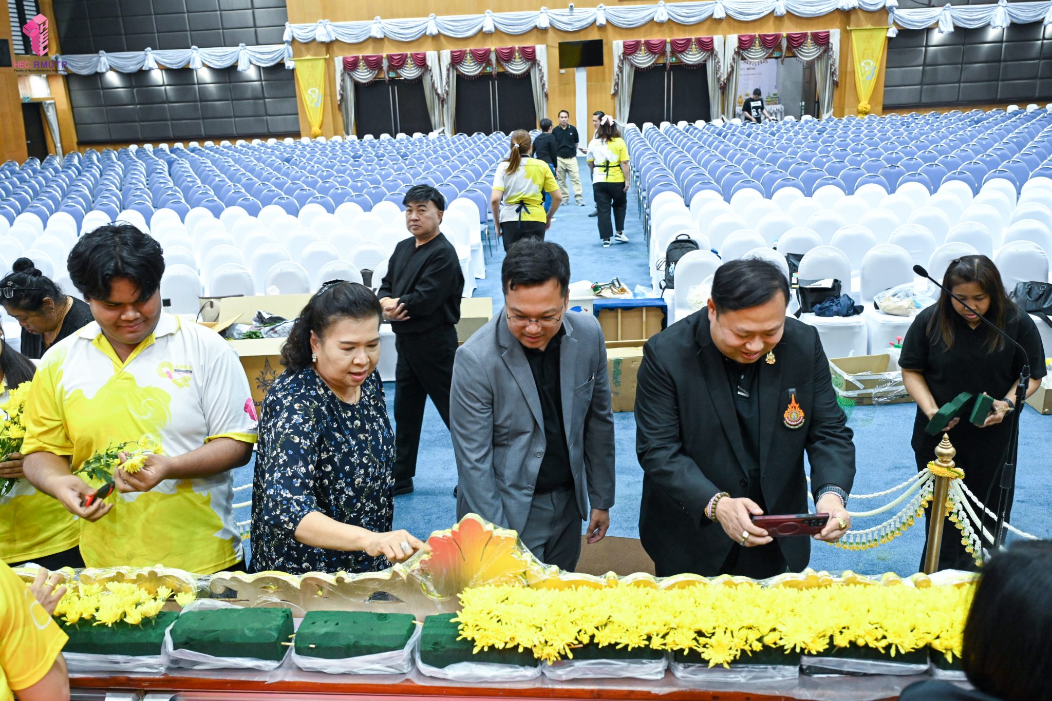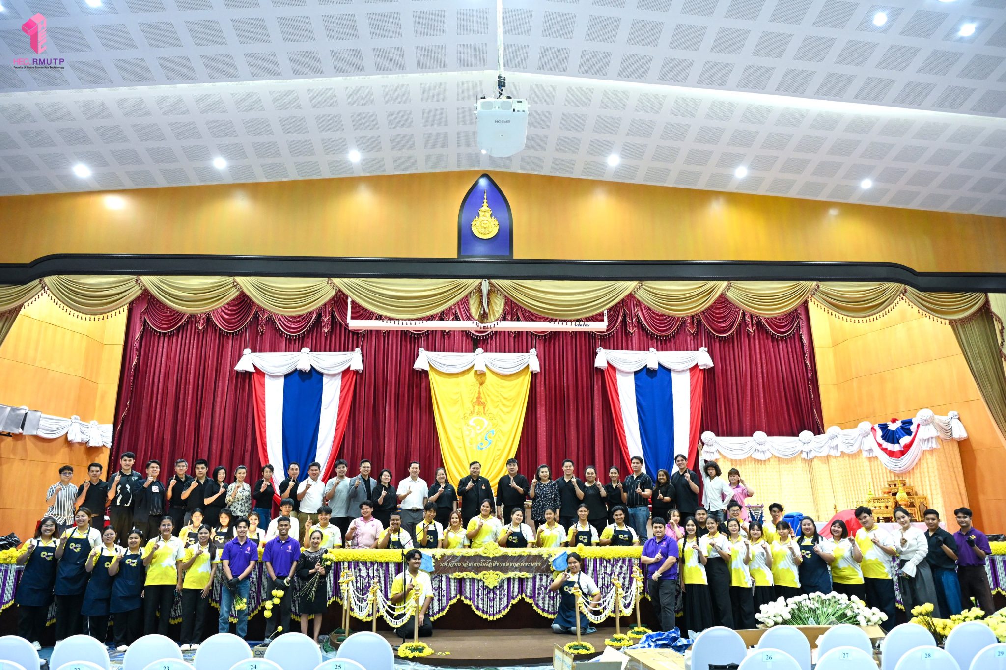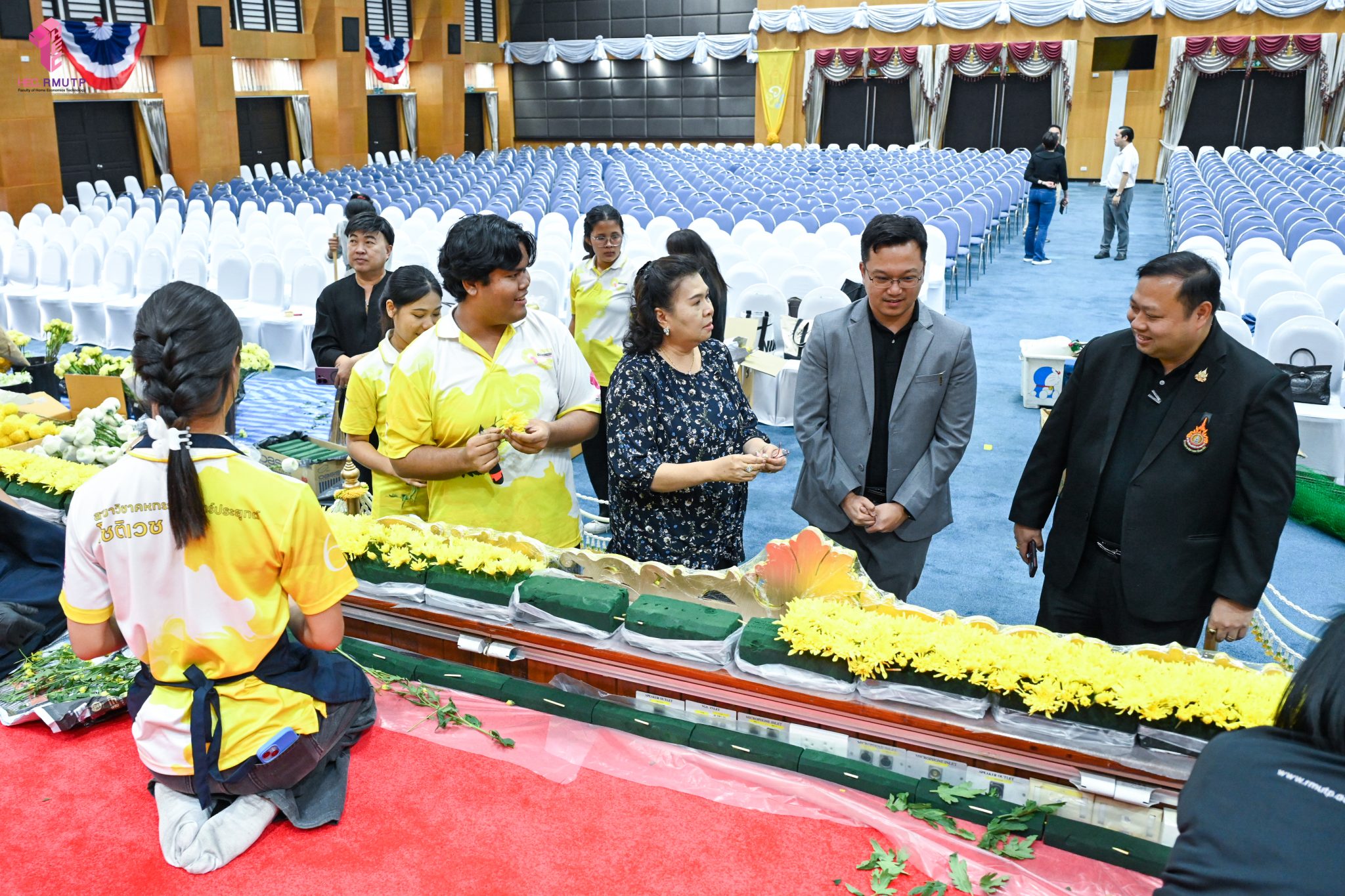 พิธีพระราชทานปริญญาบัตร มหาวิทยาลัยเทคโนโลยีราชมงคลพระนคร ครั้งที่ 39 ประจำปีการศึกษา 2567 กำหนดจัดขึ้นในวันที่ 13 มีนาคม 2569 ณ หอประชุมเฟืองเหนือ มหาวิทยาลัยเทคโนโลยีราชมงคลพระนคร ศูนย์พระนครเหนือ ในการนี้ คณะเทคโนโลยีคหกรรมศาสตร์ มหาวิทยาลัยเทคโนโลยีราชมงคลพระนคร ได้รับมอบหมายให้ดำเนินการจัดดอกไม้ตกแต่งเวทีพิธีพระราชทานปริญญาบัตร โดยมีผู้ช่วยศาสตราจารย์ ดร. ธนภพ โสตรโยม คณบดีคณะเทคโนโลยีคหกรรมศาสตร์ เป็นประธานดำเนินงาน และมอบหมายให้อาจารย์ปิยะธิดา สีหะวัฒนกุล ที่ปรึกษาคณบดี อาจารย์ ดร.สุชีรา ผ่องใส หัวหน้าสาขาวิชาคหกรรมศาสตร์ประยุกต์ และ ผศ.อนุสรณ์ ใจทน ออกแบบแนวคิดการตกแต่งเวที ร่วมกับคณาจารย์สาขาวิชาคหกรรมศาสตร์ประยุกต์ โดยได้รับความร่วมมือจากนักศึกษาสาขาวิชาคหกรรมศาสตร์ประยุกต์ พร้อมด้วยคณาจารย์สาขาวิชาออกแบบแฟชั่นและการจัดการสินค้า ร่วมดำเนินการตกแต่งดอกไม้ เมื่อวันที่ 12 มีนาคม 2569 ณ หอประชุมเฟืองเหนือ มหาวิทยาลัยเทคโนโลยีราชมงคลพระนคร ศูนย์พระนครเหนือ