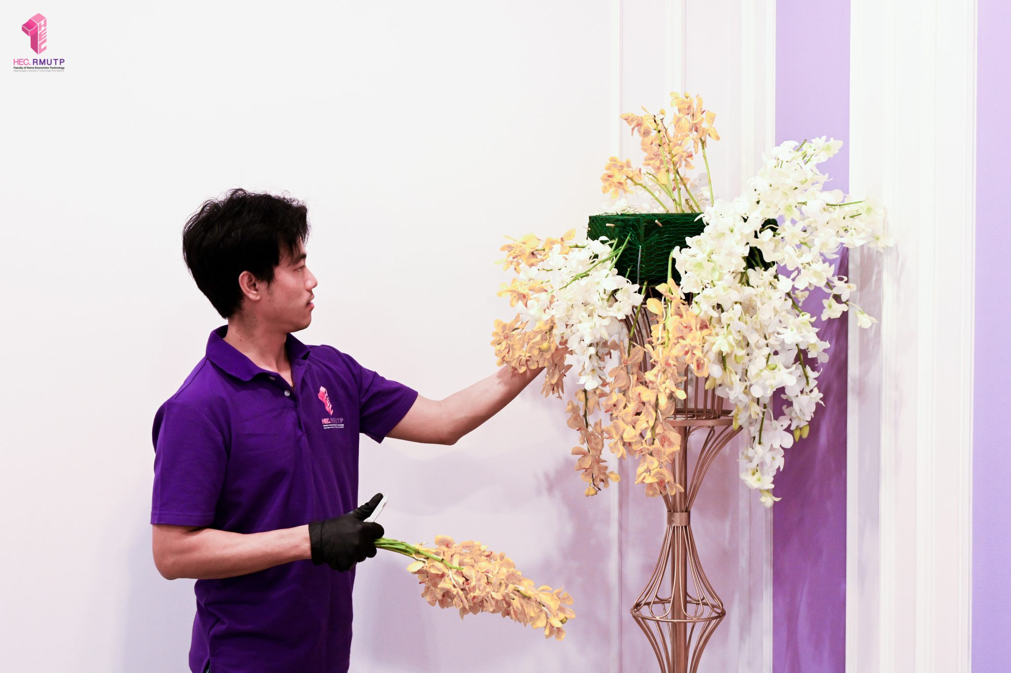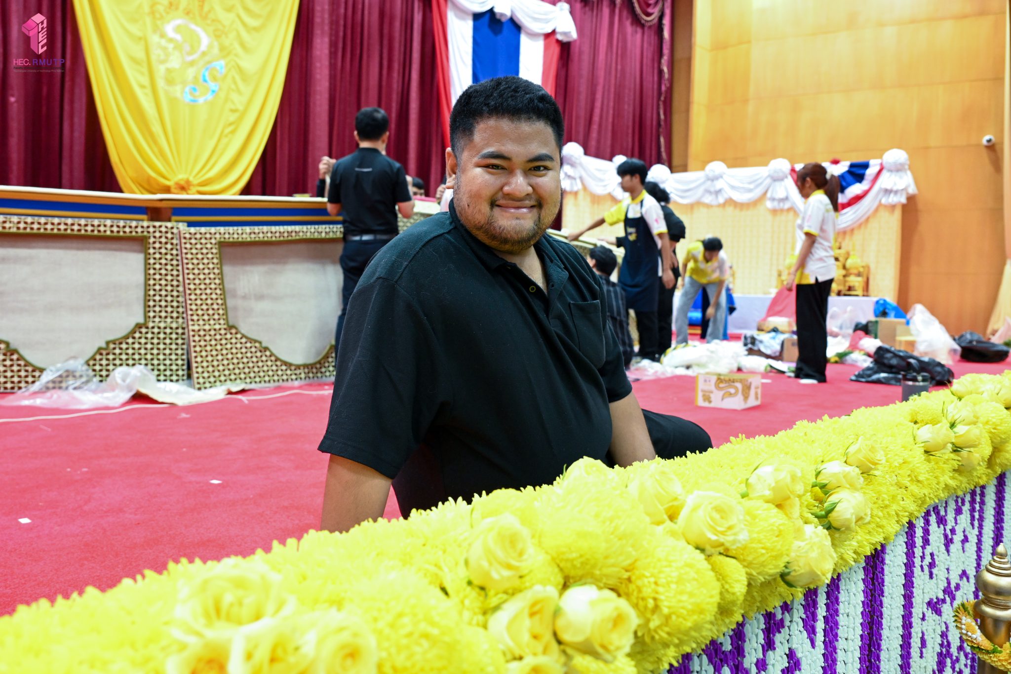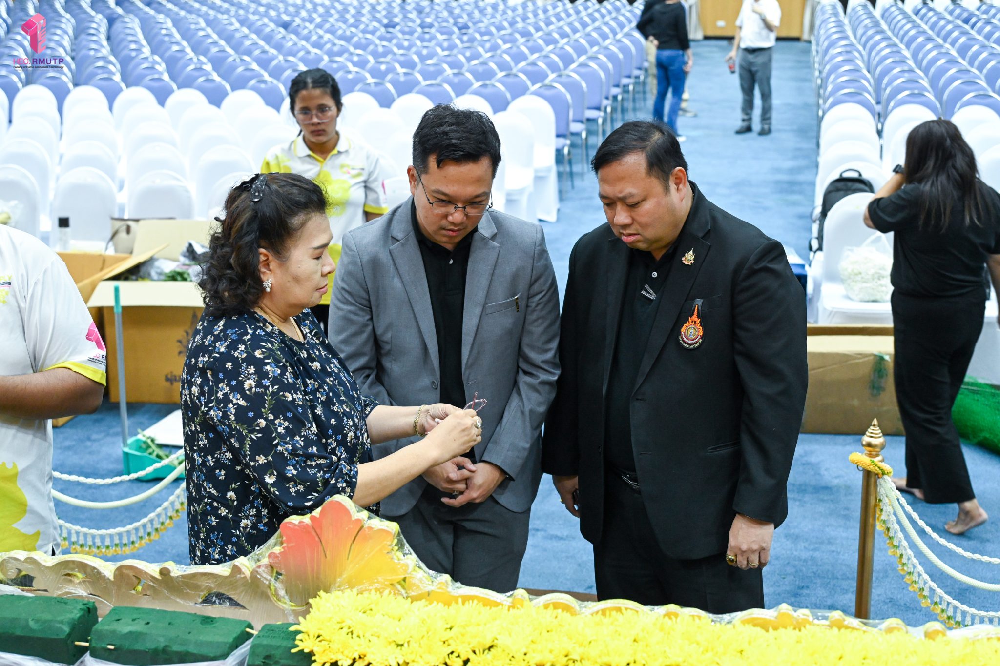 พิธีพระราชทานปริญญาบัตร มหาวิทยาลัยเทคโนโลยีราชมงคลพระนคร ครั้งที่ 39 ประจำปีการศึกษา 2567 กำหนดจัดขึ้นในวันที่ 13 มีนาคม 2569 ณ หอประชุมเฟืองเหนือ มหาวิทยาลัยเทคโนโลยีราชมงคลพระนคร ศูนย์พระนครเหนือ ในการนี้ คณะเทคโนโลยีคหกรรมศาสตร์ มหาวิทยาลัยเทคโนโลยีราชมงคลพระนคร ได้รับมอบหมายให้ดำเนินการจัดดอกไม้ตกแต่งเวทีพิธีพระราชทานปริญญาบัตร โดยมีผู้ช่วยศาสตราจารย์ ดร. ธนภพ โสตรโยม คณบดีคณะเทคโนโลยีคหกรรมศาสตร์ เป็นประธานดำเนินงาน และมอบหมายให้อาจารย์ปิยะธิดา สีหะวัฒนกุล ที่ปรึกษาคณบดี อาจารย์ ดร.สุชีรา ผ่องใส หัวหน้าสาขาวิชาคหกรรมศาสตร์ประยุกต์ และ ผศ.อนุสรณ์ ใจทน ออกแบบแนวคิดการตกแต่งเวที ร่วมกับคณาจารย์สาขาวิชาคหกรรมศาสตร์ประยุกต์ โดยได้รับความร่วมมือจากนักศึกษาสาขาวิชาคหกรรมศาสตร์ประยุกต์ พร้อมด้วยคณาจารย์สาขาวิชาออกแบบแฟชั่นและการจัดการสินค้า ร่วมดำเนินการตกแต่งดอกไม้ เมื่อวันที่ 12 มีนาคม 2569 ณ หอประชุมเฟืองเหนือ มหาวิทยาลัยเทคโนโลยีราชมงคลพระนคร ศูนย์พระนครเหนือ