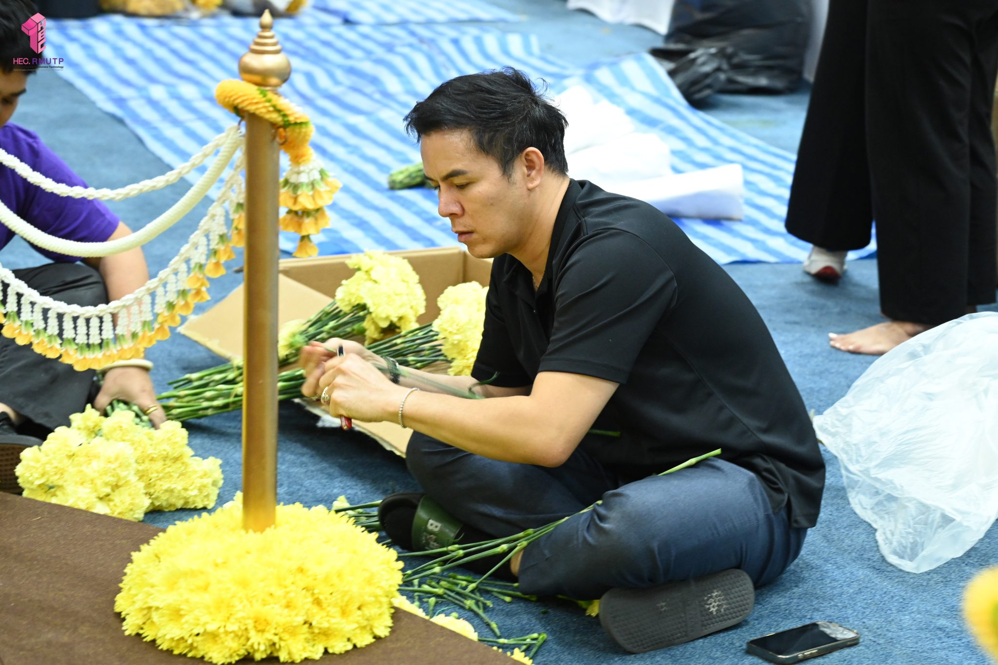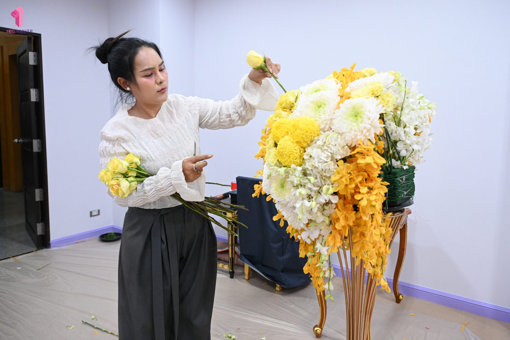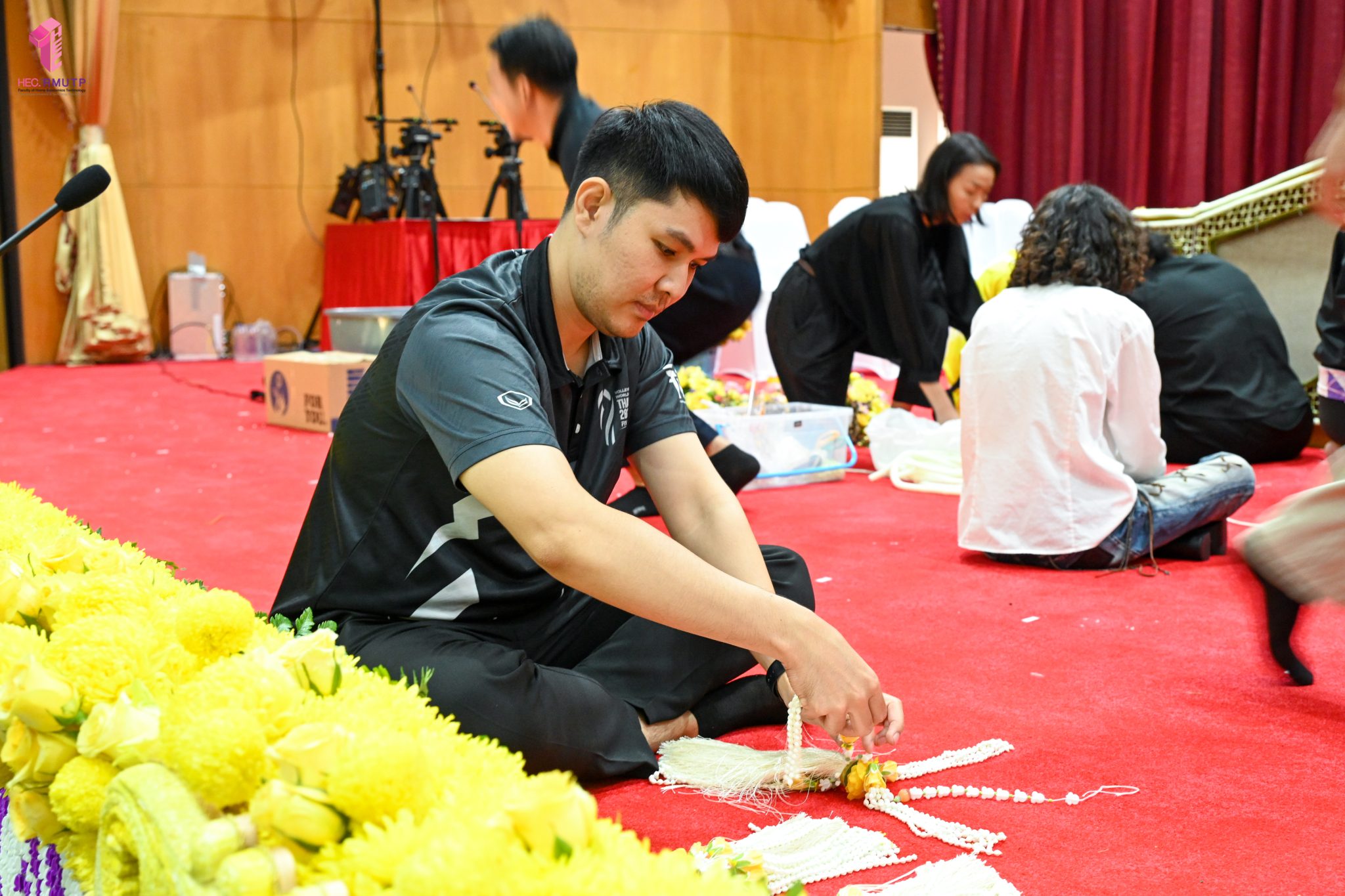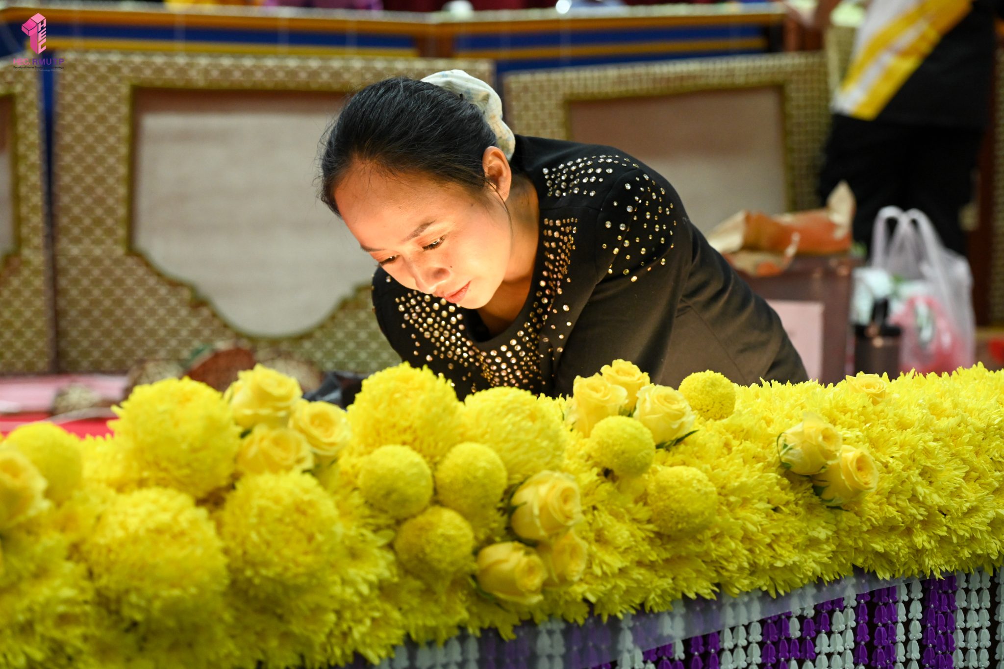 พิธีพระราชทานปริญญาบัตร มหาวิทยาลัยเทคโนโลยีราชมงคลพระนคร ครั้งที่ 39 ประจำปีการศึกษา 2567 กำหนดจัดขึ้นในวันที่ 13 มีนาคม 2569 ณ หอประชุมเฟืองเหนือ มหาวิทยาลัยเทคโนโลยีราชมงคลพระนคร ศูนย์พระนครเหนือ ในการนี้ คณะเทคโนโลยีคหกรรมศาสตร์ มหาวิทยาลัยเทคโนโลยีราชมงคลพระนคร ได้รับมอบหมายให้ดำเนินการจัดดอกไม้ตกแต่งเวทีพิธีพระราชทานปริญญาบัตร โดยมีผู้ช่วยศาสตราจารย์ ดร. ธนภพ โสตรโยม คณบดีคณะเทคโนโลยีคหกรรมศาสตร์ เป็นประธานดำเนินงาน และมอบหมายให้อาจารย์ปิยะธิดา สีหะวัฒนกุล ที่ปรึกษาคณบดี อาจารย์ ดร.สุชีรา ผ่องใส หัวหน้าสาขาวิชาคหกรรมศาสตร์ประยุกต์ และ ผศ.อนุสรณ์ ใจทน ออกแบบแนวคิดการตกแต่งเวที ร่วมกับคณาจารย์สาขาวิชาคหกรรมศาสตร์ประยุกต์ โดยได้รับความร่วมมือจากนักศึกษาสาขาวิชาคหกรรมศาสตร์ประยุกต์ พร้อมด้วยคณาจารย์สาขาวิชาออกแบบแฟชั่นและการจัดการสินค้า ร่วมดำเนินการตกแต่งดอกไม้ เมื่อวันที่ 12 มีนาคม 2569 ณ หอประชุมเฟืองเหนือ มหาวิทยาลัยเทคโนโลยีราชมงคลพระนคร ศูนย์พระนครเหนือ