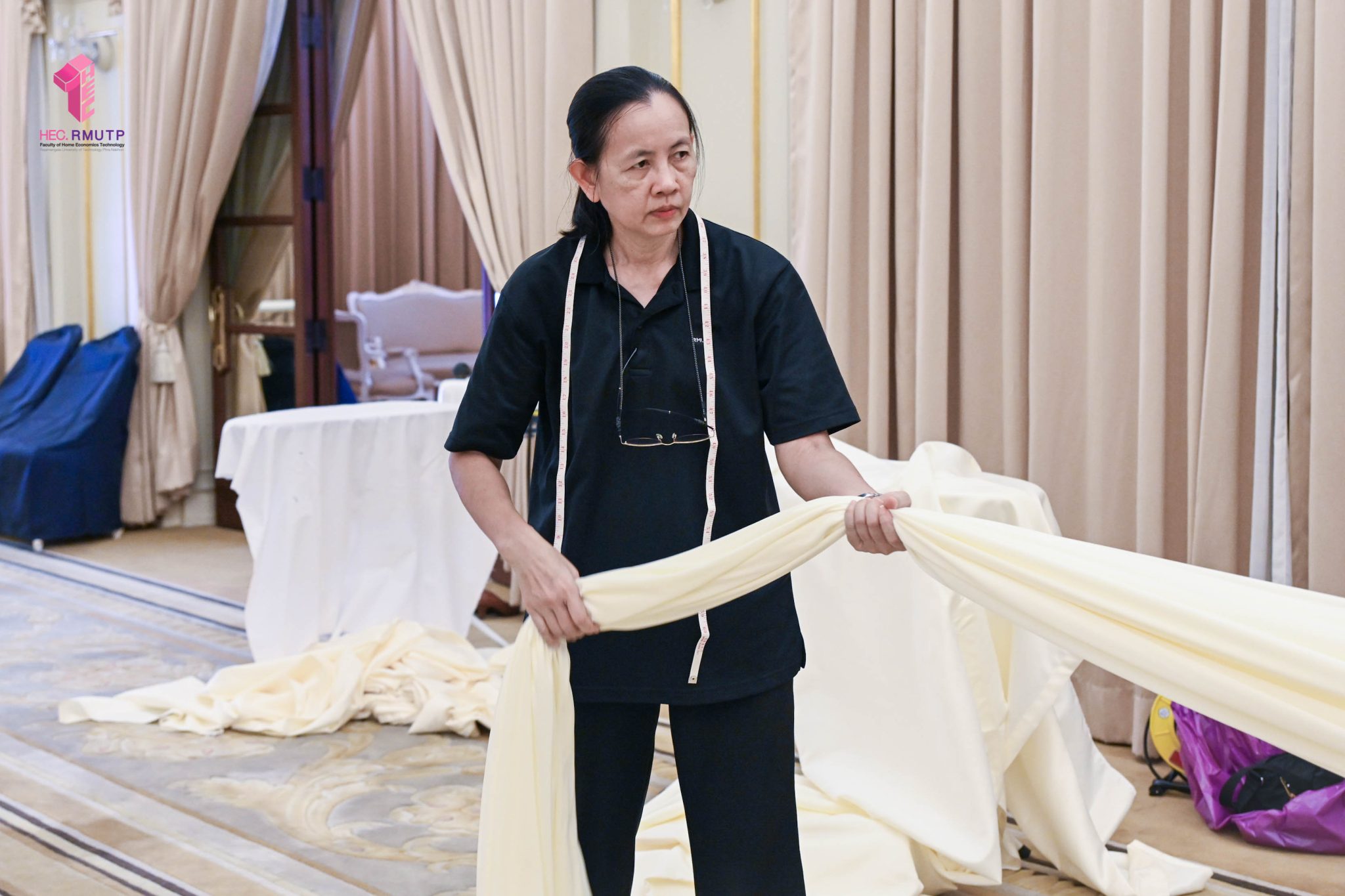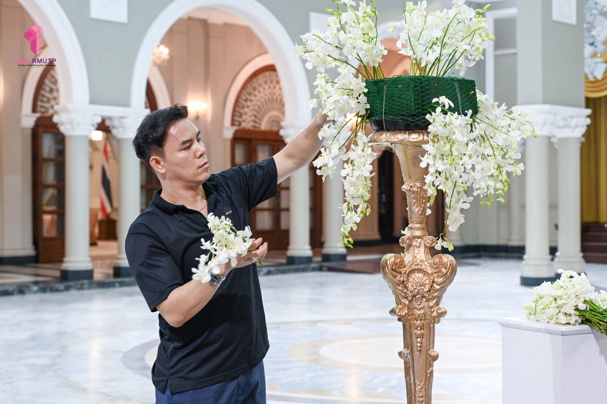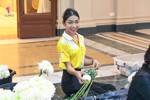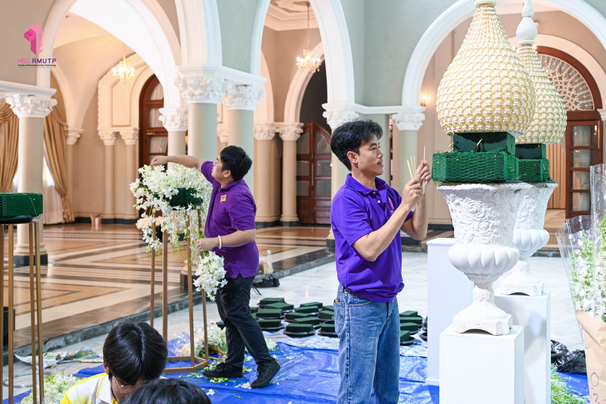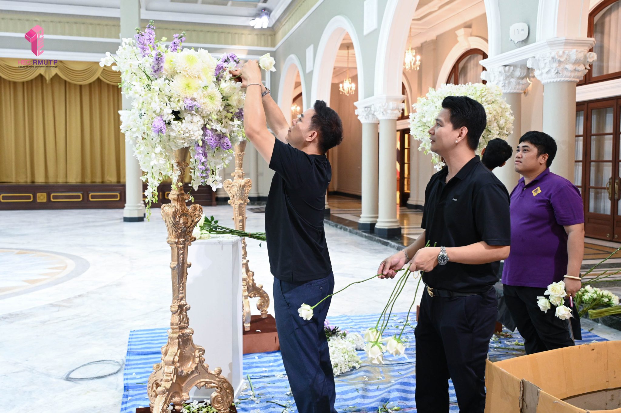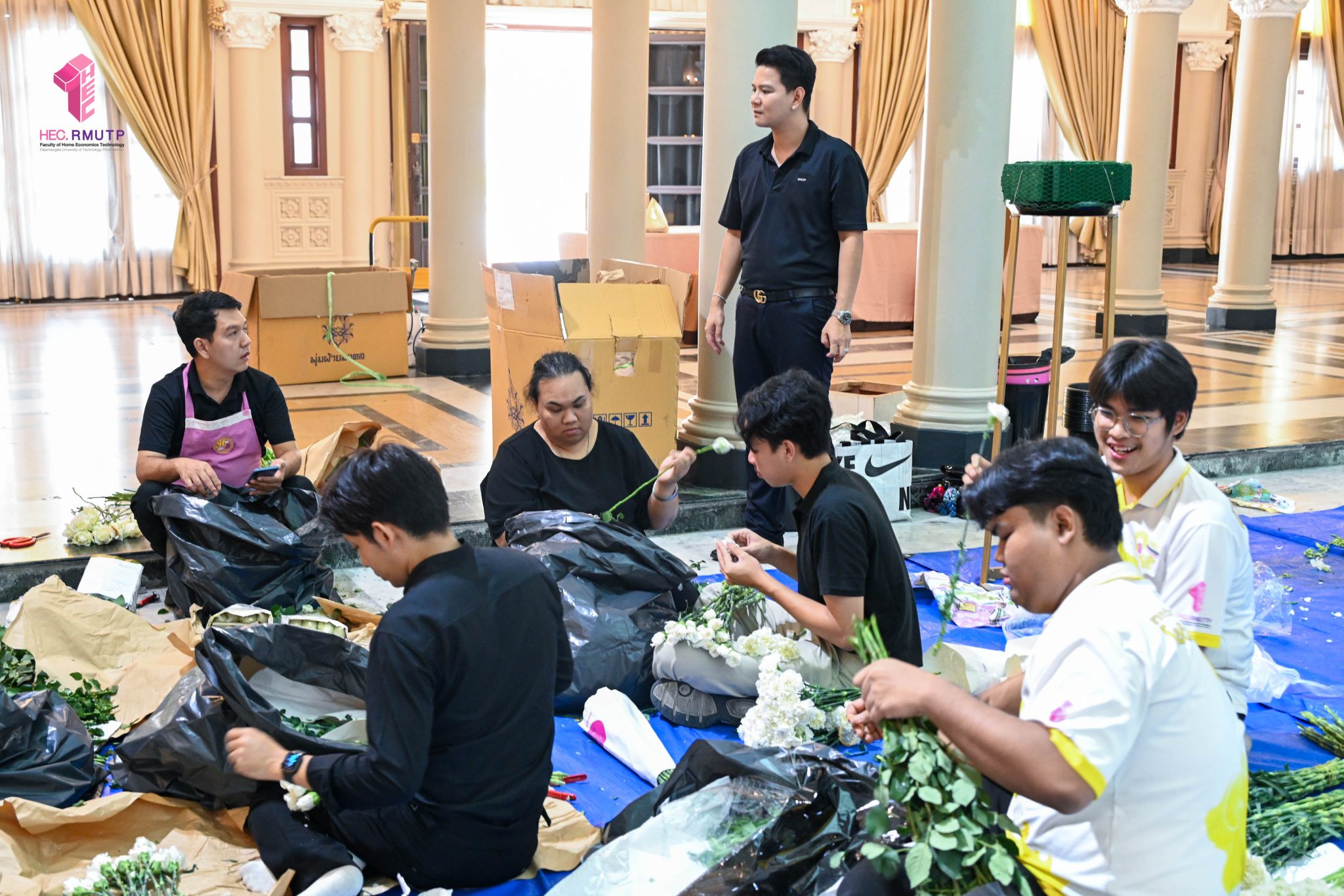 สมเด็จพระกนิษฐาธิราชเจ้า กรมสมเด็จพระเทพรัตนราชสุดาฯ สยามบรมราชกุมารี เสด็จพระราชดำเนินทรงเป็นประธาน “การประชุมคณะกรรมการอำนวยการจัดงานพระราชพิธีถวายพระเพลิงพระบรมศพ สมเด็จพระนางเจ้าสิริกิติ์ พระบรมราชินีนาถ พระบรมราชชนนีพันปีหลวง” ในการนี้ คณะเทคโนโลยีคหกรรมศาสตร์ มหาวิทยาลัยเทคโนโลยีราชมงคลพระนคร ได้รับเกียรติจากสำนักงานปลัดสำนักนายกรัฐมนตรี ให้ดำเนินการจัดดอกไม้ตกแต่งสถานที่ โดยคณาจารย์ บุคลากร นักศึกษา และศิษย์เก่า สาขาวิชาคหกรรมศาสตร์ประยุกต์ ร่วมกันจัดดอกไม้ตกแต่งสถานที่อย่างวิจิตรบรรจง พร้อมด้วยคณาจารย์ นักศึกษา สาขาวิชาออกแบบแฟชั่นและการจัดการสินค้า ร่วมตัดเย็บผ้าคลุมโต๊ะประชุม เมื่อวันที่ 20 มีนาคม 2569 ณ ตึกสันติไมตรี ทำเนียบรัฐบาล