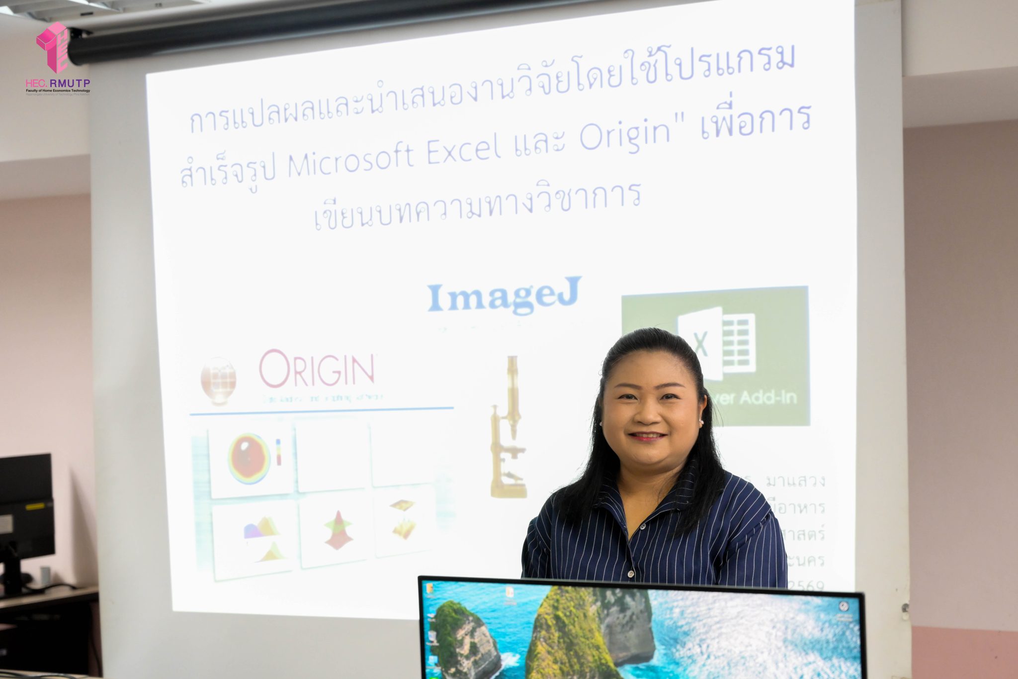 สาขาวิชาเทคโนโลยีอาหาร คณะเทคโนโลยีคหกรรมศาสตร์ มหาวิทยาลัยเทคโนโลยีราชมงคลพระนคร จัดโครงการเสริมสร้างศักยภาพบุคลากร กิจกรรมที่ 1 ในหัวข้อ “การแปลผลและนำเสนองานวิจัยโดยใช้โปรแกรมสำเร็จรูป Microsoft Excel และ Origin” โดยเป็นการอบรมเชิงปฏิบัติการที่มุ่งเน้นการพัฒนาทักษะด้านการวิเคราะห์ข้อมูลและการนำเสนอผลงานวิจัยอย่างมีประสิทธิภาพ ในการนี้ ได้รับเกียรติจาก ผู้ช่วยศาสตราจารย์ ดร.ศุภัคษร มาแสวง เป็นวิทยากรถ่ายทอดองค์ความรู้และประสบการณ์ในการใช้โปรแกรม Microsoft Excel และ Origin สำหรับการแปลผลข้อมูลเชิงวิจัย ตลอดจนเทคนิคการนำเสนอข้อมูลให้มีความถูกต้อง ชัดเจน และน่าสนใจ โครงการดังกล่าวจัดขึ้นเมื่อวันที่ 20 มีนาคม 2569 ณ ห้องปฏิบัติการคอมพิวเตอร์ 2102 อาคารเรือนปัญญา คณะเทคโนโลยีคหกรรมศาสตร์ เพื่อส่งเสริมและพัฒนาศักยภาพบุคลากรให้มีความพร้อมต่อการสร้างสรรค์ผลงานวิจัยที่มีคุณภาพและสามารถนำไปใช้ประโยชน์ได้อย่างแท้จริง