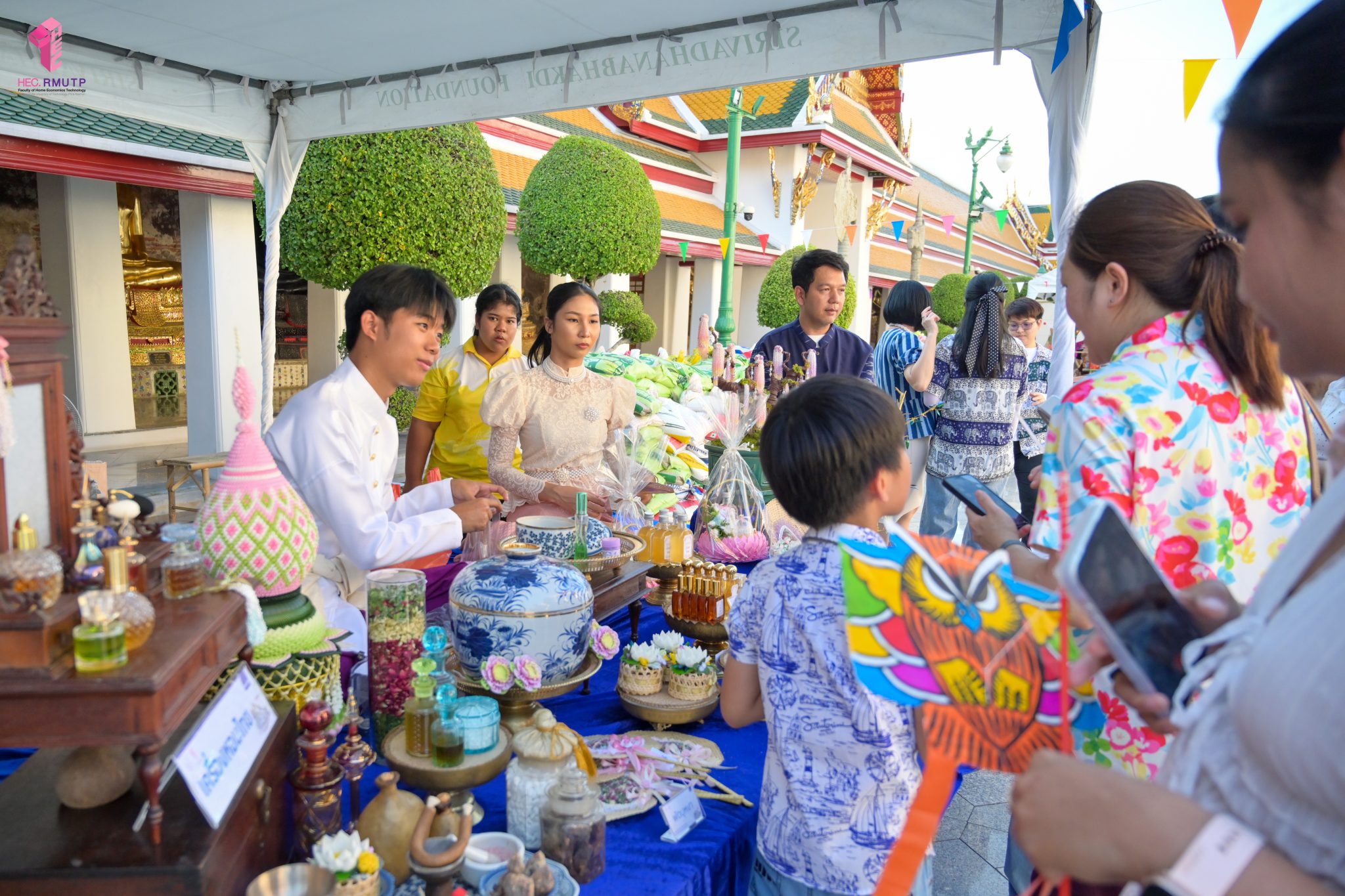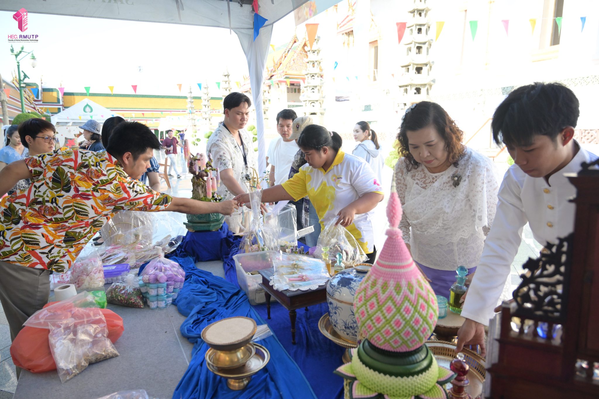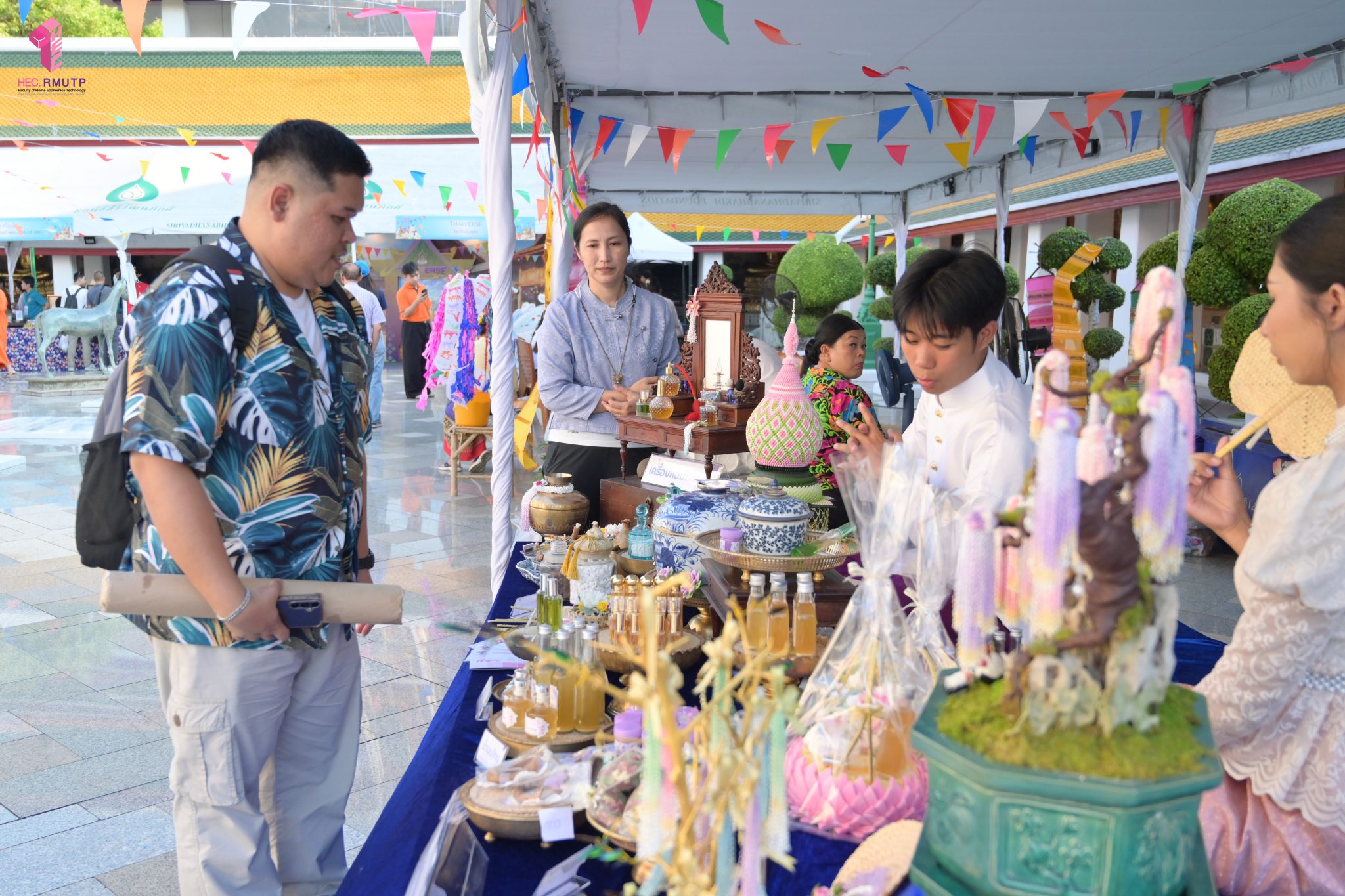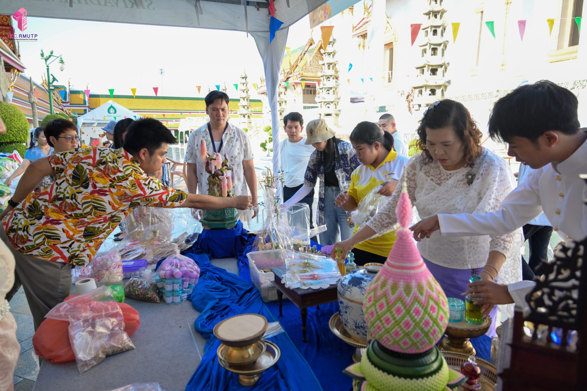 คณะเทคโนโลยีคหกรรมศาสตร์ (โชติเวช) มหาวิทยาลัยเทคโนโลยีราชมงคลพระนคร ร่วมกับกรมส่งเสริมวัฒนธรรม กระทรวงวัฒนธรรม วัดสุทัศนเทพวรารามราชวรมหาวิหาร และสำนักงานเขตพระนคร จัดงาน “สงกรานต์บ้านฉัน สีสันแบบไทย สุขไกลทั่วโลก” Once in a Lifetime : Experience Songkran in Thailand ระหว่างวันที่ 11–14 เมษายน 2569 ณ วัดสุทัศนเทพวรารามราชวรมหาวิหาร เพื่อส่งเสริมและสืบสานวัฒนธรรมไทยอันทรงคุณค่าให้เป็นที่ประจักษ์ในระดับนานาชาติ ในการนี้ คณาจารย์สาขาวิชาคหกรรมศาสตร์ประยุกต์ คณะเทคโนโลยีคหกรรมศาสตร์ มทร.พระนคร ได้ดำเนินการจัดแสดงและสาธิตศิลปวัฒนธรรมไทย ผ่านกิจกรรมการทำ “เครื่องหอมไทย” ซึ่งสะท้อนภูมิปัญญาไทยด้านความงามและวิถีชีวิต ตลอดจนจัด Workshop “พัดบุหงา” เมื่อวันที่ 11 เมษายน 2569 เพื่อเปิดโอกาสให้ผู้เข้าร่วมงานได้เรียนรู้และลงมือปฏิบัติจริง สัมผัสเสน่ห์ความประณีตของงานหัตถศิลป์ไทยอย่างใกล้ชิด