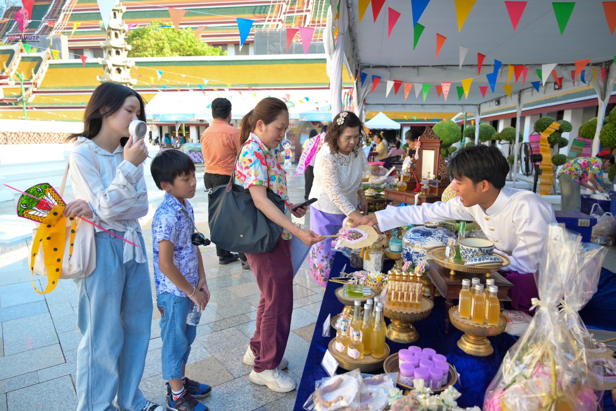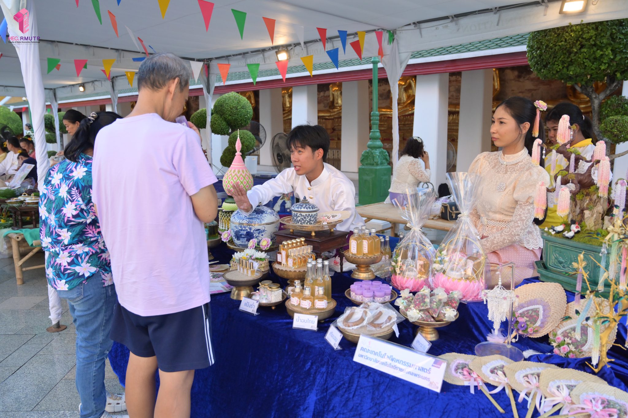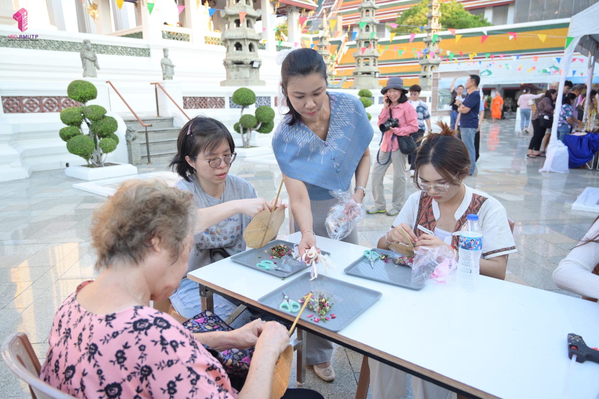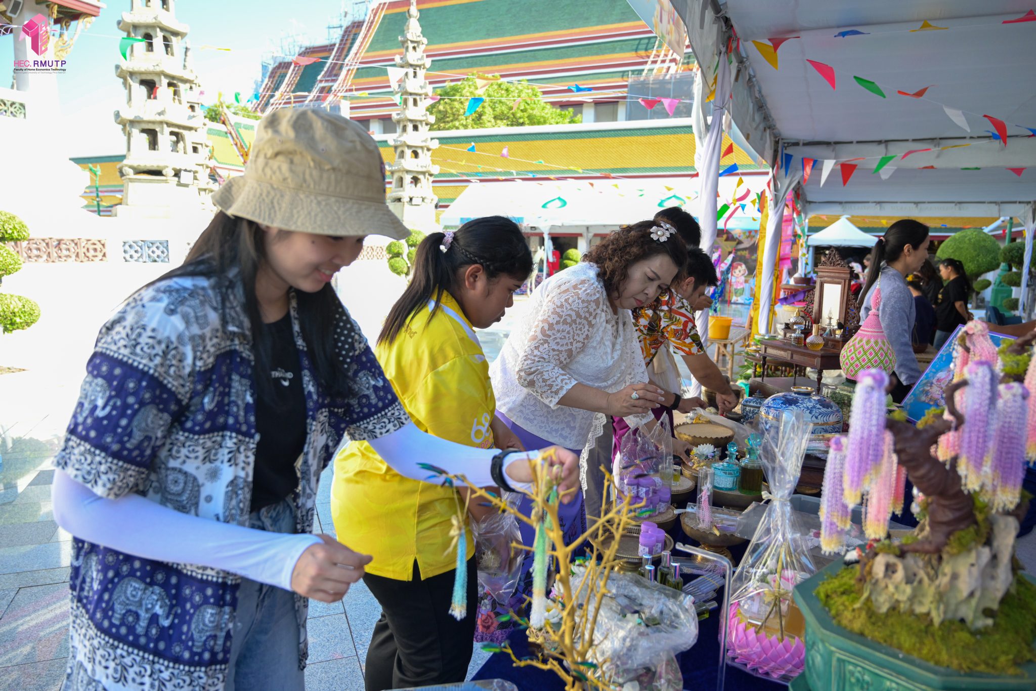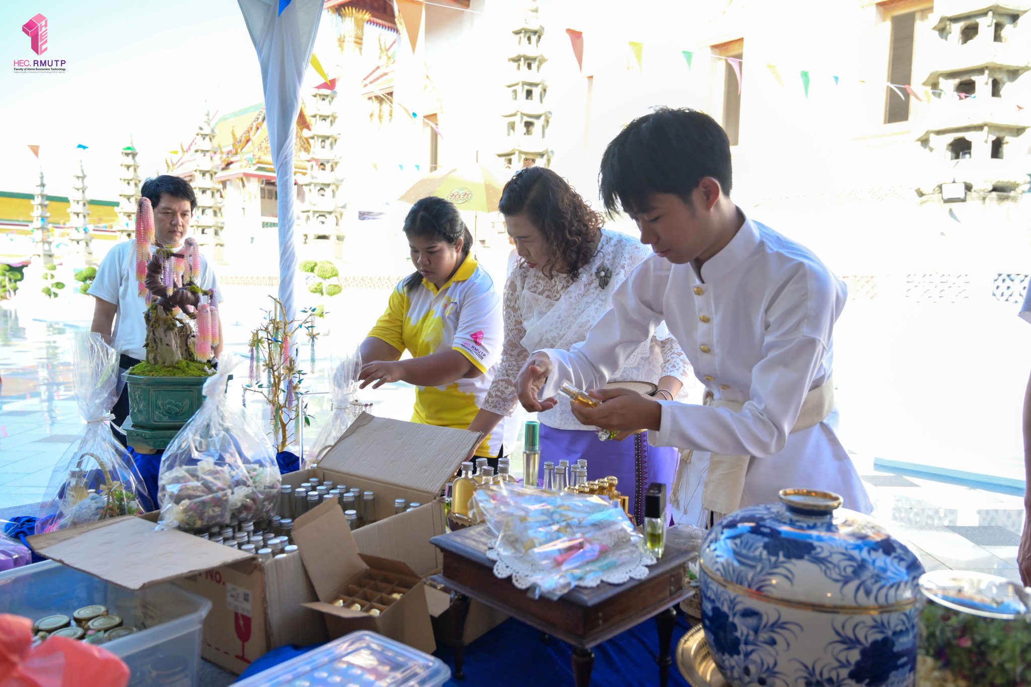 คณะเทคโนโลยีคหกรรมศาสตร์ (โชติเวช) มหาวิทยาลัยเทคโนโลยีราชมงคลพระนคร ร่วมกับกรมส่งเสริมวัฒนธรรม กระทรวงวัฒนธรรม วัดสุทัศนเทพวรารามราชวรมหาวิหาร และสำนักงานเขตพระนคร จัดงาน “สงกรานต์บ้านฉัน สีสันแบบไทย สุขไกลทั่วโลก” Once in a Lifetime : Experience Songkran in Thailand ระหว่างวันที่ 11–14 เมษายน 2569 ณ วัดสุทัศนเทพวรารามราชวรมหาวิหาร เพื่อส่งเสริมและสืบสานวัฒนธรรมไทยอันทรงคุณค่าให้เป็นที่ประจักษ์ในระดับนานาชาติ ในการนี้ คณาจารย์สาขาวิชาคหกรรมศาสตร์ประยุกต์ คณะเทคโนโลยีคหกรรมศาสตร์ มทร.พระนคร ได้ดำเนินการจัดแสดงและสาธิตศิลปวัฒนธรรมไทย ผ่านกิจกรรมการทำ “เครื่องหอมไทย” ซึ่งสะท้อนภูมิปัญญาไทยด้านความงามและวิถีชีวิต ตลอดจนจัด Workshop “พัดบุหงา” เมื่อวันที่ 11 เมษายน 2569 เพื่อเปิดโอกาสให้ผู้เข้าร่วมงานได้เรียนรู้และลงมือปฏิบัติจริง สัมผัสเสน่ห์ความประณีตของงานหัตถศิลป์ไทยอย่างใกล้ชิด