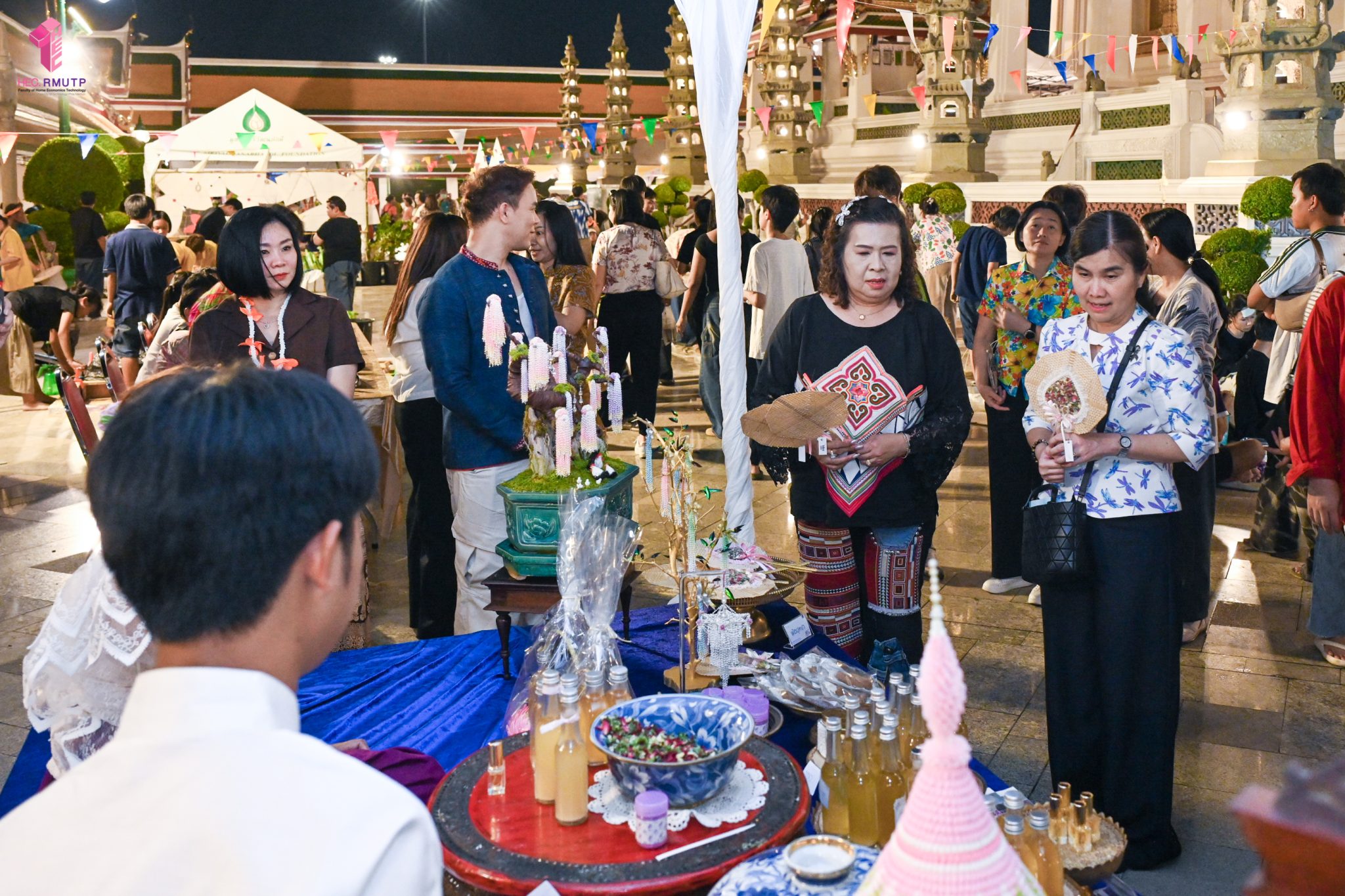 คณะเทคโนโลยีคหกรรมศาสตร์ (โชติเวช) มหาวิทยาลัยเทคโนโลยีราชมงคลพระนคร ร่วมกับกรมส่งเสริมวัฒนธรรม กระทรวงวัฒนธรรม วัดสุทัศนเทพวรารามราชวรมหาวิหาร และสำนักงานเขตพระนคร จัดงาน “สงกรานต์บ้านฉัน สีสันแบบไทย สุขไกลทั่วโลก” Once in a Lifetime : Experience Songkran in Thailand ระหว่างวันที่ 11–14 เมษายน 2569 ณ วัดสุทัศนเทพวรารามราชวรมหาวิหาร เพื่อส่งเสริมและสืบสานวัฒนธรรมไทยอันทรงคุณค่าให้เป็นที่ประจักษ์ในระดับนานาชาติ ในการนี้ คณาจารย์สาขาวิชาคหกรรมศาสตร์ประยุกต์ คณะเทคโนโลยีคหกรรมศาสตร์ มทร.พระนคร ได้ดำเนินการจัดแสดงและสาธิตศิลปวัฒนธรรมไทย ผ่านกิจกรรมการทำ “เครื่องหอมไทย” ซึ่งสะท้อนภูมิปัญญาไทยด้านความงามและวิถีชีวิต ตลอดจนจัด Workshop “ยาดมสมุนไพร” เมื่อวันที่ 12 เมษายน 2569 เพื่อเปิดโอกาสให้ผู้เข้าร่วมงานได้เรียนรู้และลงมือปฏิบัติจริง สัมผัสเสน่ห์ความประณีตของงานหัตถศิลป์ไทยอย่างใกล้ชิด