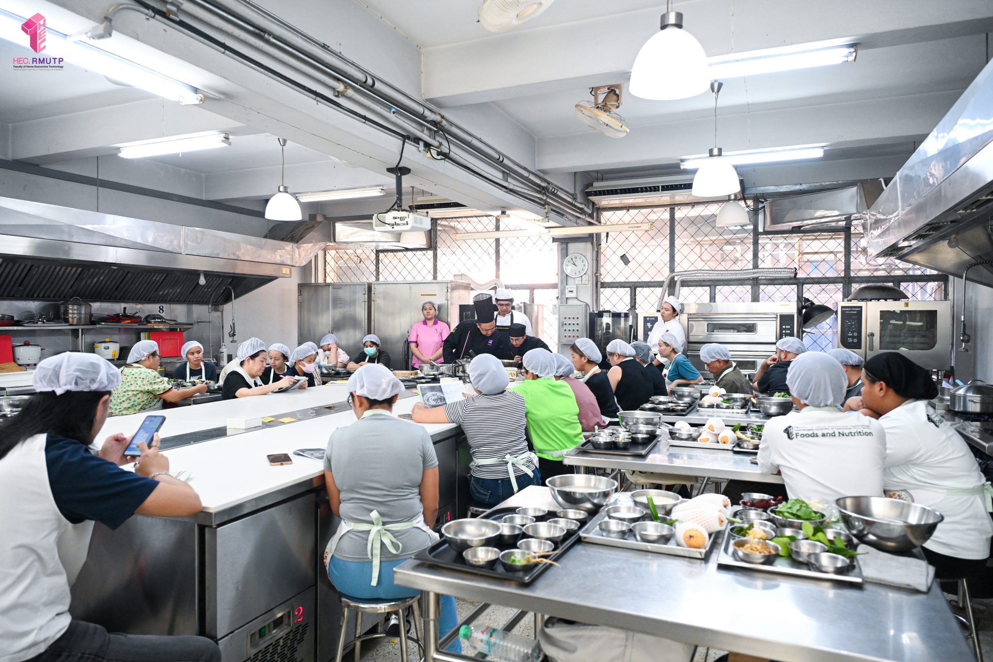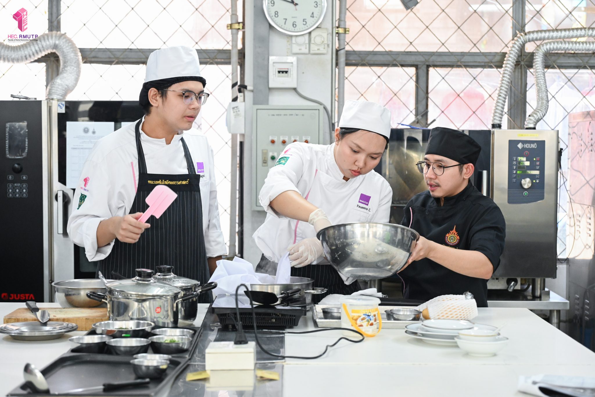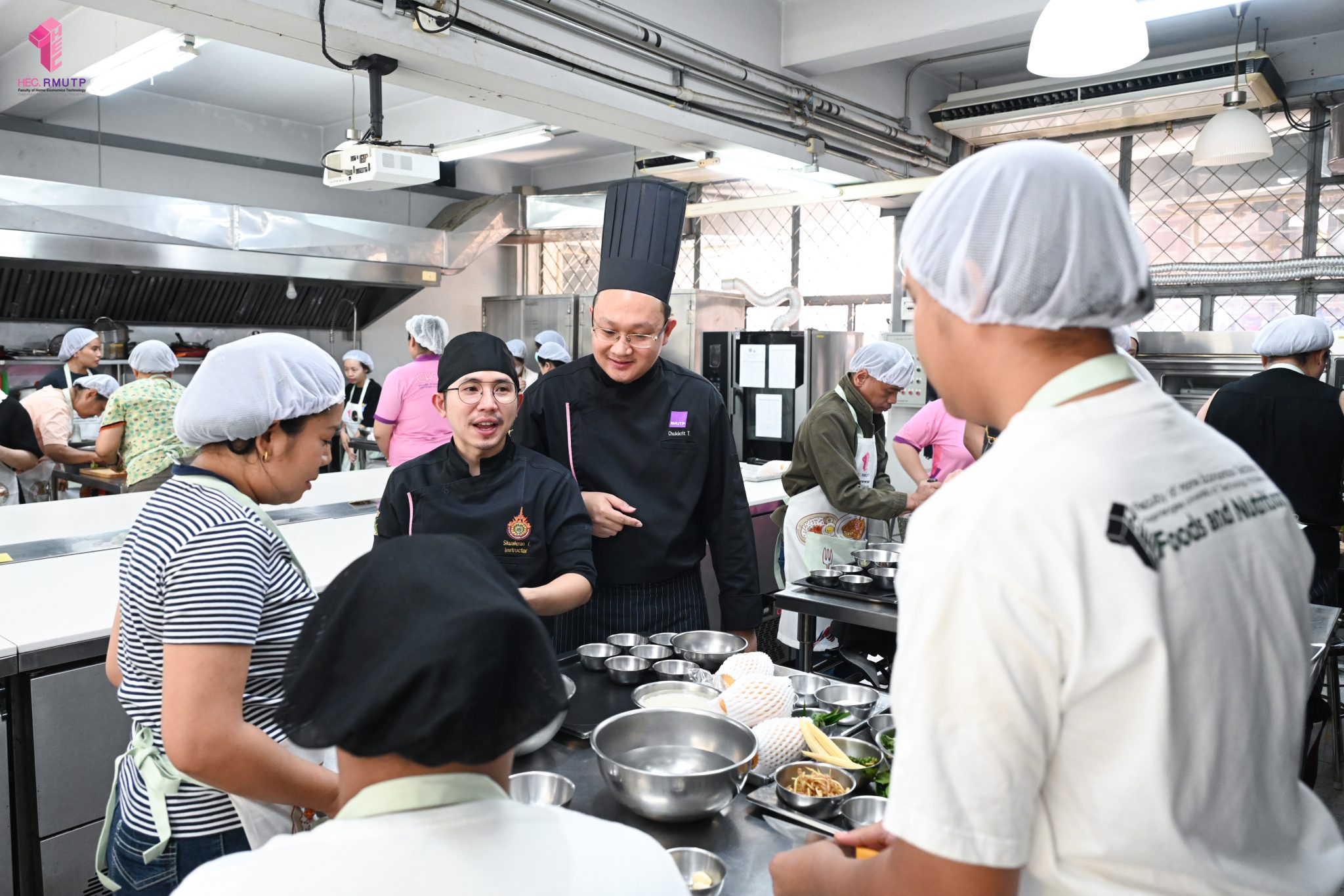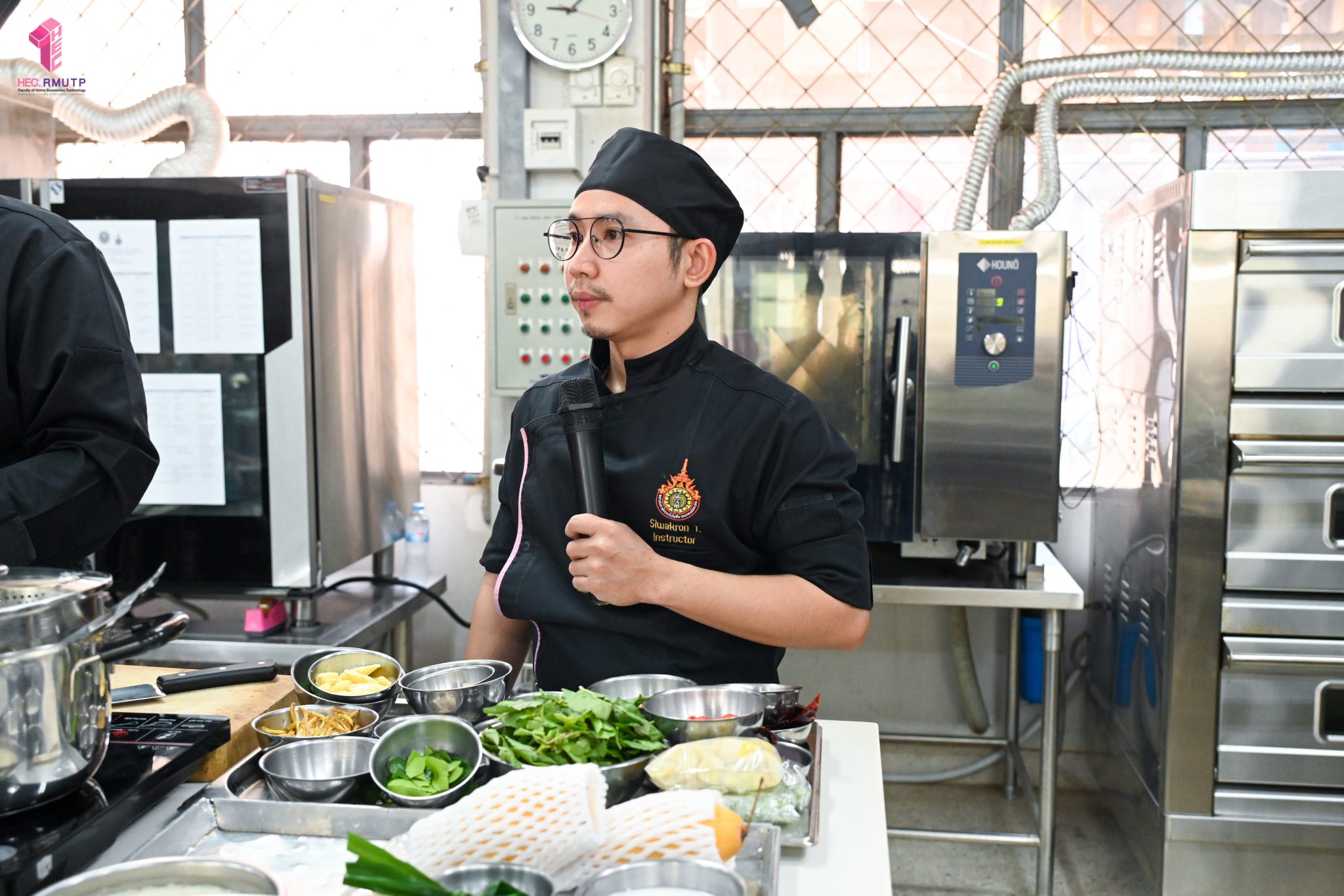 คณะเทคโนโลยีคหกรรมศาสตร์ มหาวิทยาลัยเทคโนโลยีราชมงคลพระนคร เข้าร่วมโครงการขับเคลื่อนและยกระดับนวัตกรรมอาหารด้วยขุมพลังสหวิทยาการ หนึ่งหมู่บ้าน หนึ่งเชฟอาหารไทย ซึ่งจัดขึ้นโดยกระทรวงการอุดมศึกษาวิทยาศาสตร์ วิจัยและนวัตกรรม โดยมีวัตถุประสงค์เพื่อผลักดันผู้เข้าอบรมสู่การทดสอบเพื่อรับรองมาตรฐานอาชีพ ตลอดจนยกระดับศักยภาพและสมรรถนะให้เป็นไปตามเกณฑ์มาตรฐานวิชาชีพ (รหัสห้องเรียน BKK01U0101) โดยมี อาจารย์ดร.จักรกฤษณ์ ทองคำ อาจารย์ศิวกร ตลับนาค อาจารย์วรลักษณ์ ป้อมน้อย อาจารย์วรธร ป้อมเย็น อาจารย์ลัดดาวัลย์ กลิ่นมาลัย และอาจารย์เอนก ศรฟ้า อาจารย์ประจำสาขาวิชาอาหารและโภชนาการ ร่วมถ่ายทอดความรู้และฝึกปฏิบัติการอาหารให้แก่ผู้เข้าอบรมอย่างเข้มข้น ระหว่างวันที่ 7-10 เมษายน 2569 ณ คณะเทคโนโลยีคหกรรมศาสตร์