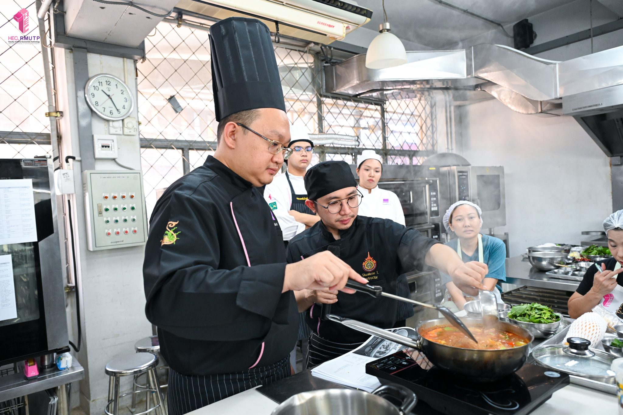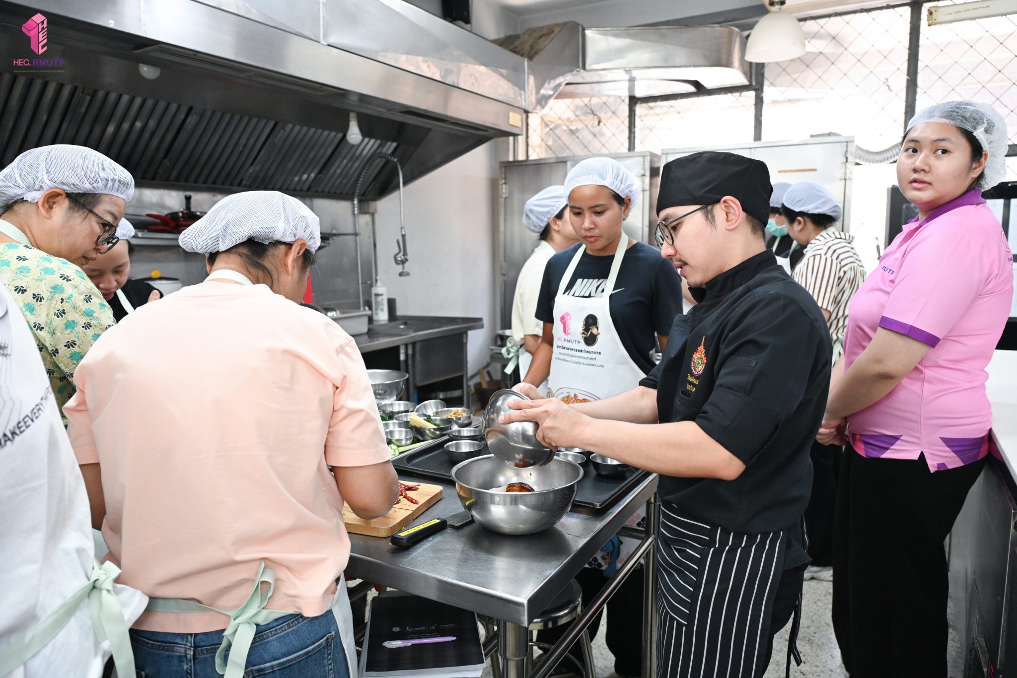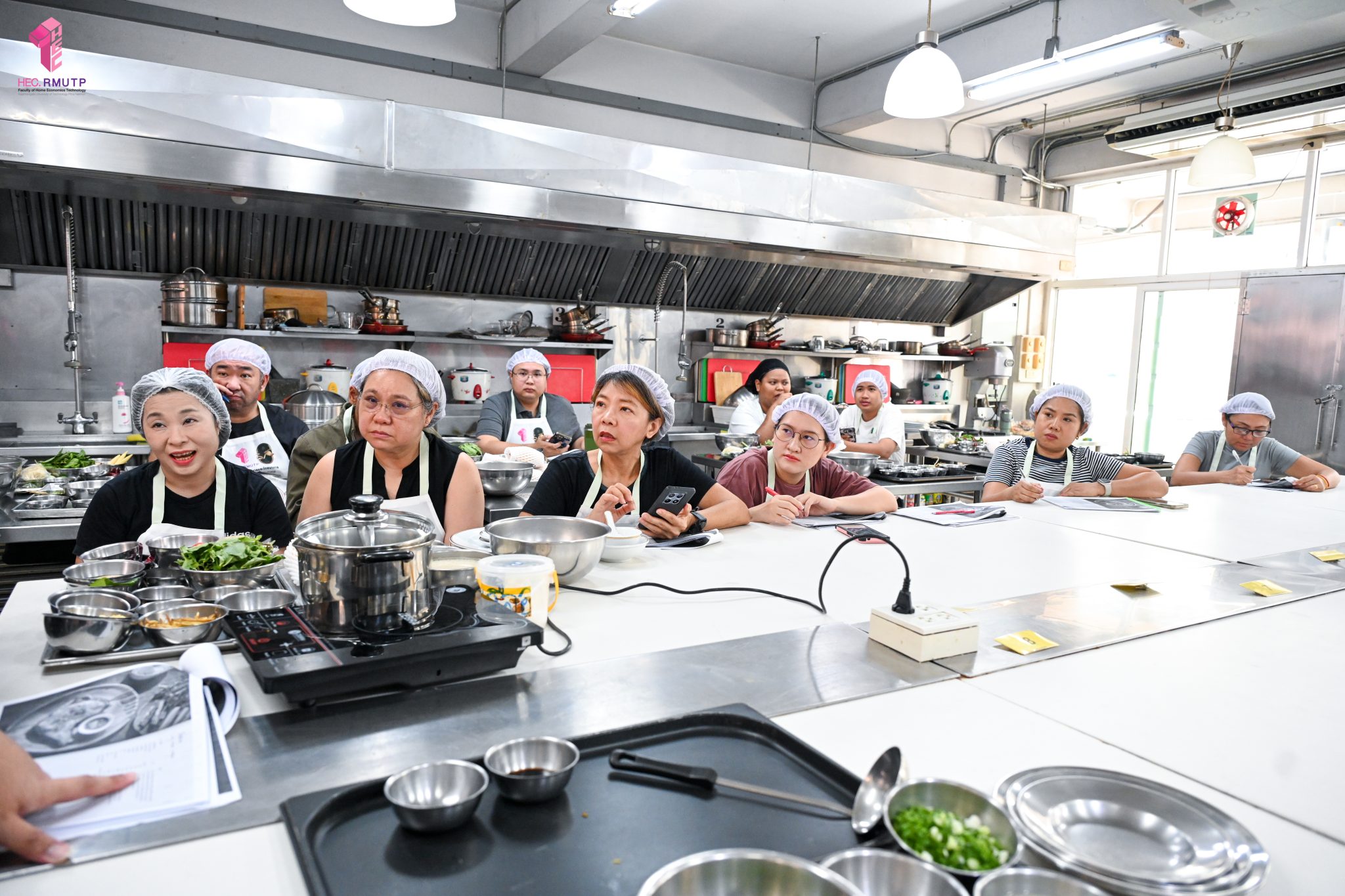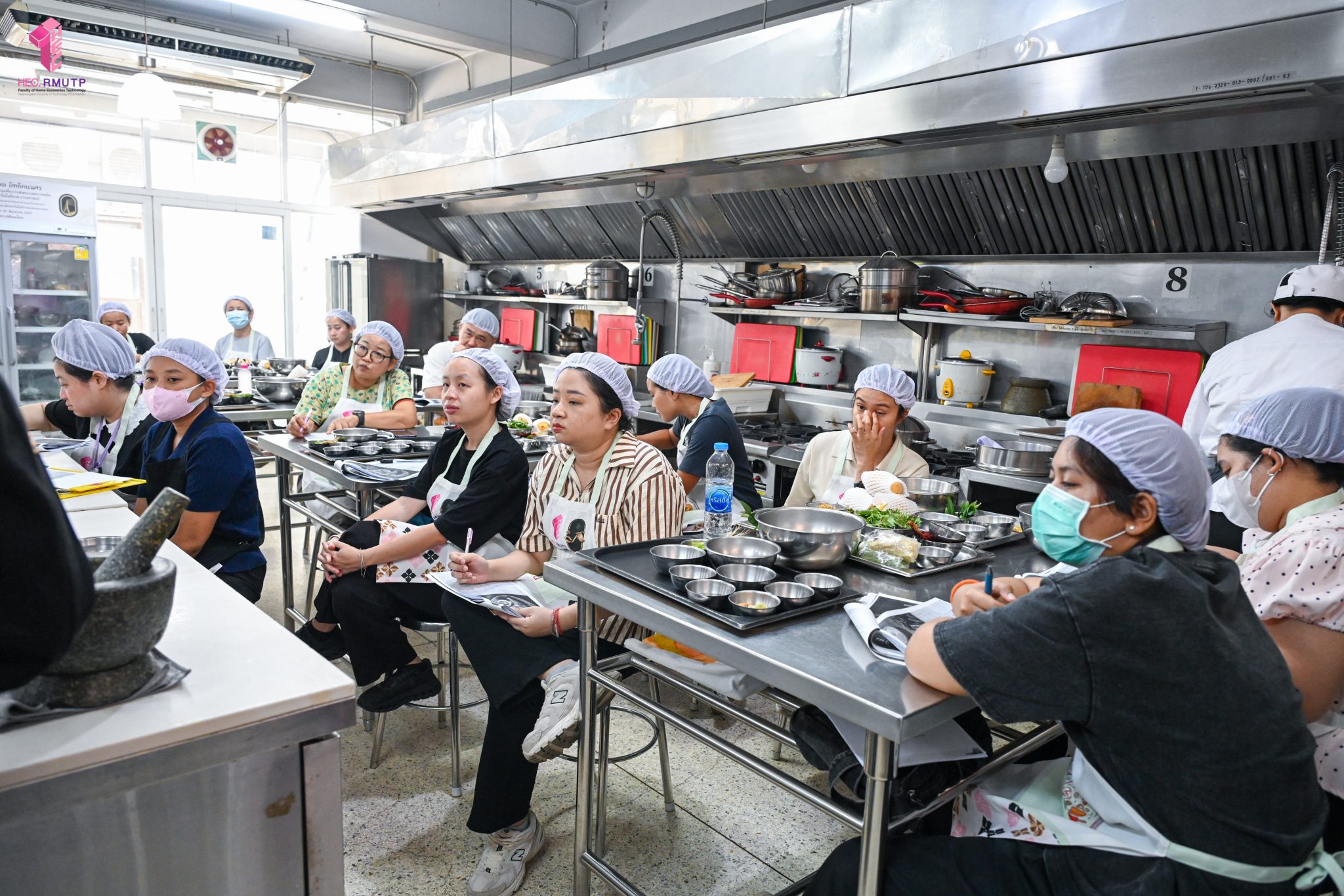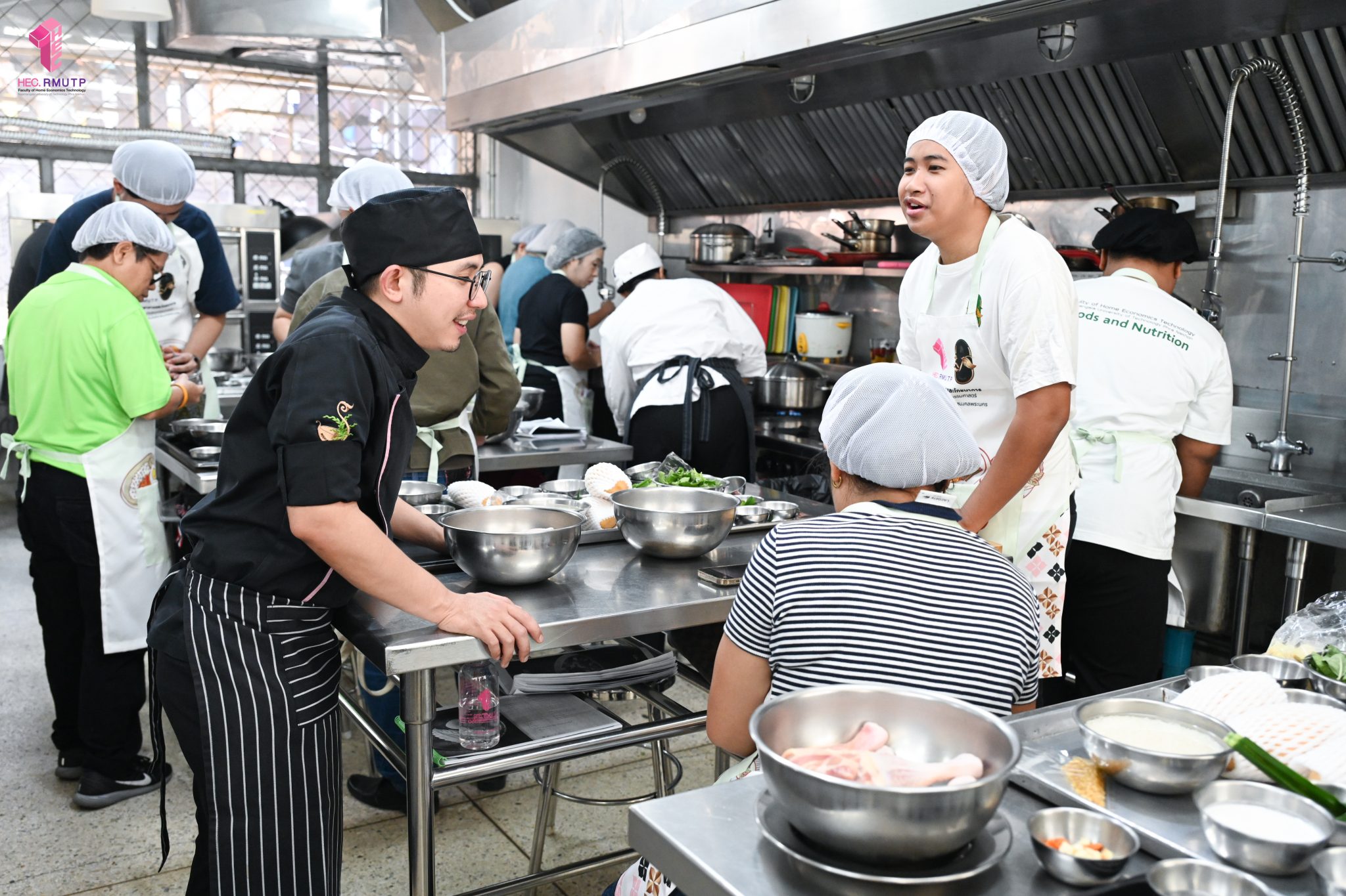 คณะเทคโนโลยีคหกรรมศาสตร์ มหาวิทยาลัยเทคโนโลยีราชมงคลพระนคร เข้าร่วมโครงการขับเคลื่อนและยกระดับนวัตกรรมอาหารด้วยขุมพลังสหวิทยาการ หนึ่งหมู่บ้าน หนึ่งเชฟอาหารไทย ซึ่งจัดขึ้นโดยกระทรวงการอุดมศึกษาวิทยาศาสตร์ วิจัยและนวัตกรรม โดยมีวัตถุประสงค์เพื่อผลักดันผู้เข้าอบรมสู่การทดสอบเพื่อรับรองมาตรฐานอาชีพ ตลอดจนยกระดับศักยภาพและสมรรถนะให้เป็นไปตามเกณฑ์มาตรฐานวิชาชีพ (รหัสห้องเรียน BKK01U0101) โดยมี อาจารย์ดร.จักรกฤษณ์ ทองคำ อาจารย์ศิวกร ตลับนาค อาจารย์วรลักษณ์ ป้อมน้อย อาจารย์วรธร ป้อมเย็น อาจารย์ลัดดาวัลย์ กลิ่นมาลัย และอาจารย์เอนก ศรฟ้า อาจารย์ประจำสาขาวิชาอาหารและโภชนาการ ร่วมถ่ายทอดความรู้และฝึกปฏิบัติการอาหารให้แก่ผู้เข้าอบรมอย่างเข้มข้น ระหว่างวันที่ 7-10 เมษายน 2569 ณ คณะเทคโนโลยีคหกรรมศาสตร์