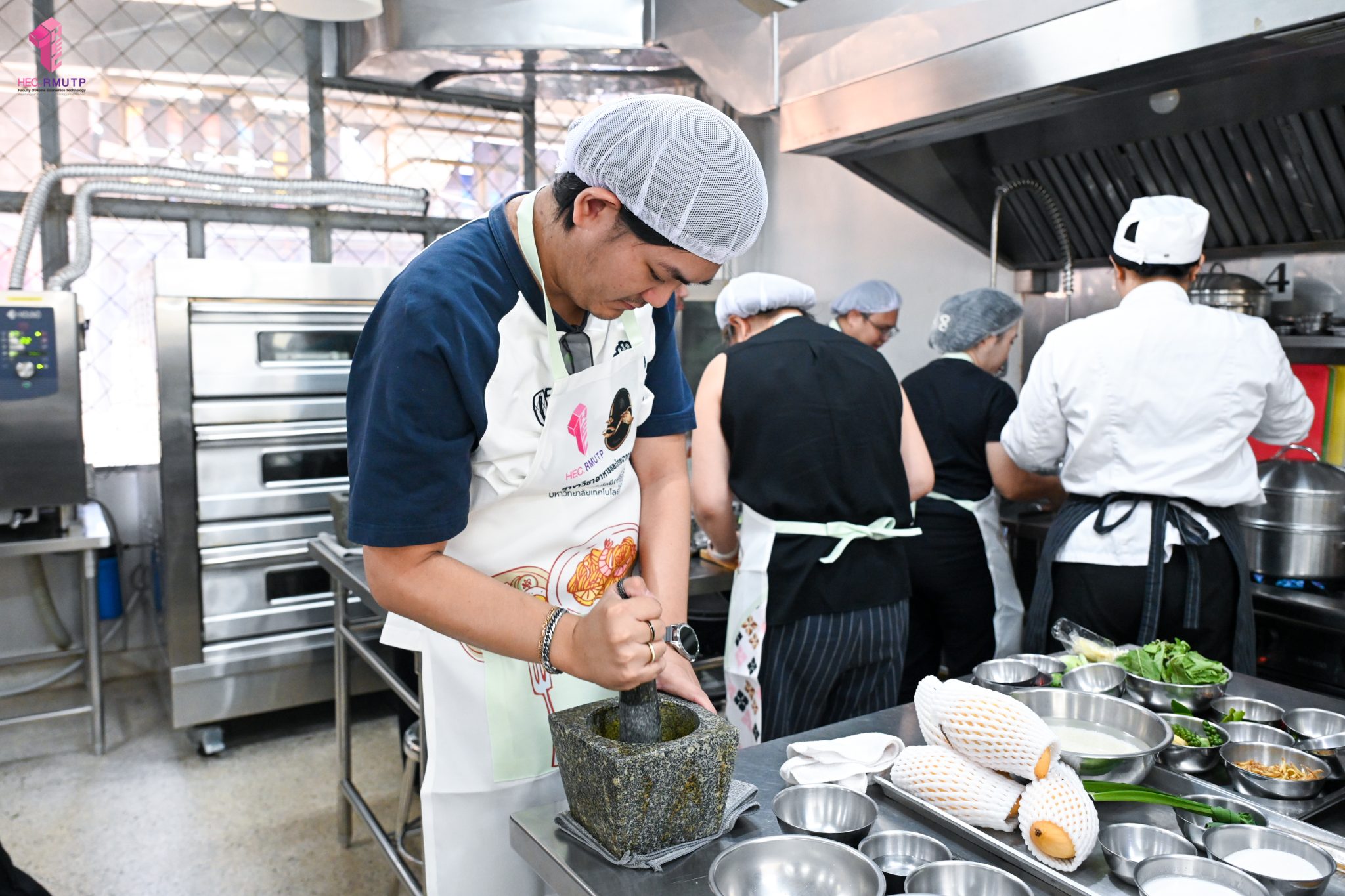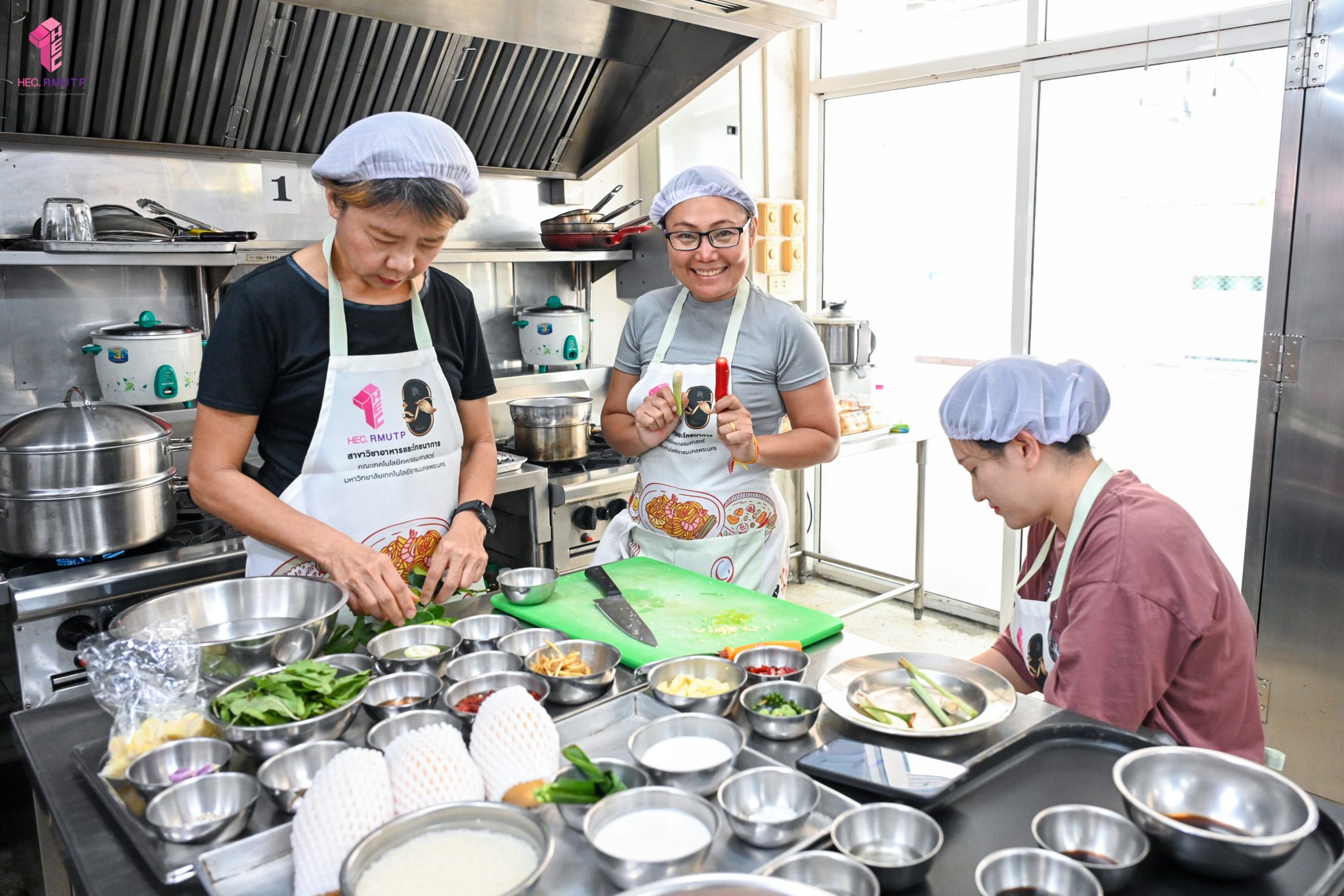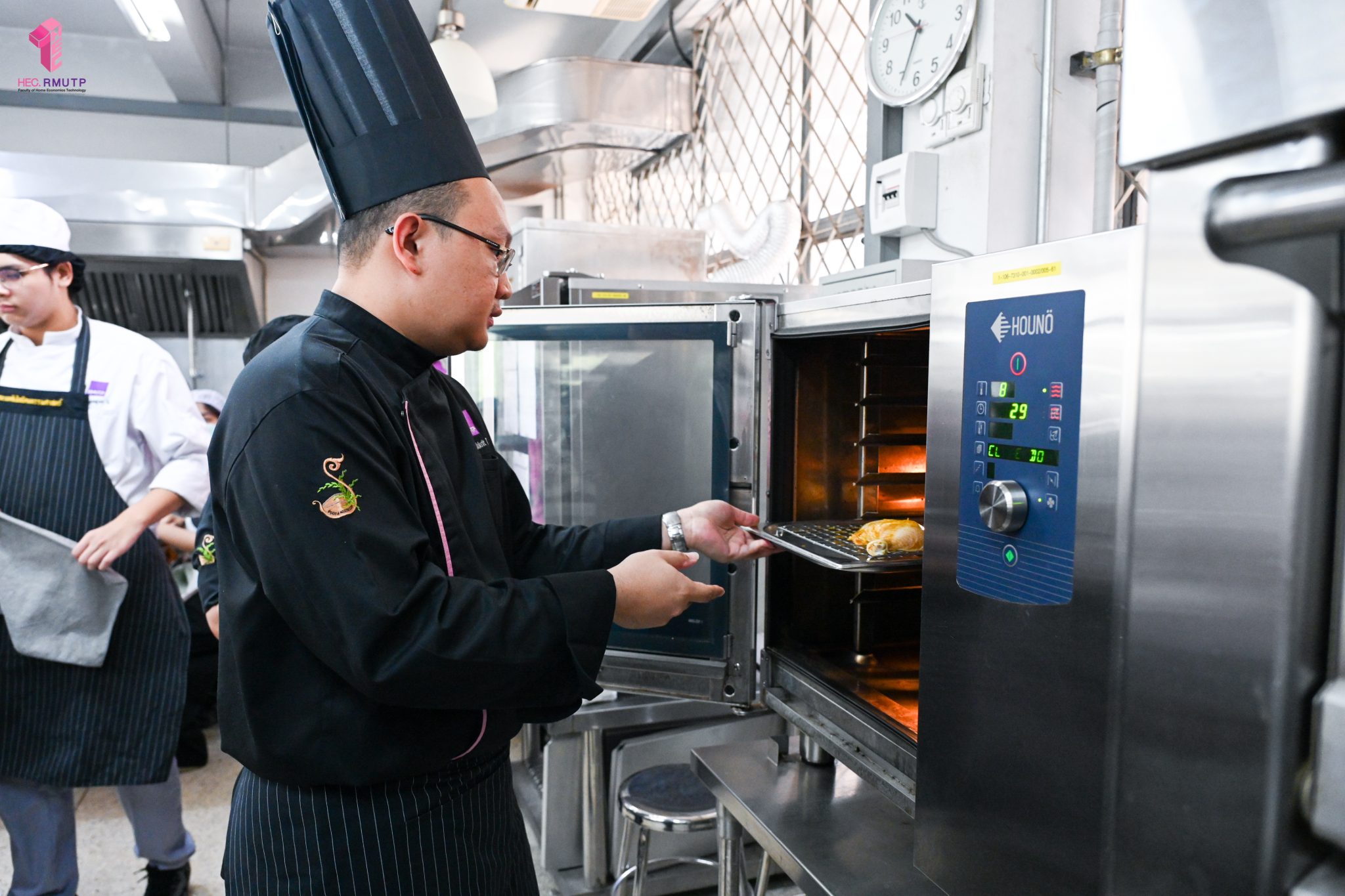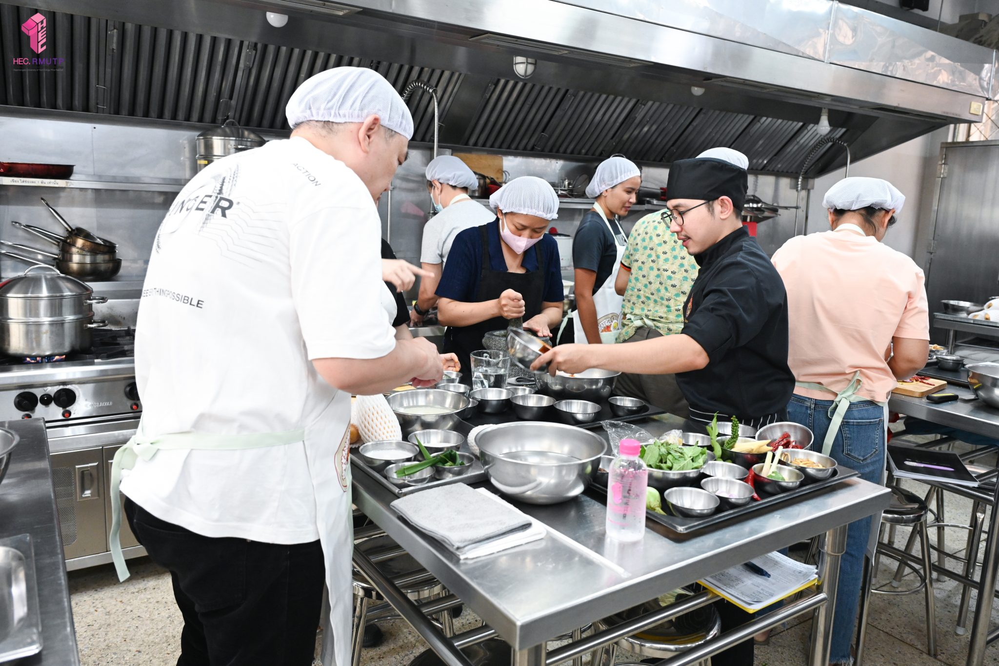 คณะเทคโนโลยีคหกรรมศาสตร์ มหาวิทยาลัยเทคโนโลยีราชมงคลพระนคร เข้าร่วมโครงการขับเคลื่อนและยกระดับนวัตกรรมอาหารด้วยขุมพลังสหวิทยาการ หนึ่งหมู่บ้าน หนึ่งเชฟอาหารไทย ซึ่งจัดขึ้นโดยกระทรวงการอุดมศึกษาวิทยาศาสตร์ วิจัยและนวัตกรรม โดยมีวัตถุประสงค์เพื่อผลักดันผู้เข้าอบรมสู่การทดสอบเพื่อรับรองมาตรฐานอาชีพ ตลอดจนยกระดับศักยภาพและสมรรถนะให้เป็นไปตามเกณฑ์มาตรฐานวิชาชีพ (รหัสห้องเรียน BKK01U0101) โดยมี อาจารย์ดร.จักรกฤษณ์ ทองคำ อาจารย์ศิวกร ตลับนาค อาจารย์วรลักษณ์ ป้อมน้อย อาจารย์วรธร ป้อมเย็น อาจารย์ลัดดาวัลย์ กลิ่นมาลัย และอาจารย์เอนก ศรฟ้า อาจารย์ประจำสาขาวิชาอาหารและโภชนาการ ร่วมถ่ายทอดความรู้และฝึกปฏิบัติการอาหารให้แก่ผู้เข้าอบรมอย่างเข้มข้น ระหว่างวันที่ 7-10 เมษายน 2569 ณ คณะเทคโนโลยีคหกรรมศาสตร์