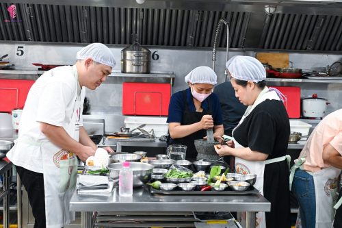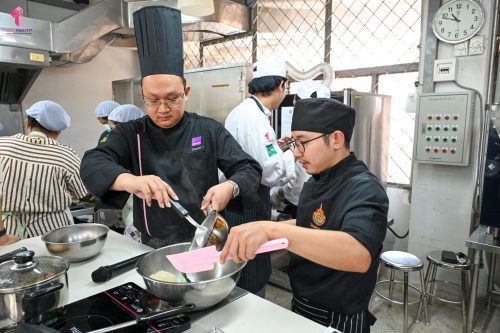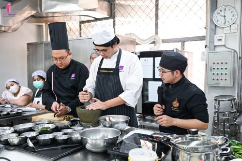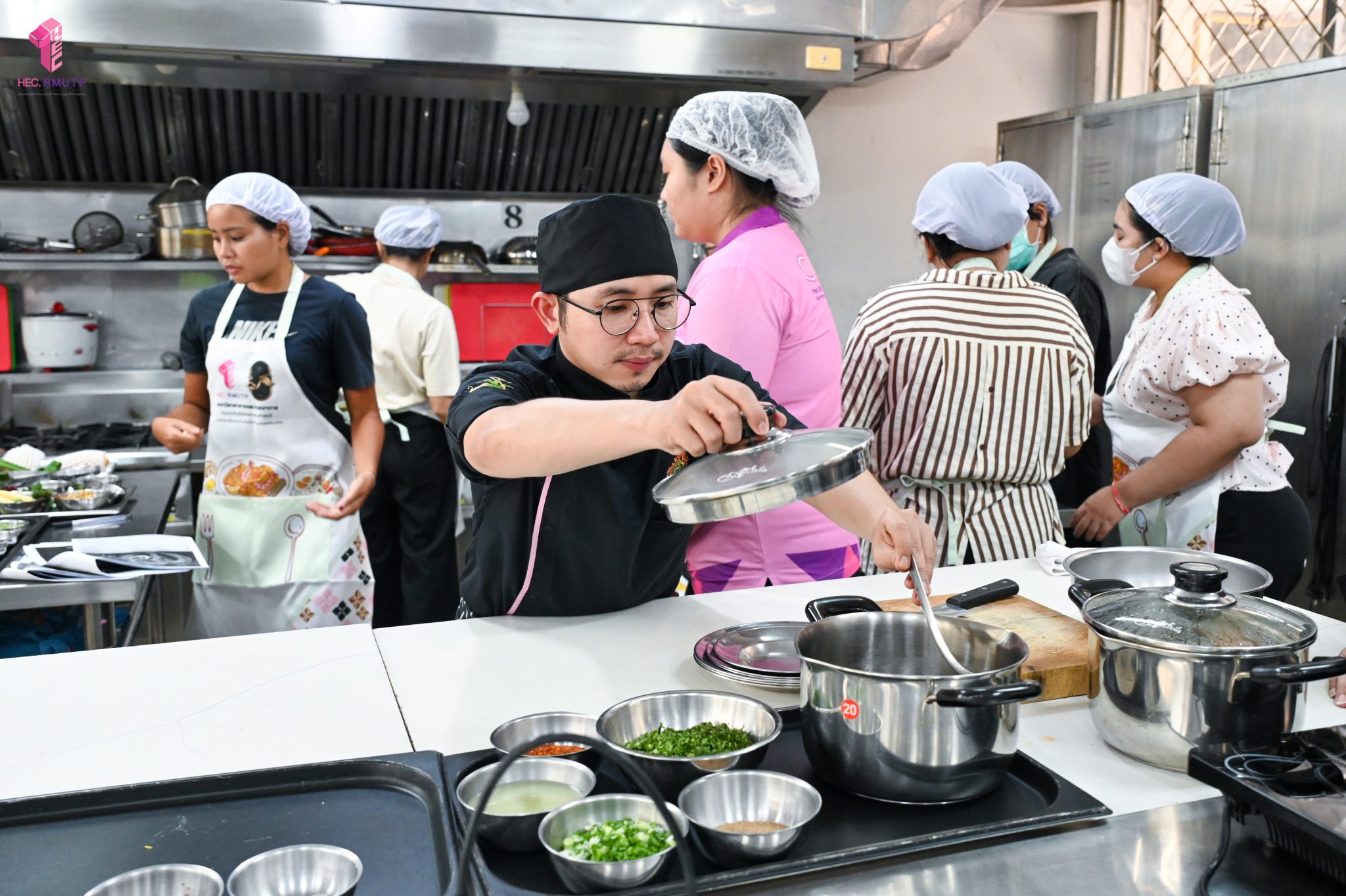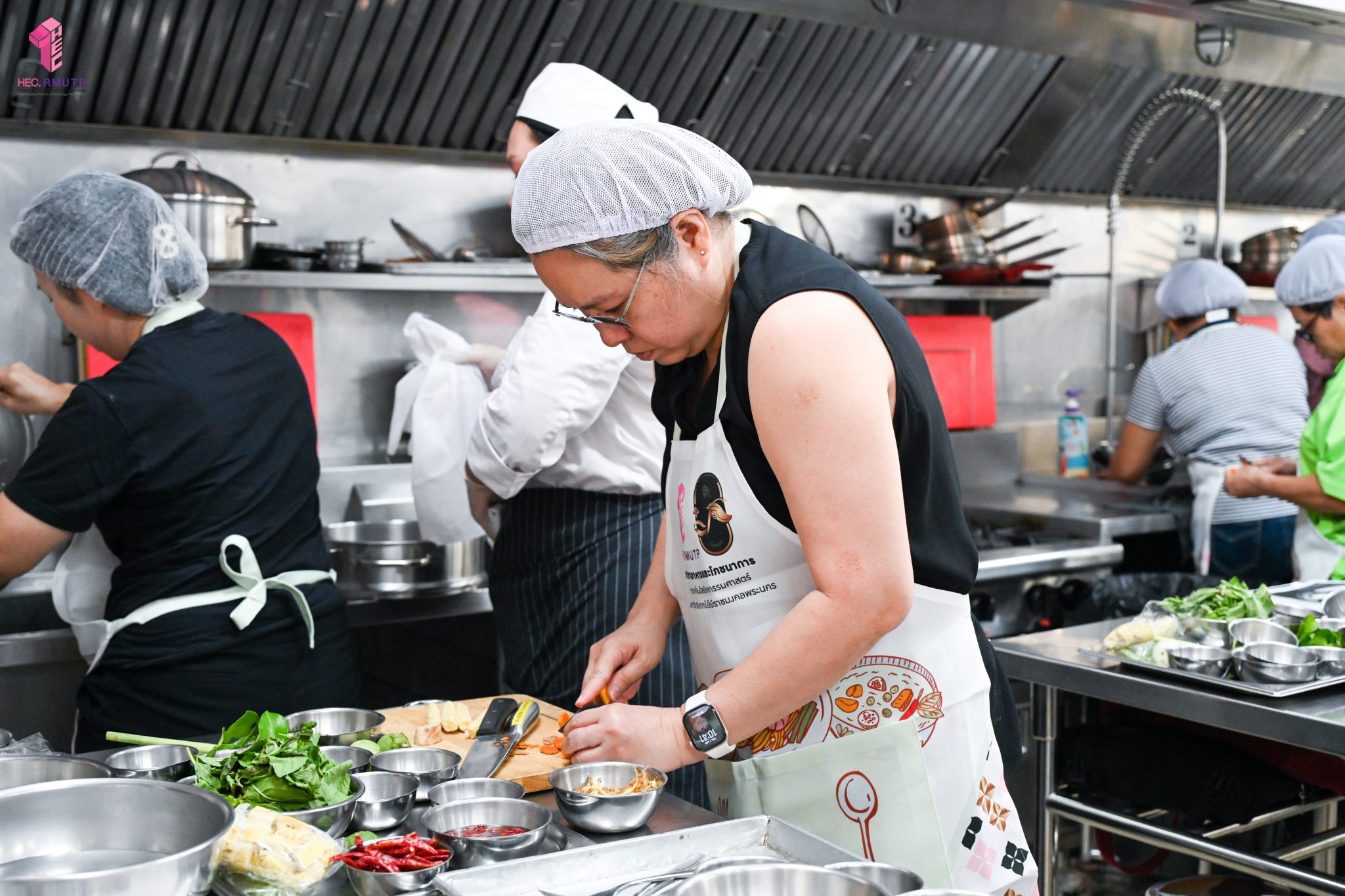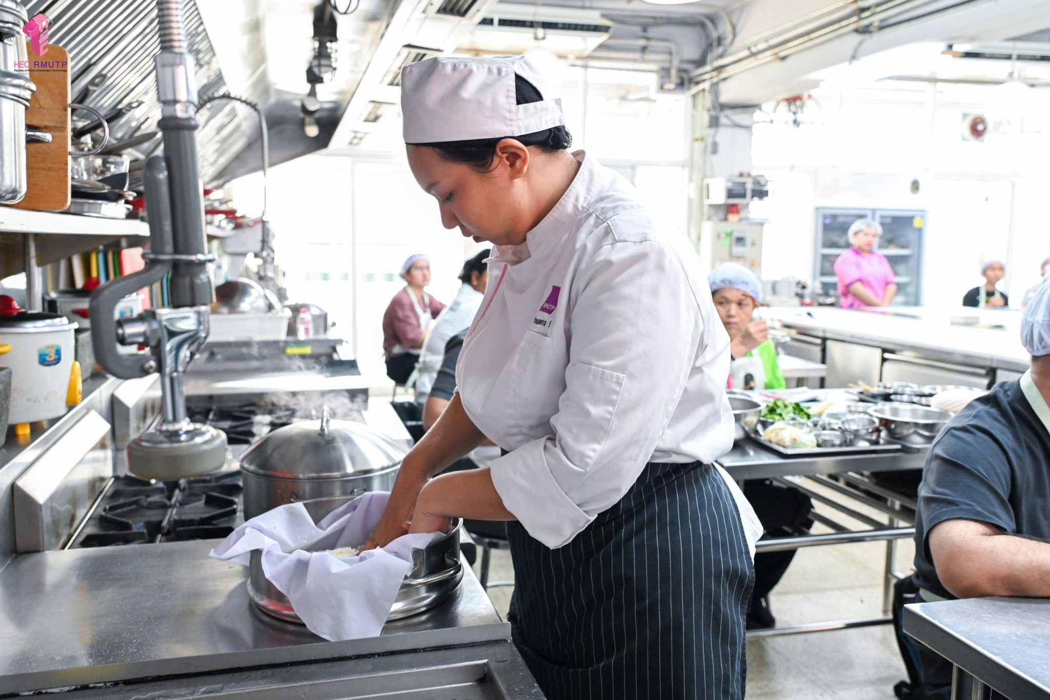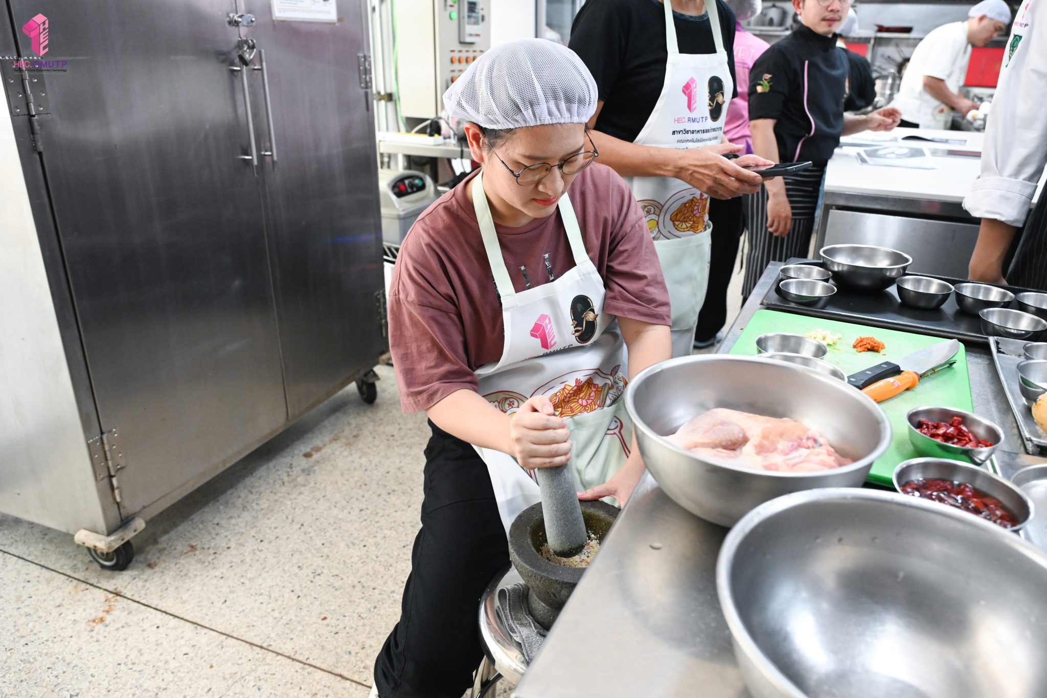 คณะเทคโนโลยีคหกรรมศาสตร์ มหาวิทยาลัยเทคโนโลยีราชมงคลพระนคร เข้าร่วมโครงการขับเคลื่อนและยกระดับนวัตกรรมอาหารด้วยขุมพลังสหวิทยาการ หนึ่งหมู่บ้าน หนึ่งเชฟอาหารไทย ซึ่งจัดขึ้นโดยกระทรวงการอุดมศึกษาวิทยาศาสตร์ วิจัยและนวัตกรรม โดยมีวัตถุประสงค์เพื่อผลักดันผู้เข้าอบรมสู่การทดสอบเพื่อรับรองมาตรฐานอาชีพ ตลอดจนยกระดับศักยภาพและสมรรถนะให้เป็นไปตามเกณฑ์มาตรฐานวิชาชีพ (รหัสห้องเรียน BKK01U0101) โดยมี อาจารย์ดร.จักรกฤษณ์ ทองคำ อาจารย์ศิวกร ตลับนาค อาจารย์วรลักษณ์ ป้อมน้อย อาจารย์วรธร ป้อมเย็น อาจารย์ลัดดาวัลย์ กลิ่นมาลัย และอาจารย์เอนก ศรฟ้า อาจารย์ประจำสาขาวิชาอาหารและโภชนาการ ร่วมถ่ายทอดความรู้และฝึกปฏิบัติการอาหารให้แก่ผู้เข้าอบรมอย่างเข้มข้น ระหว่างวันที่ 7-10 เมษายน 2569 ณ คณะเทคโนโลยีคหกรรมศาสตร์