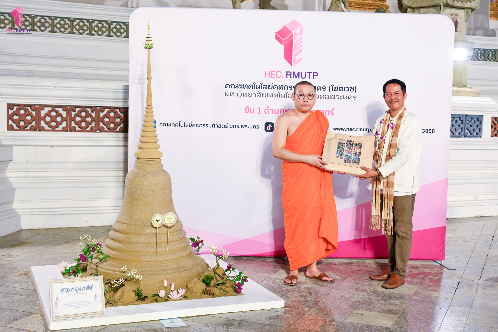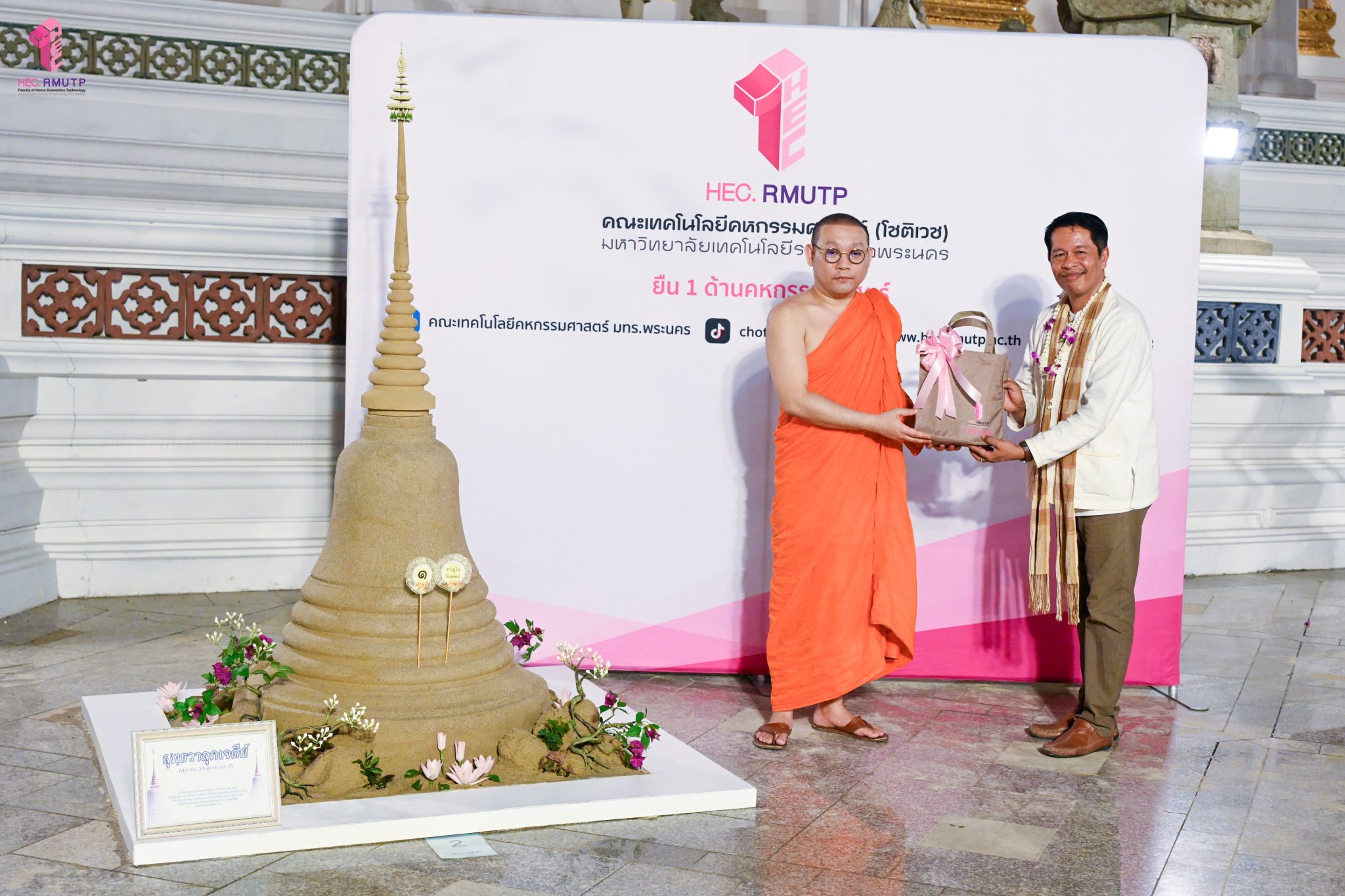 คณะเทคโนโลยีคหกรรมศาสตร์ (โชติเวช) มหาวิทยาลัยเทคโนโลยีราชมงคลพระนคร ร่วมกับกรมส่งเสริมวัฒนธรรม กระทรวงวัฒนธรรม วัดสุทัศนเทพวรารามราชวรมหาวิหาร และสำนักงานเขตพระนคร จัดการประกวดก่อพระเจดีย์ทราย ในงาน “สงกรานต์บ้านฉัน สีสันแบบไทย สุขไกลทั่วโลก” Once in a Lifetime : Experience Songkran in Thailand โดยแบ่งการประกวดออกเป็น 2 กลุ่ม ได้แก่ กลุ่มสถาบันศึกษาและกลุ่มประชาชนทั่วไป เพื่อเป็นการส่งเสริมอนุรักษ์วัฒนธรรมและฟื้นฟูประเพณีอันดีงามของไทยให้คงอยู่สืบไป เมื่อวันที่ 12 เมษายน 2569 ณ วัดสุทัศนเทพวรารามราชวรมหาวิหาร