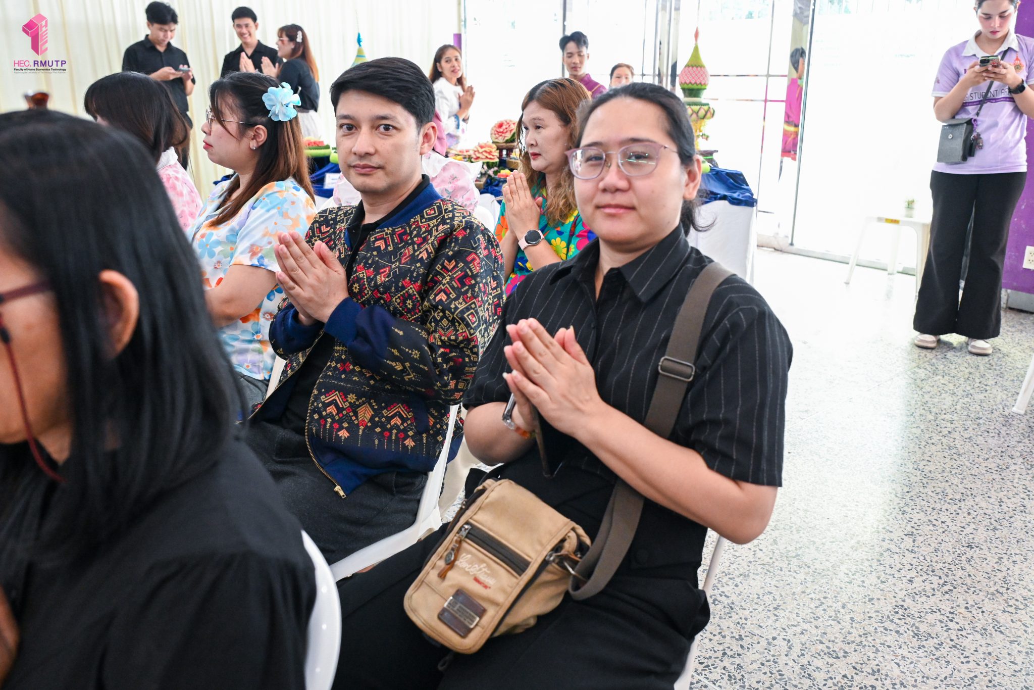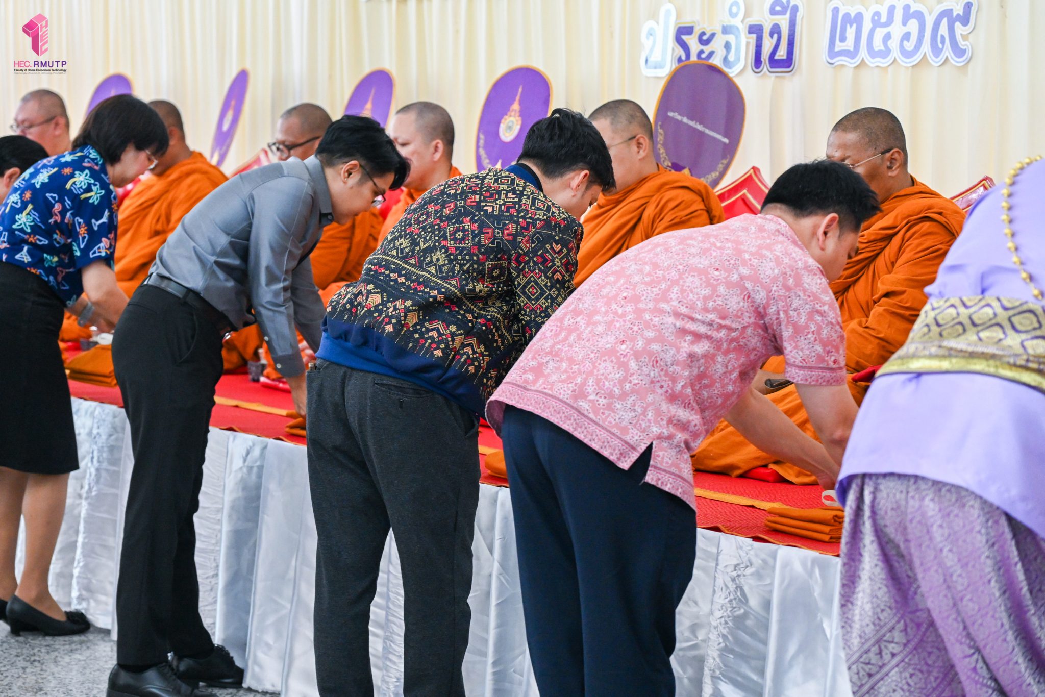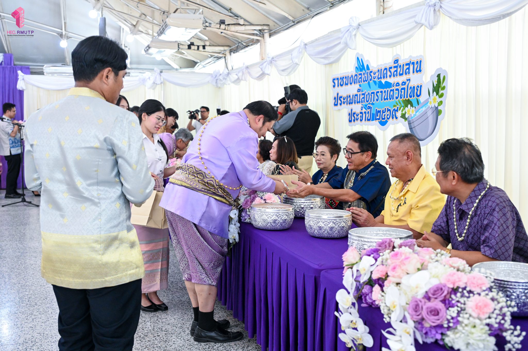 คณะเทคโนโลยีคหกรรมศาสตร์ มทร.พระนคร ร่วมโครงการสืบสานประเพณีและวันสำคัญ กิจกรรมที่ ๔ “ราชมงคลพระนครสืบสาน ประเพณีสงกรานต์วิถีไทย ประจำปี ๒๕๖๙” จัดโดยงานศิลปวัฒธรรม กองกลาง มทร.พระนคร กิจกรรมประกอบด้วยพิธีสงฆ์ ถวายปิ่นโตพระ สรงน้ำพระพุทธรูป รดน้ำดำหัวมหาสงกรานต์ และขอพรผู้อาวุโส โดยมี ผศ.ดร.ธนภพ โสตรโยม คณบดีคณะเทคโนโลยีคหกรรมศาสตร์ พร้อมด้วย อาจารย์ปิยะธิดา สีหะวัฒนกุล ที่ปรึกษาคณบดี ผู้บริหาร คณาจารย์ และบุคลากร เข้าร่วมโครงการ เมื่อวันที่ ๘ เมษายน ๒๕๖๙ ณ หอประชุมดีฮอล์ ศูนย์เทเวศร์