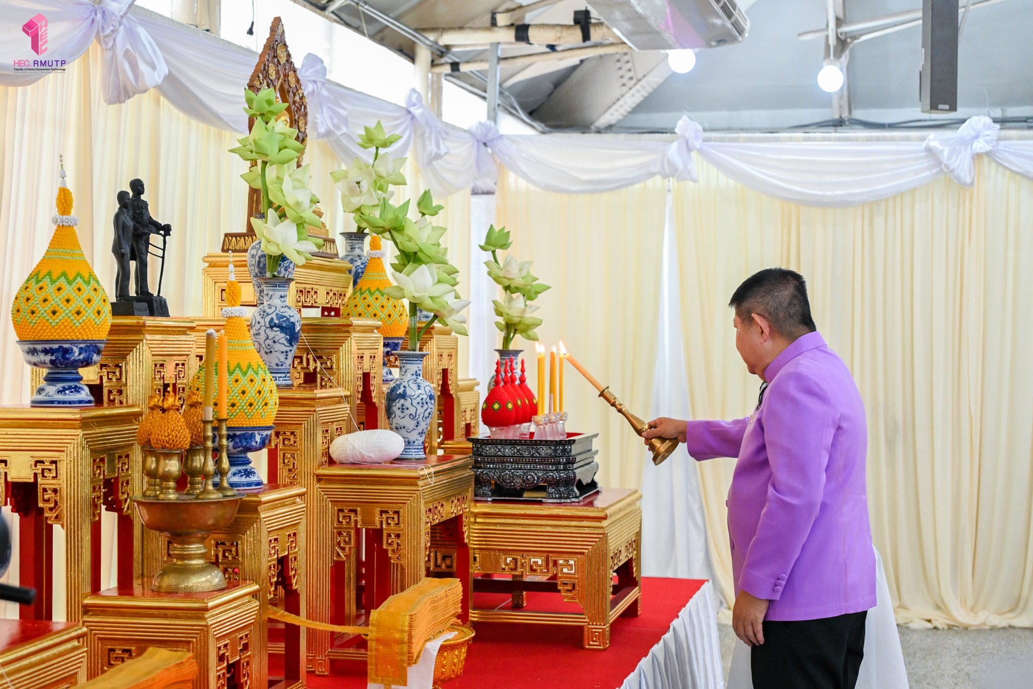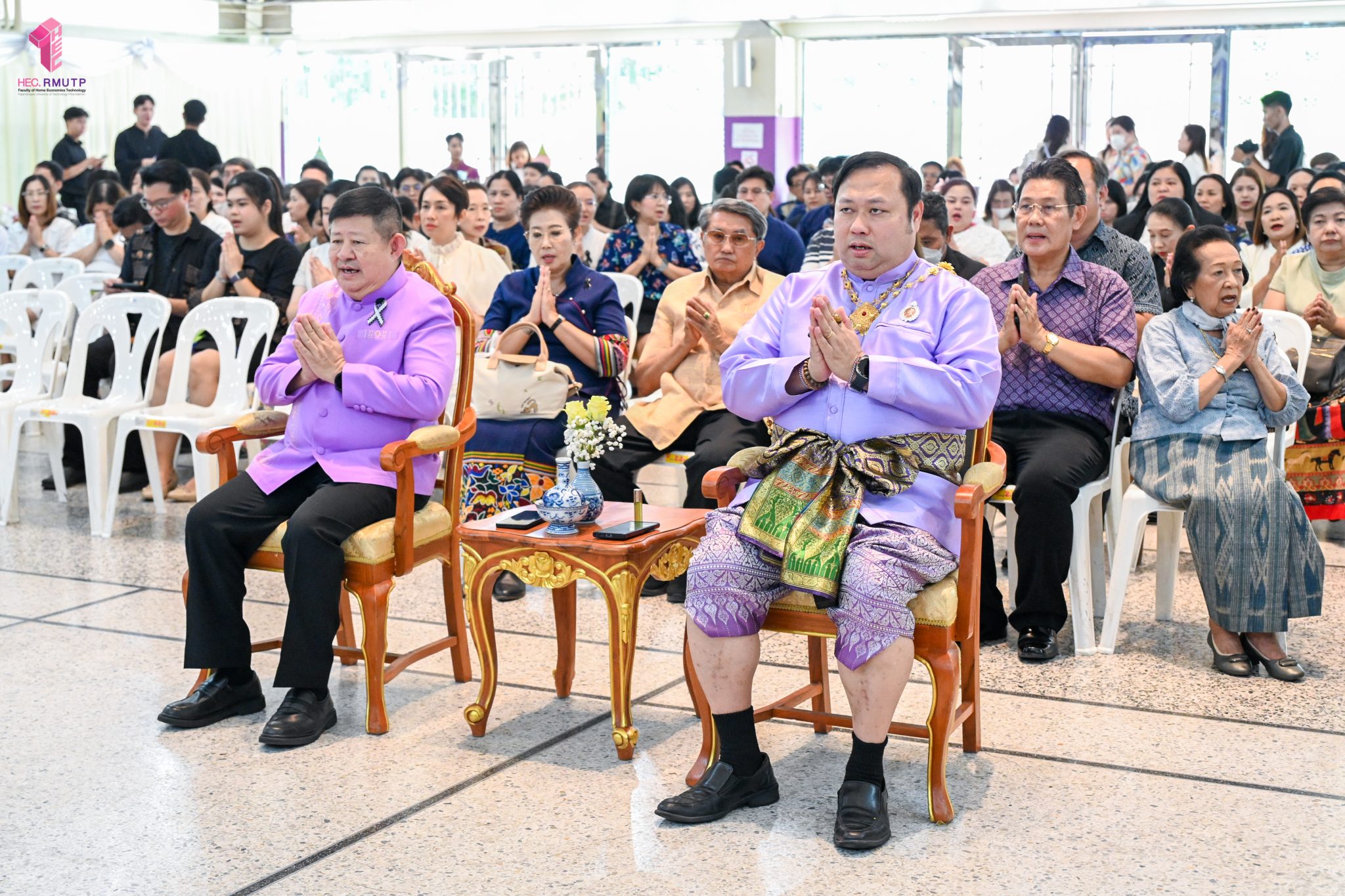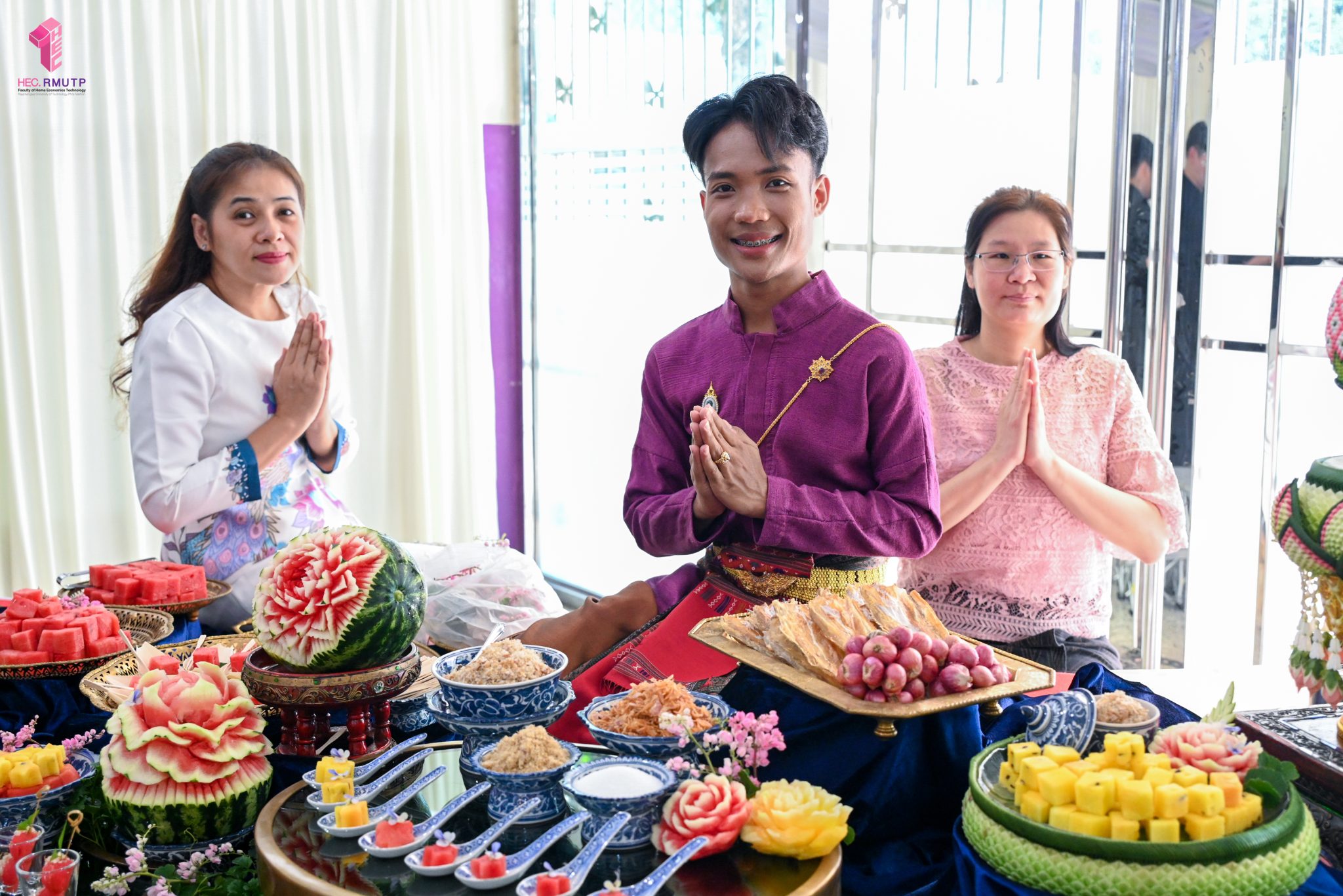 คณะเทคโนโลยีคหกรรมศาสตร์ มทร.พระนคร ร่วมโครงการสืบสานประเพณีและวันสำคัญ กิจกรรมที่ ๔ “ราชมงคลพระนครสืบสาน ประเพณีสงกรานต์วิถีไทย ประจำปี ๒๕๖๙” จัดโดยงานศิลปวัฒธรรม กองกลาง มทร.พระนคร กิจกรรมประกอบด้วยพิธีสงฆ์ ถวายปิ่นโตพระ สรงน้ำพระพุทธรูป รดน้ำดำหัวมหาสงกรานต์ และขอพรผู้อาวุโส โดยมี ผศ.ดร.ธนภพ โสตรโยม คณบดีคณะเทคโนโลยีคหกรรมศาสตร์ พร้อมด้วย อาจารย์ปิยะธิดา สีหะวัฒนกุล ที่ปรึกษาคณบดี ผู้บริหาร คณาจารย์ และบุคลากร เข้าร่วมโครงการ เมื่อวันที่ ๘ เมษายน ๒๕๖๙ ณ หอประชุมดีฮอล์ ศูนย์เทเวศร์