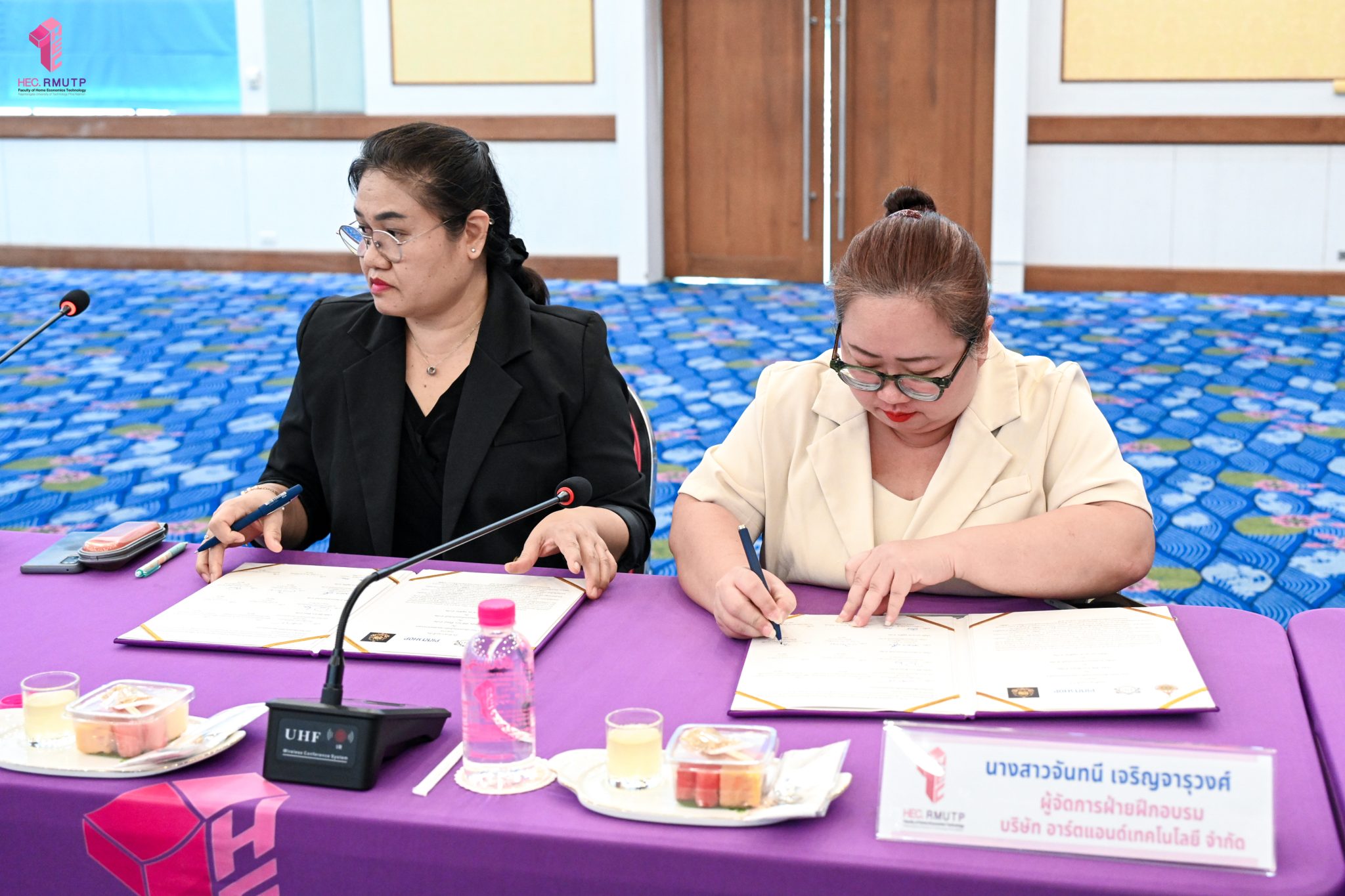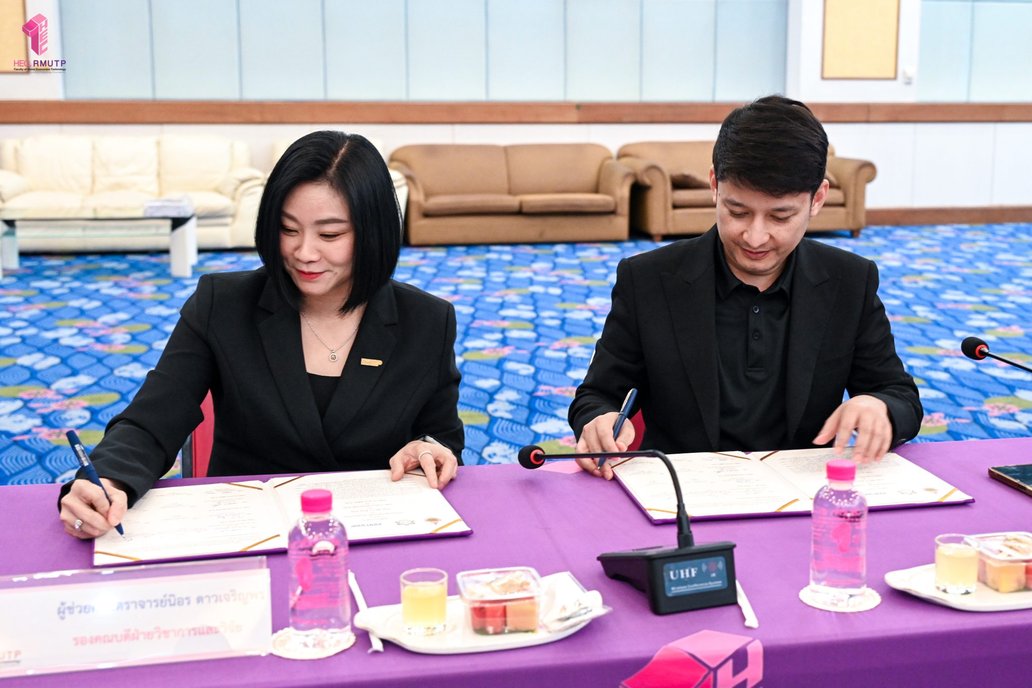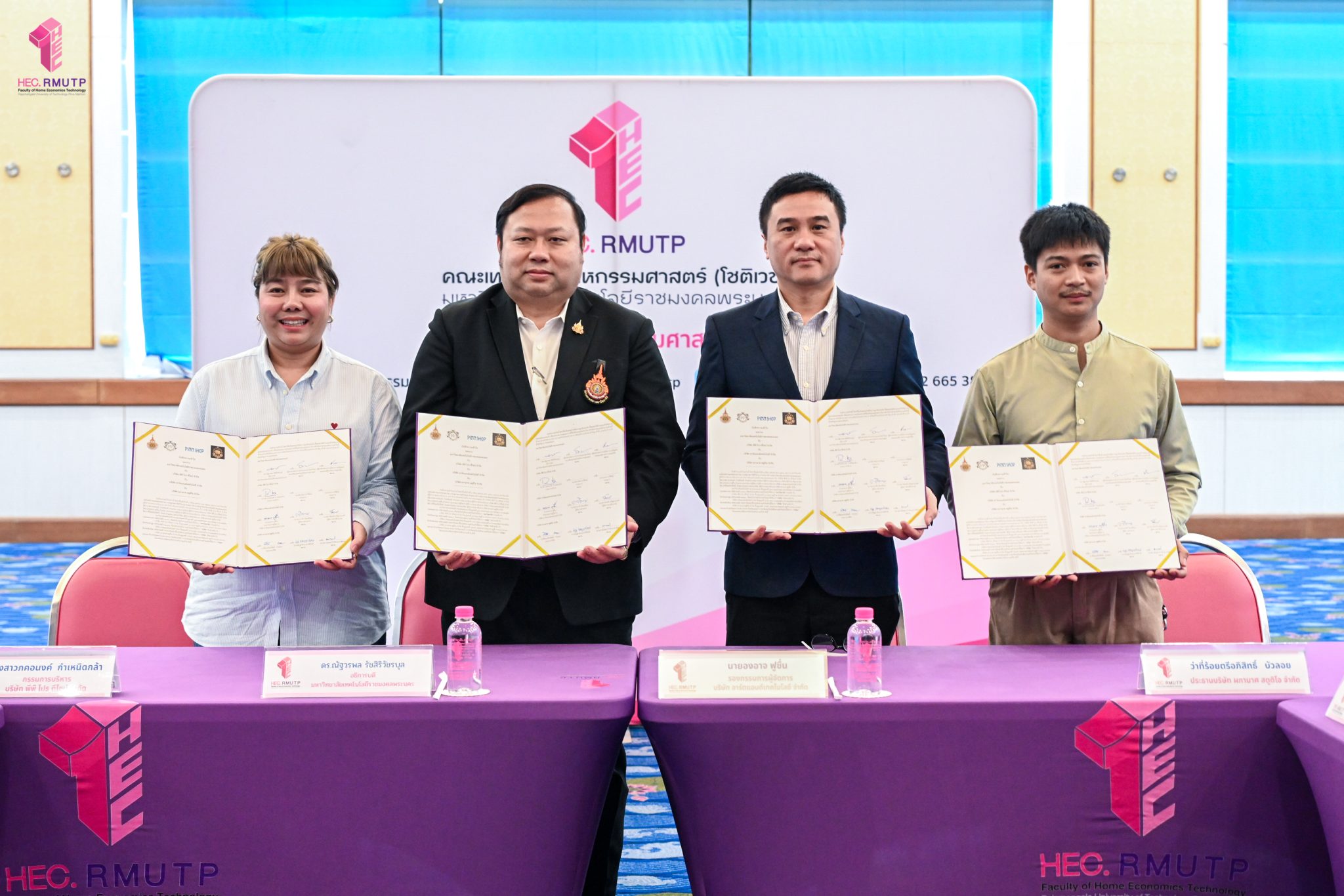 คณะเทคโนโลยีคหกรรมศาสตร์ (โชติเวช) มหาวิทยาลัยเทคโนโลยีราชมงคลพระนคร นำโดย ดร.ณัฐวรพล รัชสิริวัชรบุล อธิการบดีมหาวิทยาลัยเทคโนโลยีราชมงคลพระนคร พร้อมด้วย ผศ.ดร.ธนภพ โสตรโยม คณบดี คณะเทคโนโลยีคหกรรมศาสตร์ ผศ.นิอร ดาวเจริญพร รองคณบดีฝ่ายวิชาการและวิจัย อาจารย์มัลลิกา จงจิตต์ ผู้ช่วยคณบดี อาจารย์ ดร.เกศทิพย์ กรี่เงิน อาจารย์ประจำสาขาวิชาออกแบบแฟชั่น อาจารย์ ดร.สุชีรา ผ่องใส หัวหน้าสาขาวิชาคหกรรมศาสตร์ประยุกต์ และ อาจารย์กิตติ ยอดอ่อน อาจารย์ประจำสาขาวิชาคหกรรมศาสตร์ประยุกต์ ร่วมลงนามบันทึกข้อตกลงความร่วมมือทางวิชาการ (MOU) กับภาคเอกชน 3 แห่ง ได้แก่ บริษัท พีพี โปรดีไซน์ จำกัด บริษัท อาร์ตแอนด์เทคโนโลยี จำกัด และบริษัท ผกามาศ สตูดิโอ จำกัด โดยมีผู้แทนจากแต่ละหน่วยงานเข้าร่วมลงนาม ได้แก่ คุณภคอนงค์ กำเหนิดกล้า และคุณจิรารัตน์ คาวีรัตน์ จากบริษัท พีพี โปรดีไซน์ จำกัด คุณองอาจ ฟูชื่น คุณอารีย์ จิตเหลื่อม และคุณจันทนี เจริญจารุวงศ์ จากบริษัท อาร์ตแอนด์เทคโนโลยี จำกัด และว่าที่ร้อยตรี อภิสิทธิ์ บัวลอย ประธานบริษัท ผกามาศ สตูดิโอ จำกัด การลงนามความร่วมมือในครั้งนี้ มีวัตถุประสงค์เพื่อส่งเสริมและพัฒนาศักยภาพของนักศึกษาให้มีทักษะวิชาชีพที่สอดคล้องกับความต้องการของตลาดแรงงาน เสริมสร้างการเรียนรู้ผ่านประสบการณ์จริง เปิดโอกาสให้นักศึกษาได้เห็นภาพการทำงานอย่างชัดเจน และสามารถบูรณาการองค์ความรู้จากห้องเรียนไปประยุกต์ใช้ในสถานการณ์จริงได้อย่างมีประสิทธิภาพ นอกจากนี้ ยังเป็นการเตรียมความพร้อมให้นักศึกษาก่อนก้าวเข้าสู่โลกการทำงานอย่างมีคุณภาพ และร่วมกันพัฒนากำลังคนให้มีศักยภาพตามมาตรฐานสากล เมื่อวันที่ 9 เมษายน 2569 ณ ห้องประชุมโชติเวช ชั้น 4 อาคารเรือนปัญญา คณะเทคโนโลยีคหกรรมศาสตร์