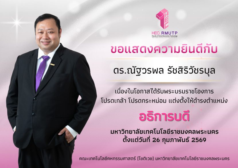 คณะเทคโนโลยีคหกรรมศาสตร์ (โชติเวช) มทร.พระนคร ขอแสดงความยินดีกับ ดร.ณัฐวรพล […]