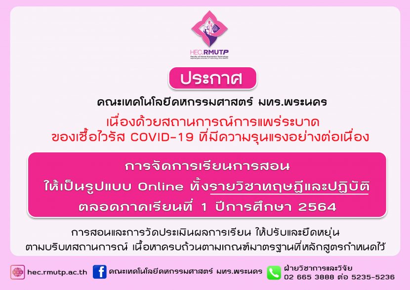 ประกาศ คณะเทคโนโลยีคหกรรมศาสตร์ มหาวิทยาลัยเทคโนโลยีราชมงคลพระนคร เรื่อง การจัดการเรียนการสอน […]