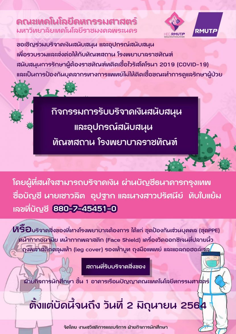 นักศึกษาคหกรรมศาสตร์…รับทุนการศึกษามูลนิธิวัดปากน้ำ ประจำปี 2564 นักศึกษาคณะเทคโนโลยีคหกรรมศาสตร์ ม.ราชมงคลพระนคร […]