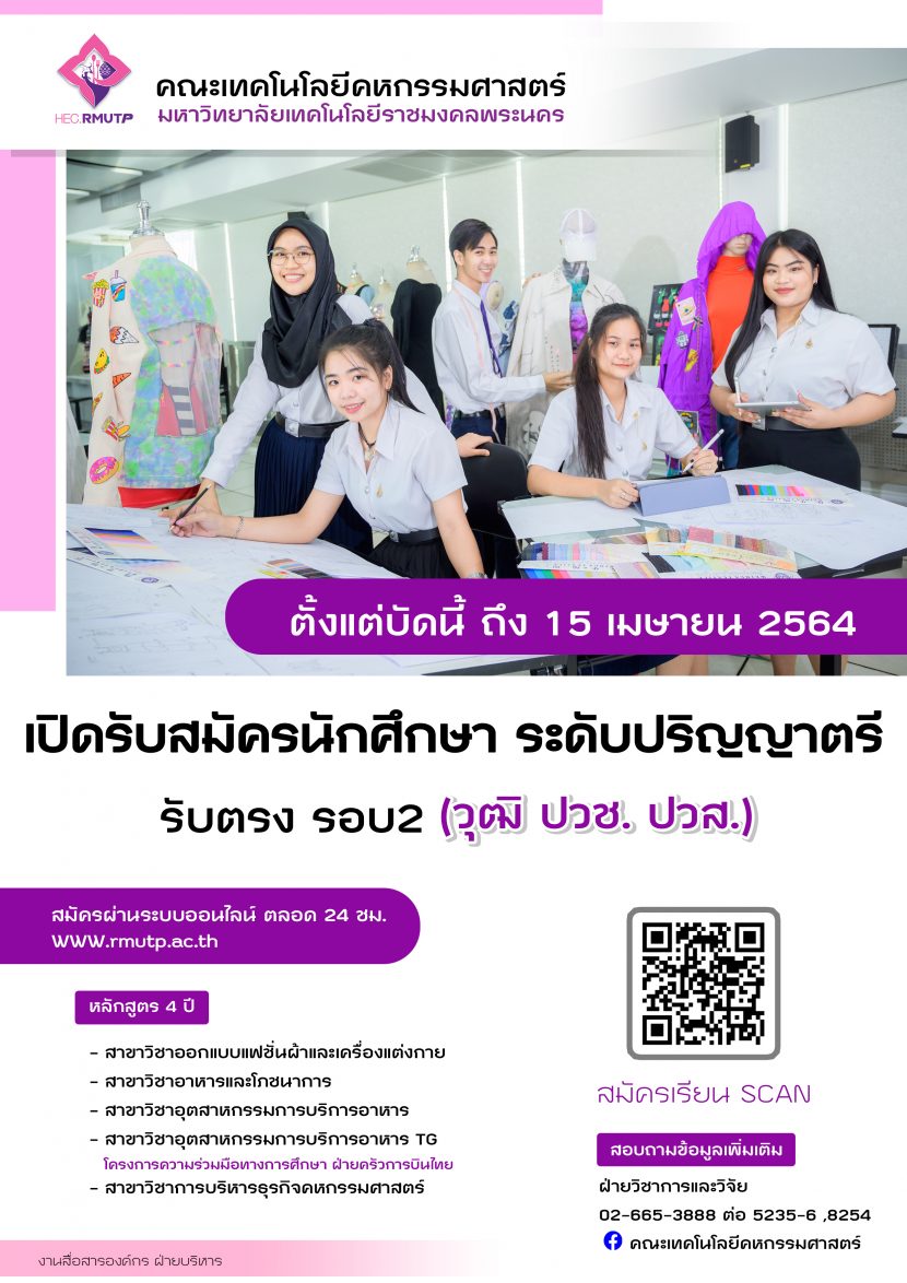คณะเทคโนโลยีคหกรรมศาสตร์ ราชมงคลพระนคร เปิดรับสมัครนักศึกษา ระดับปริญญาตรี ประจำปีการศึกษา […]
